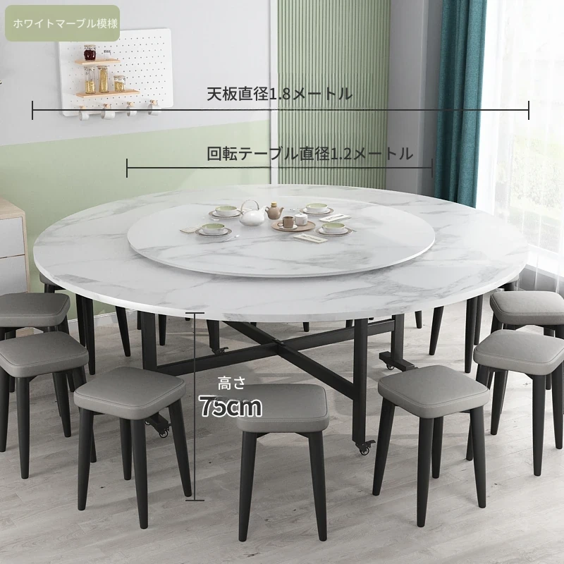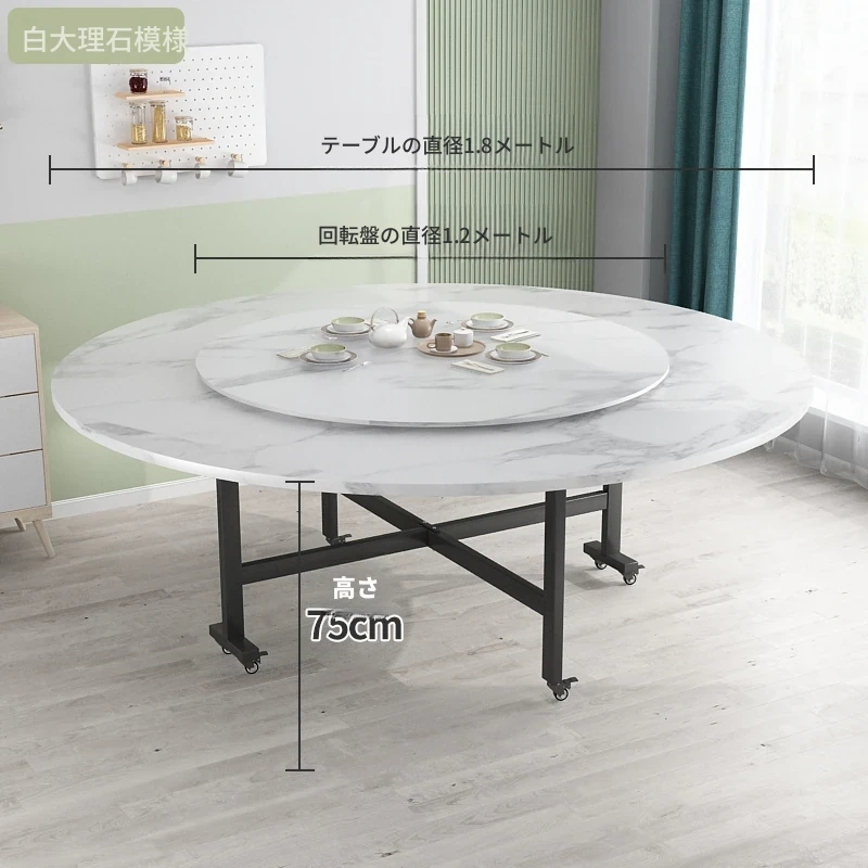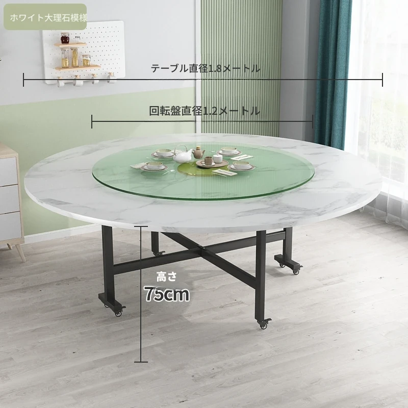 1.8メートル白大理石+1.2メートル強化ガラス回転台