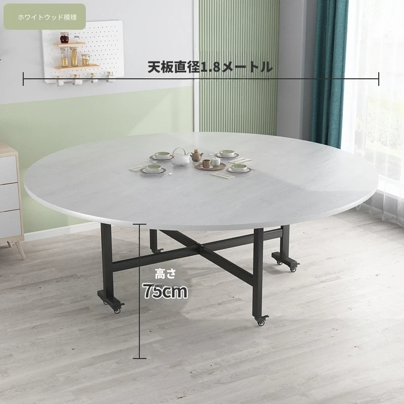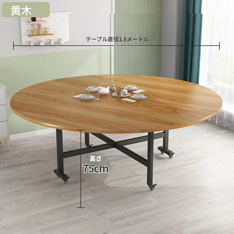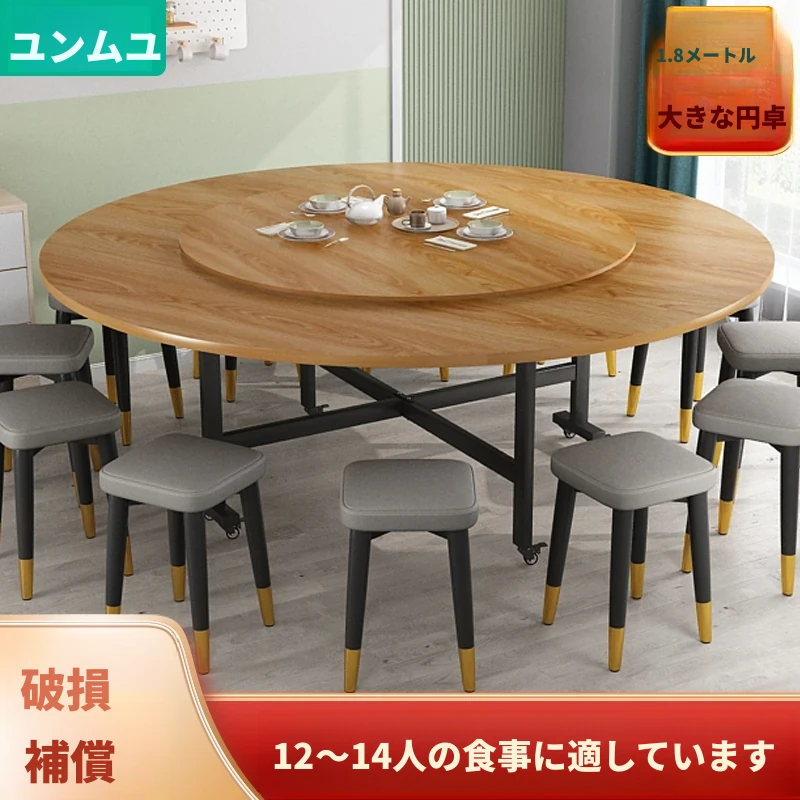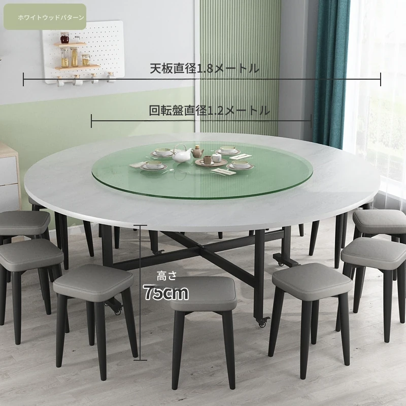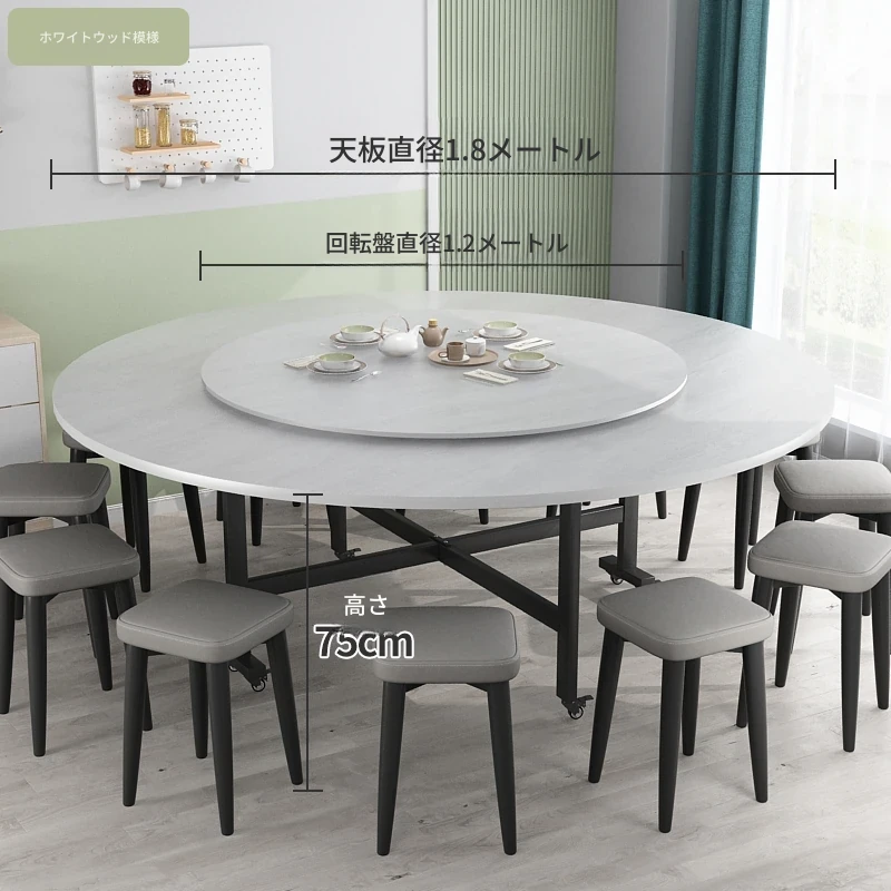 折りたたみ式円形ダイニングテーブル - コンパクトで省スペース、家族や友人との楽しい食事に最適!回転式プレート付きで、最大12人まで対応可能。小さなお部屋でも大活躍!