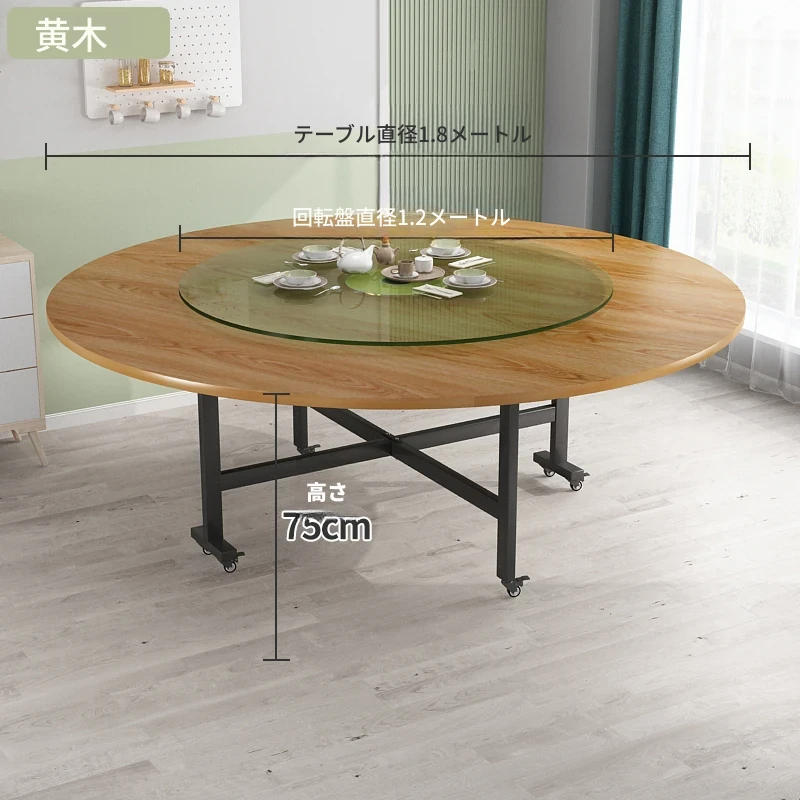 1.8メートル黄木目+1.2メートル強化ガラス回転台