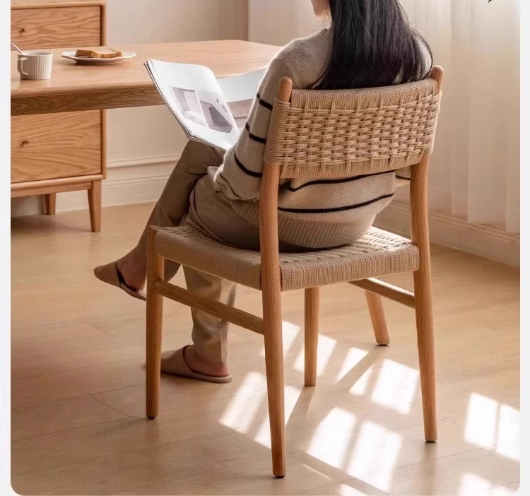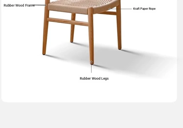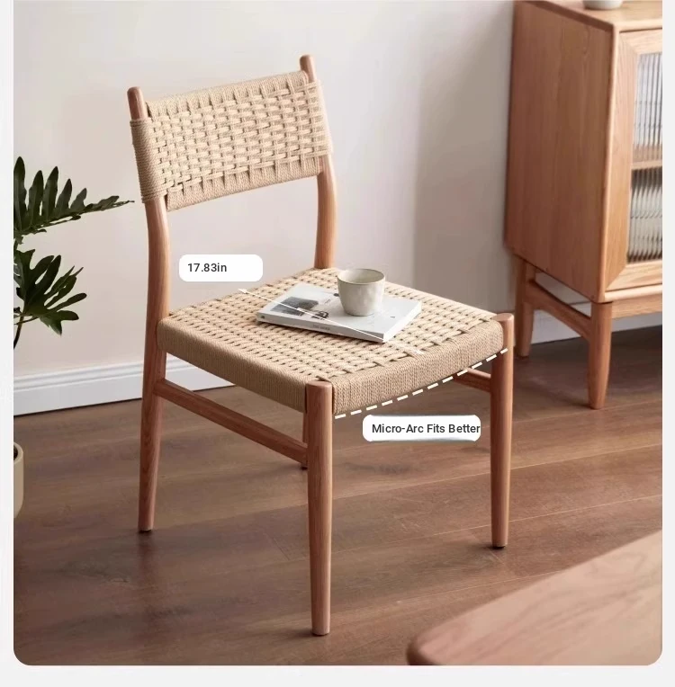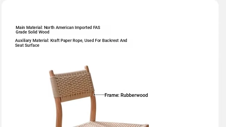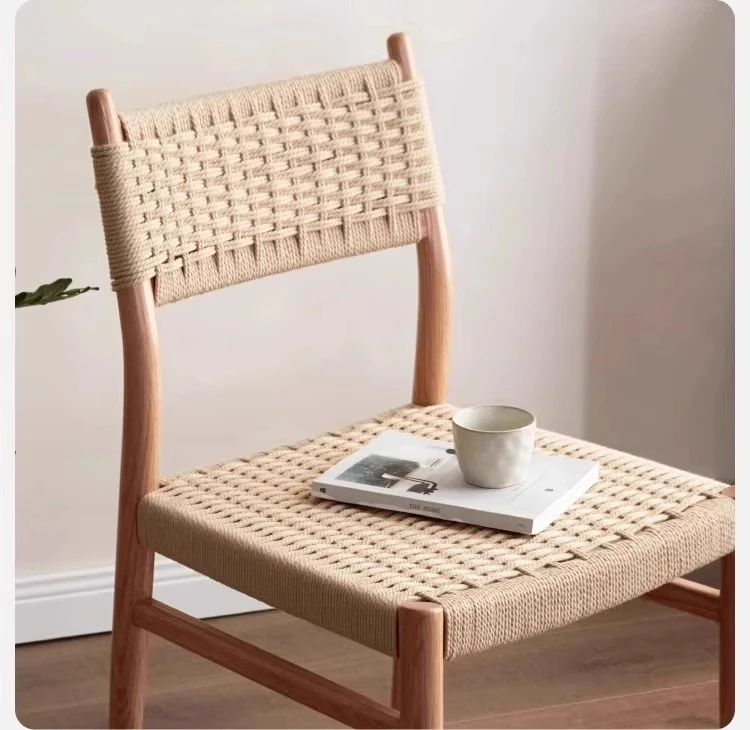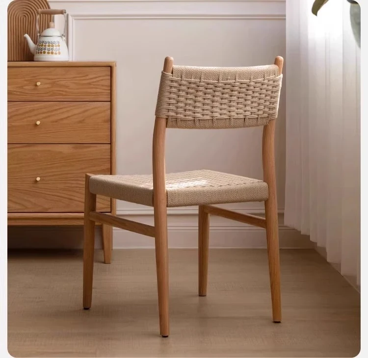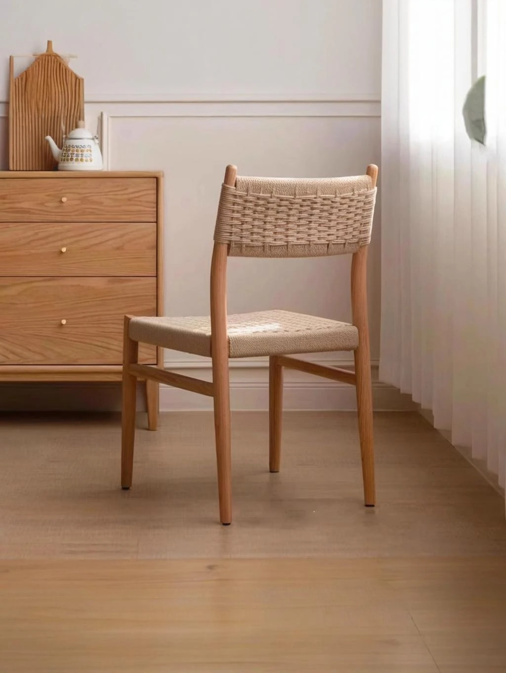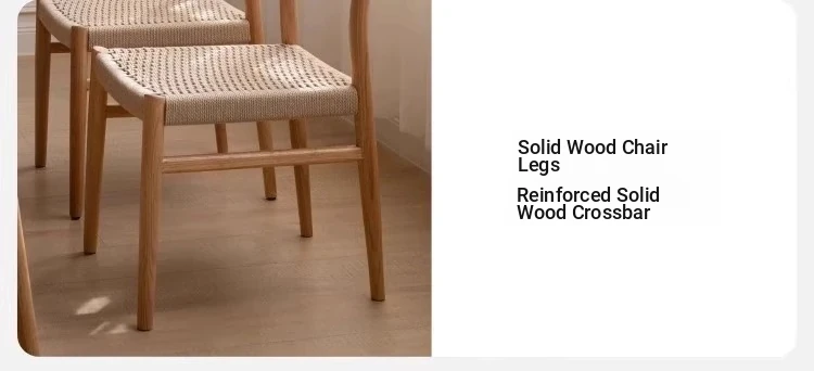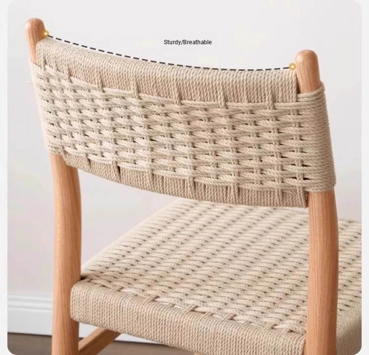 [Rubber wood log color] rope dining chair⭐Solid load-bearing