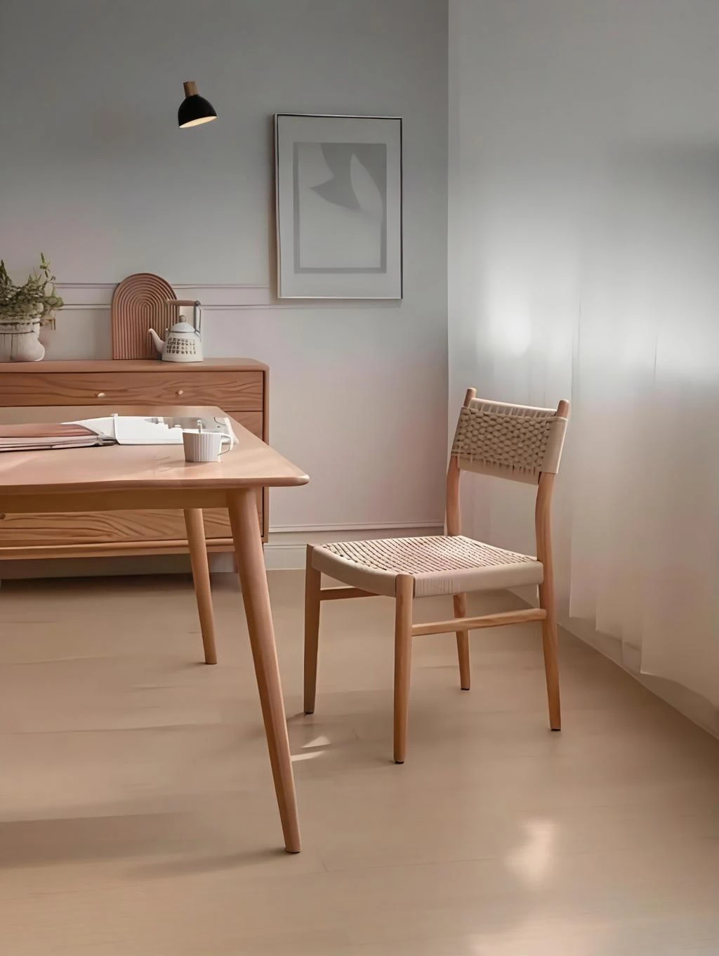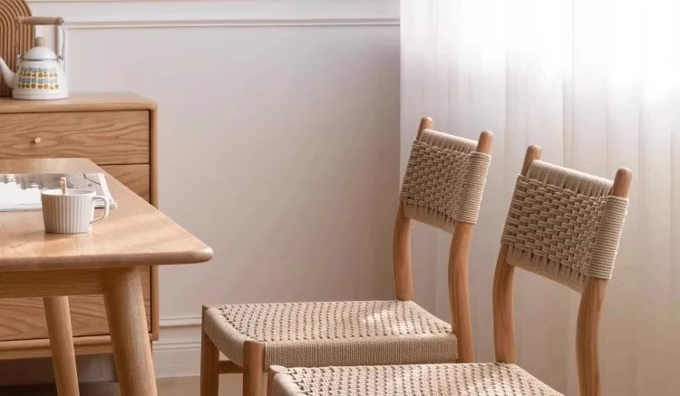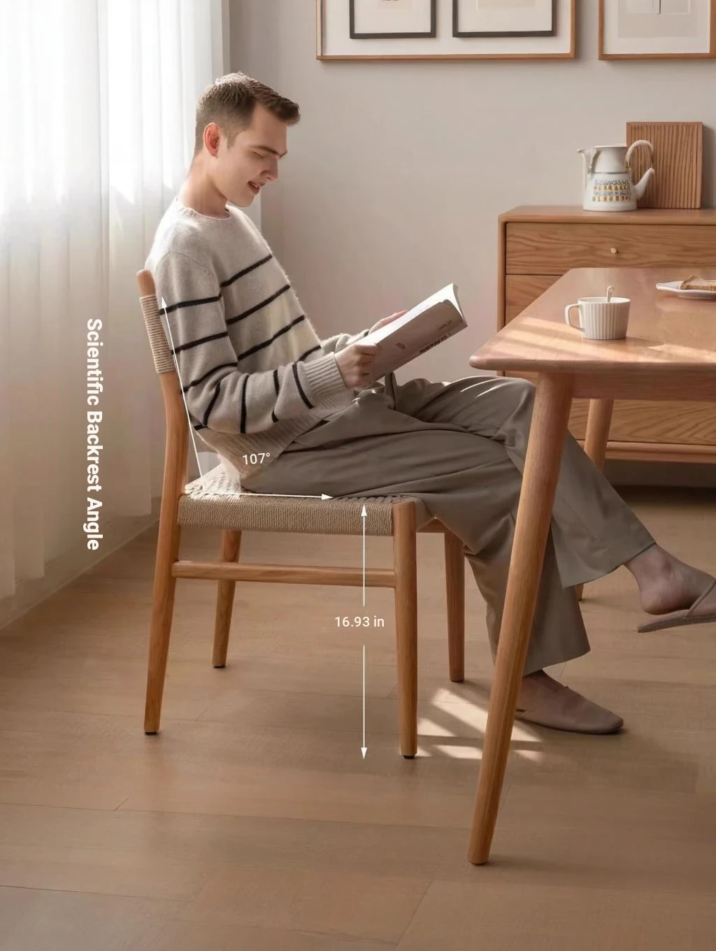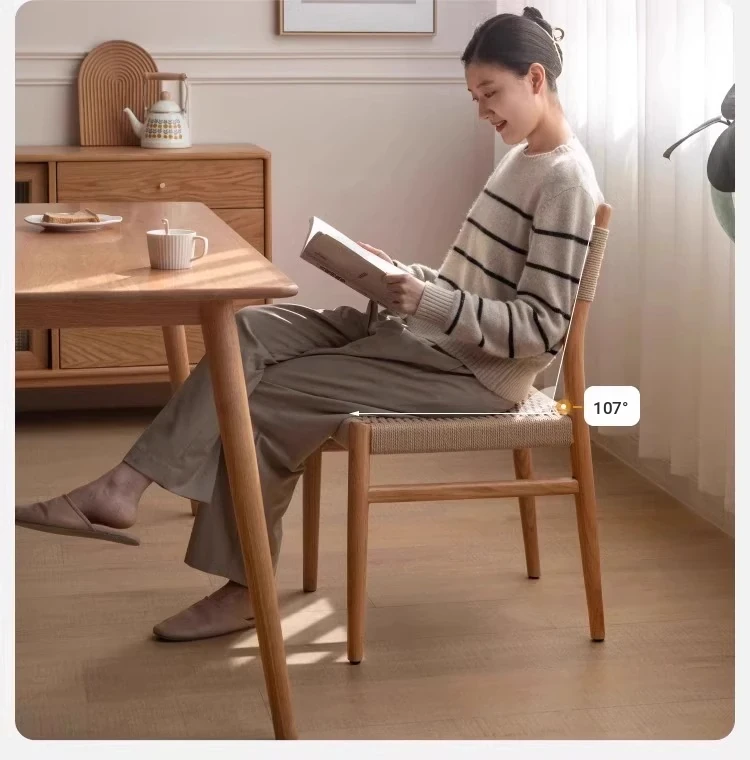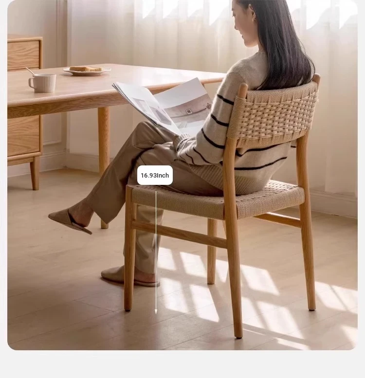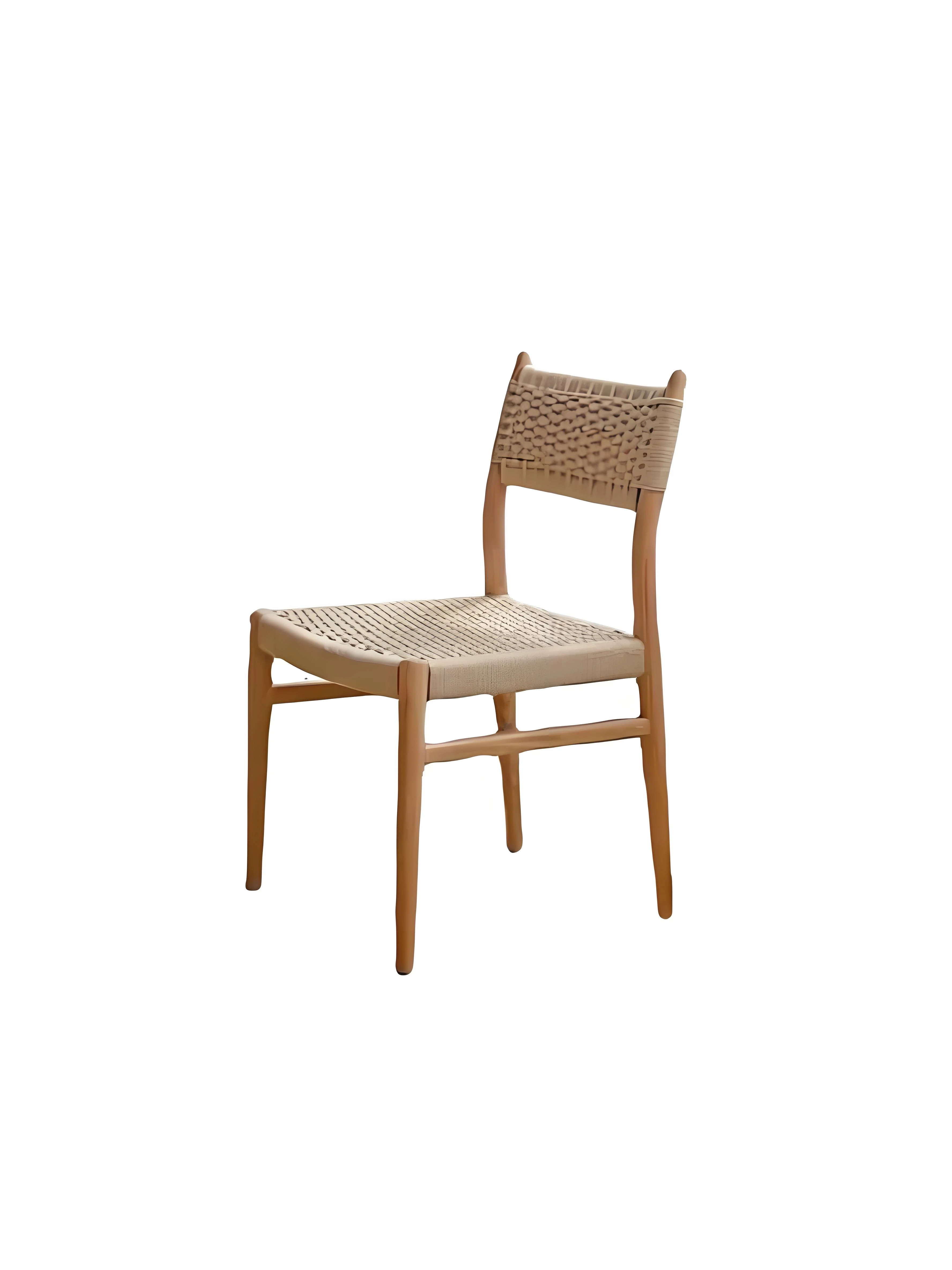 [Rubber wood log color] rope dining chair⭐Solid load-bearing