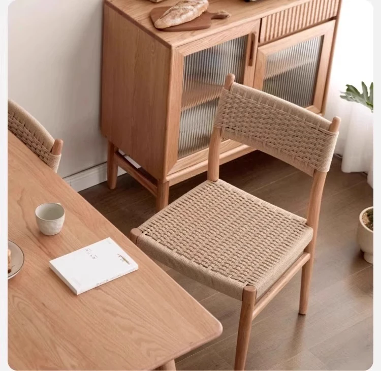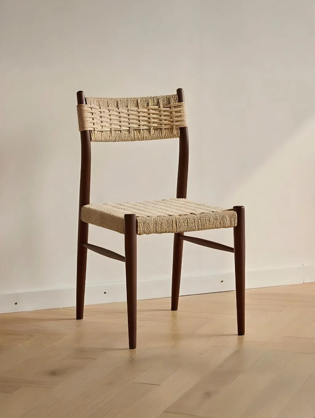 Rubber Wood cherry color rope dining chair⭐Solid load-bearing