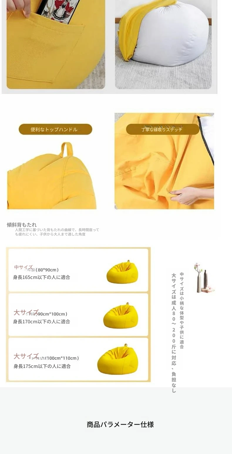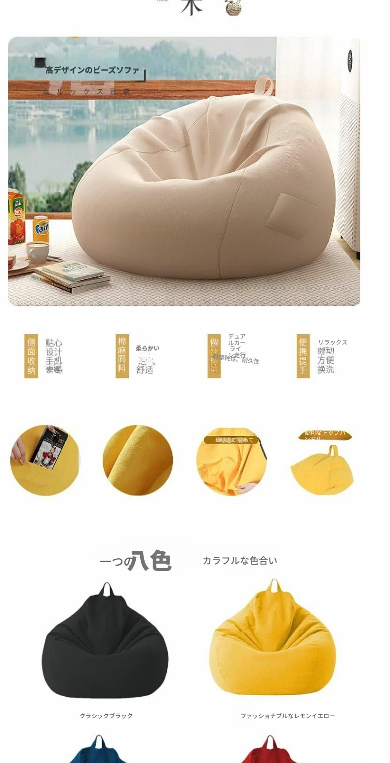 リラックスソファ 巨大なコットンマメ袋カバー 洗えるインナーカバー付き 一人用 丸型で寝転んだり、寝たりできる椅子!快適さとスタイルを兼ね備えた、あなたのくつろぎ空間にぴったりのアイテムです。