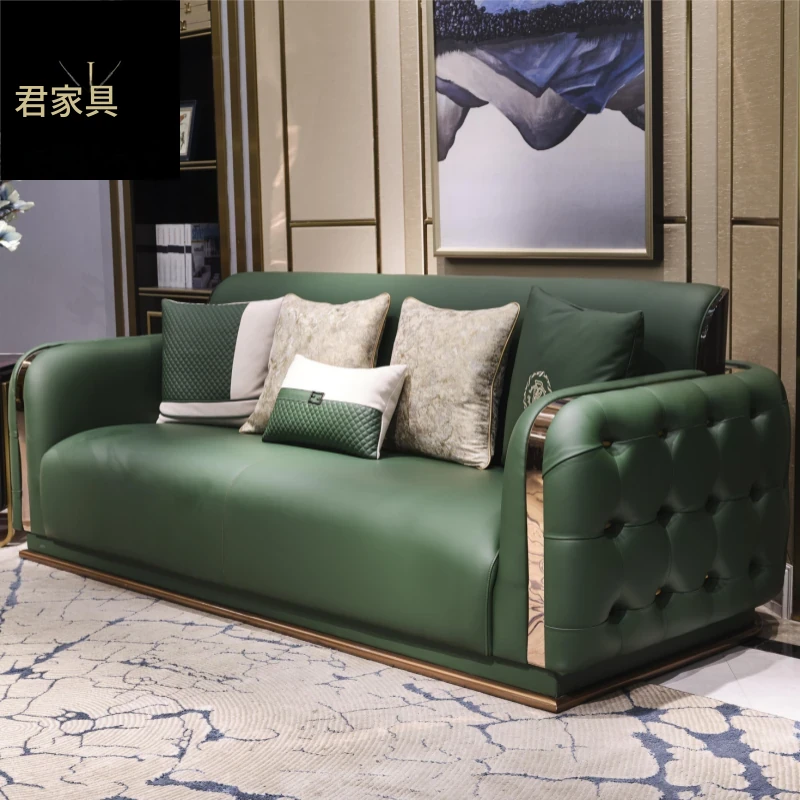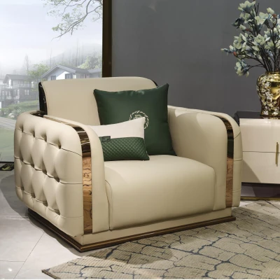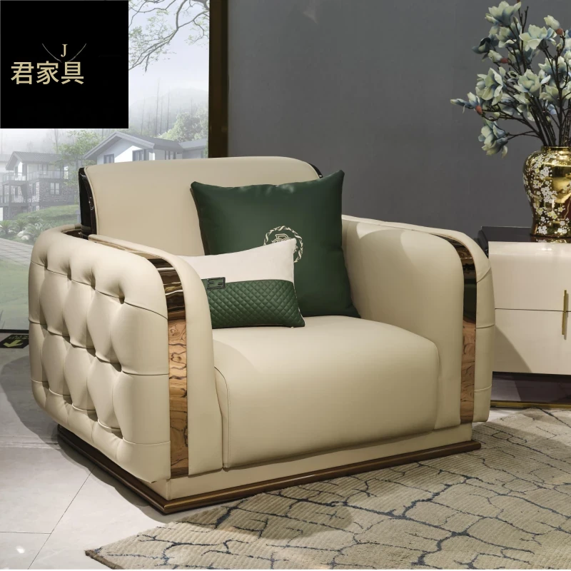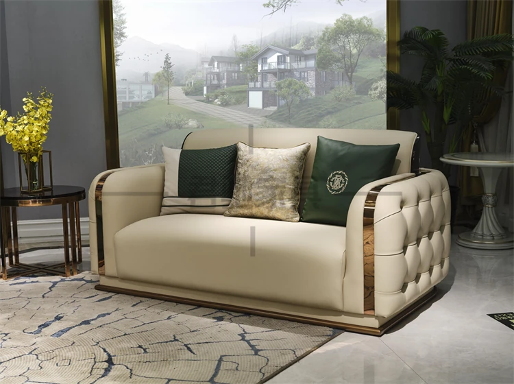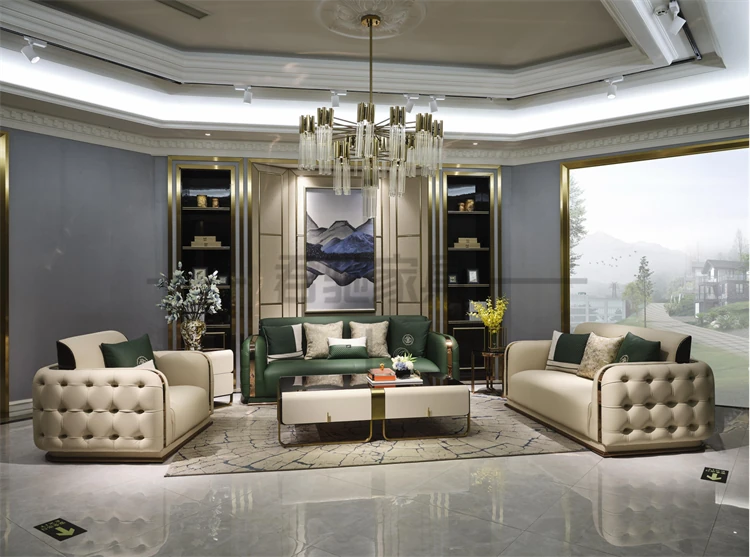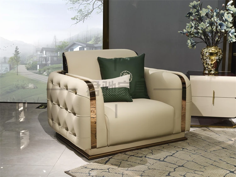 イタリアンラグジュアリーリビングソファセット - 高級牛革使用、ヴィラサイズに最適なベンリーレザーソファ。エレガントなデザインで、居心地の良い空間を演出します。あなたのリビングに特別な輝きを!