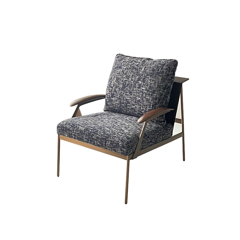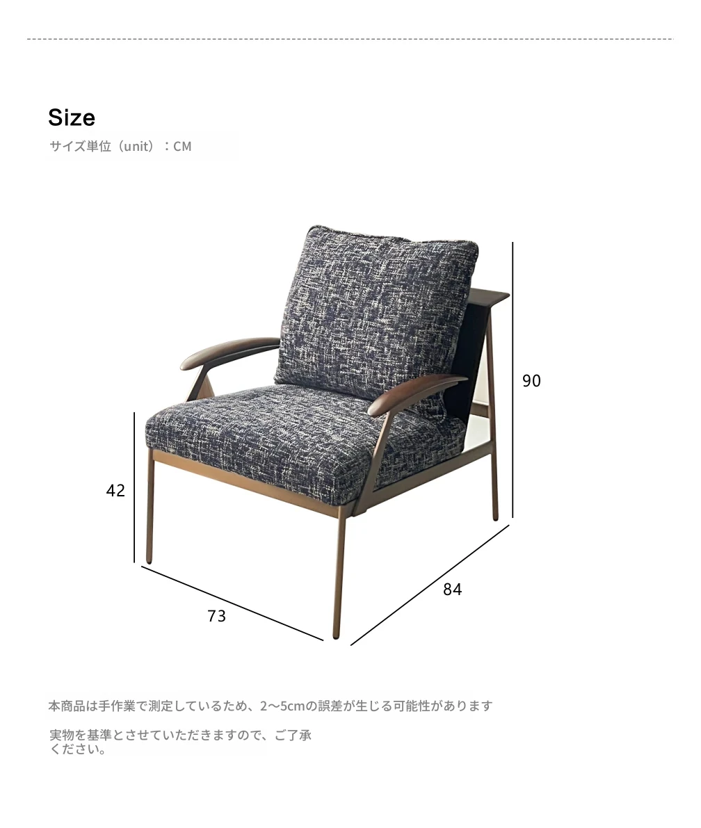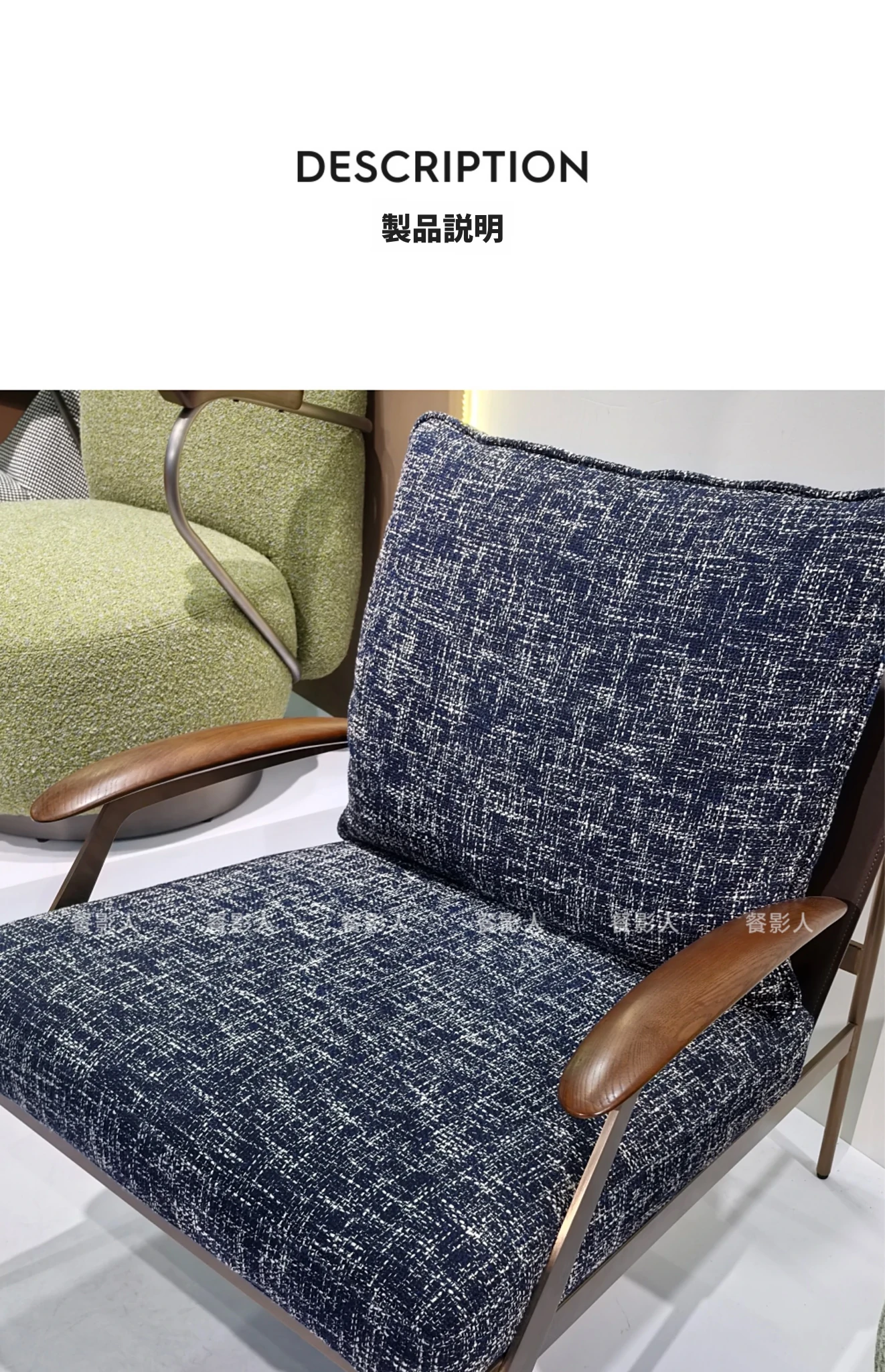 北米産ブラックウォールナット無垢材使用!シンプルで高級感あふれる新中式デザインの布張り一人掛けソファチェア。リビングにぴったりなリラックス空間を演出します!
