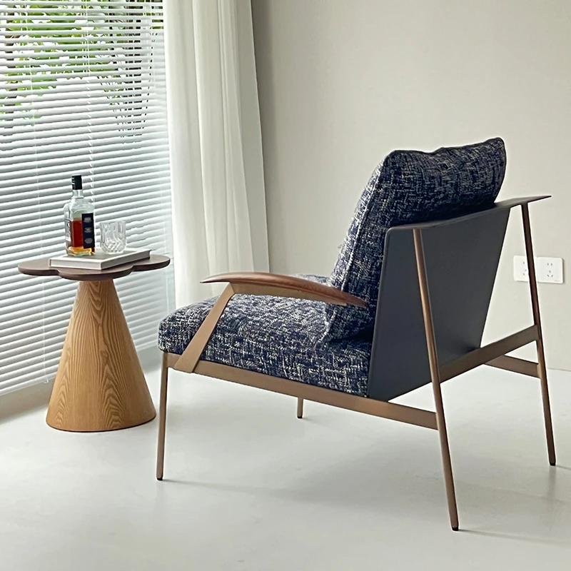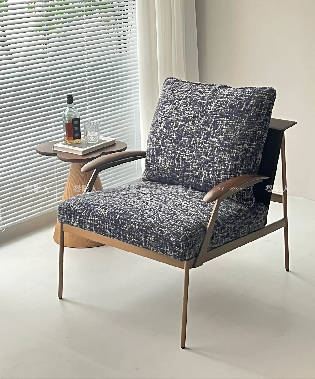 デザイナーによるシンプルでラグジュアリーな一人用ソファチェア - 中古の侘寂風リラックスチェア、家庭用バルコニーにも最適!快適さとスタイルを兼ね備えた、あなたの癒しの空間を演出します。