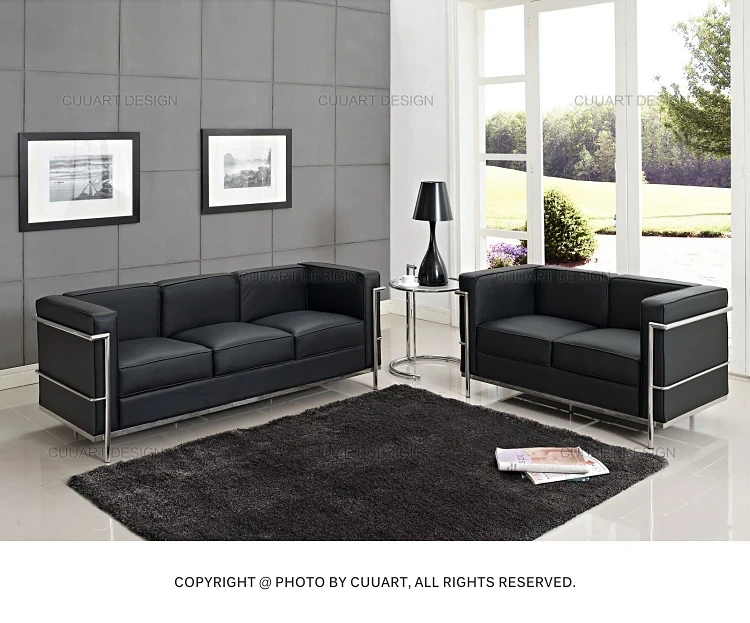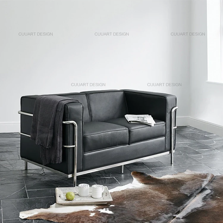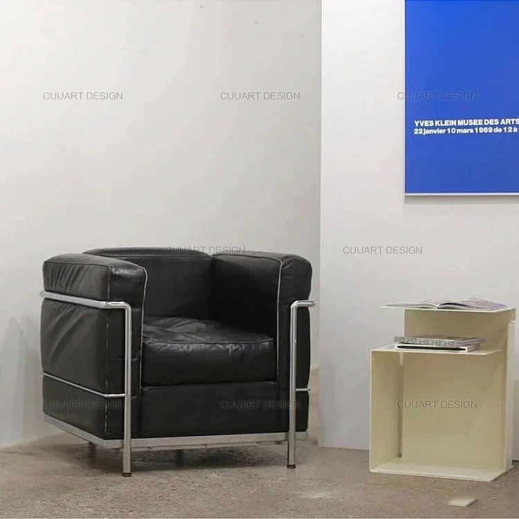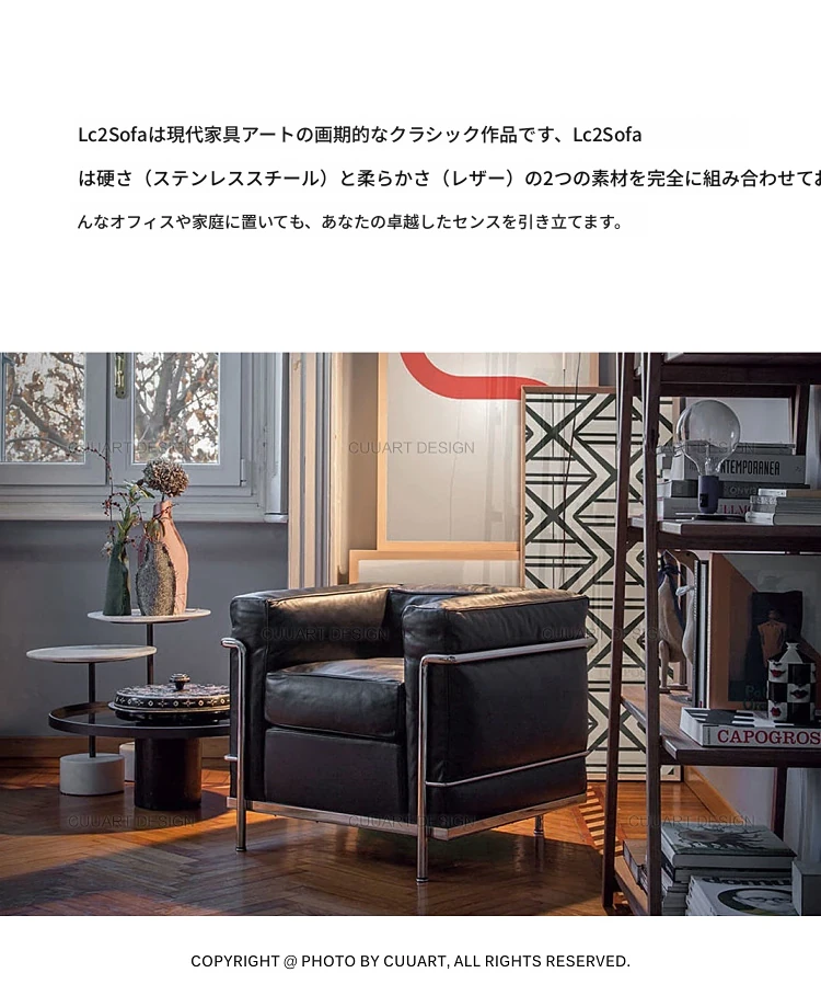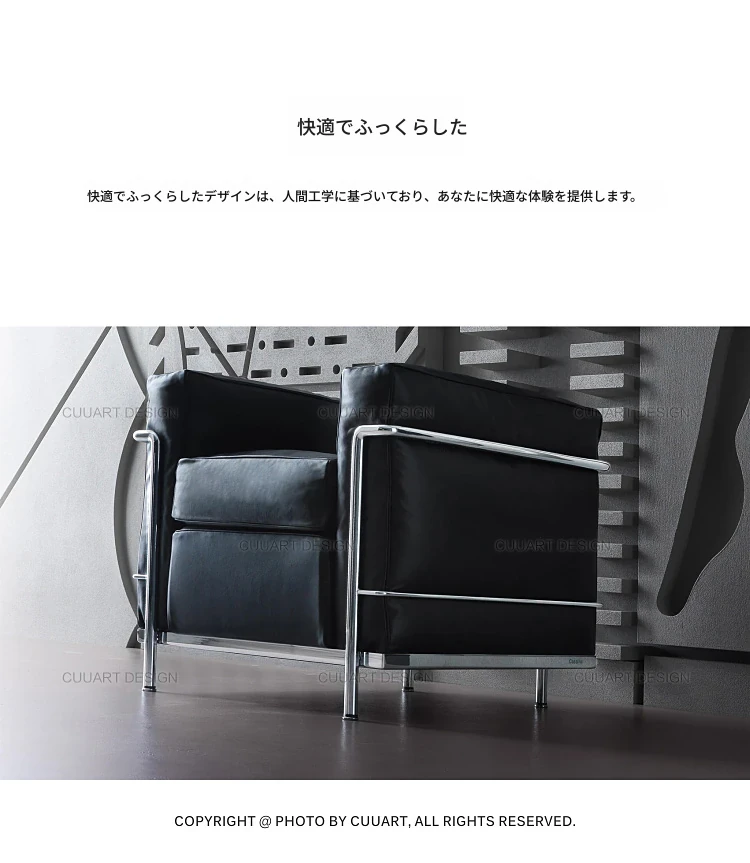 イタリアンミニマリズムのレザーソファ - ラグジュアリーなリビングデザイン、快適なオフィスやビジネスホテルの談話スペースに最適!お洒落で洗練されたデザインが、あなたの空間を格上げします。
