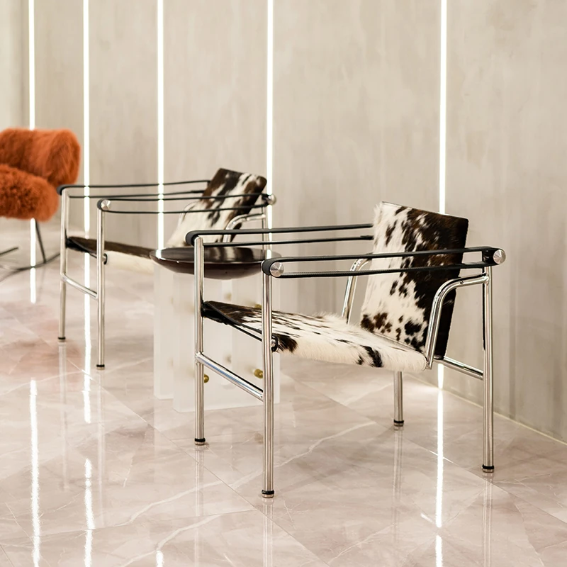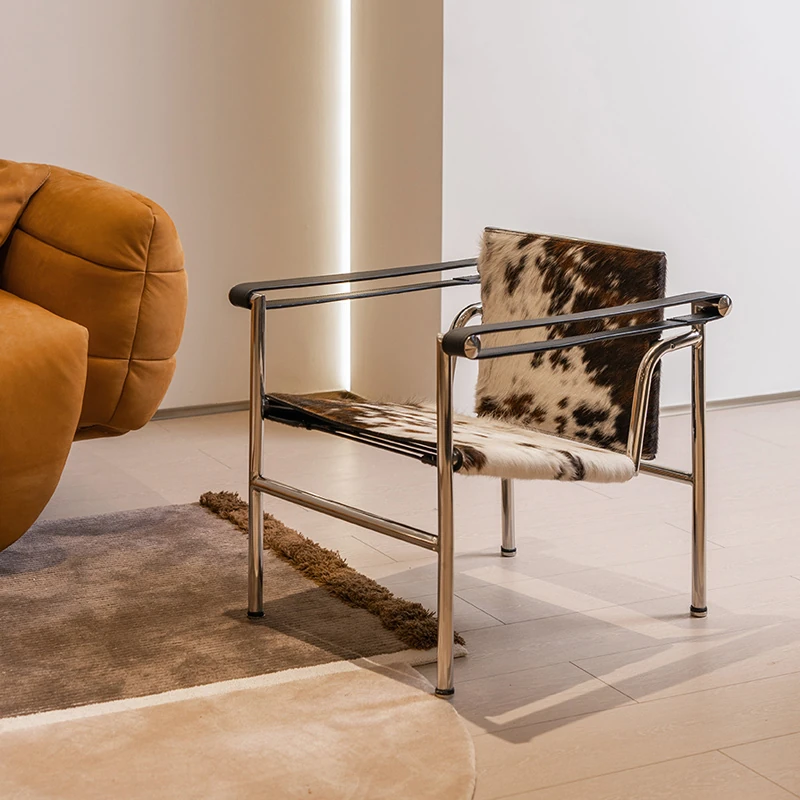 イタリアンスタイルのリビングルーム用一人掛けソファ、バウハウスデザインのLC1バスキュラントチェア - 上質なリラックス空間を演出!