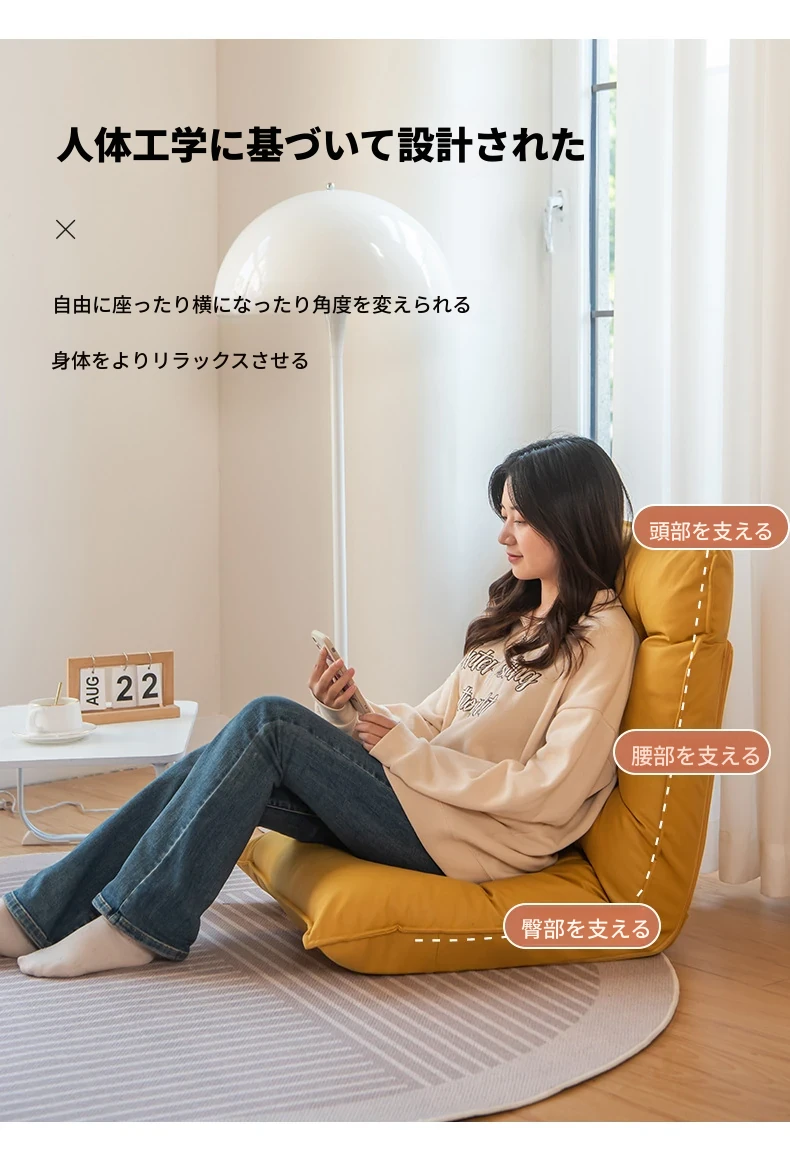 日本風リラックスソファ!畳スタイルのバルコニーや窓際にぴったり、学生寮やゲーミングに最適な寝室用背もたれ椅子。読書やリラックスに最適で、洗える&折りたたみ可能!快適さと便利さを兼ね備えた一品です。