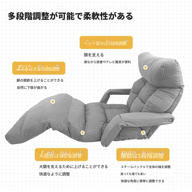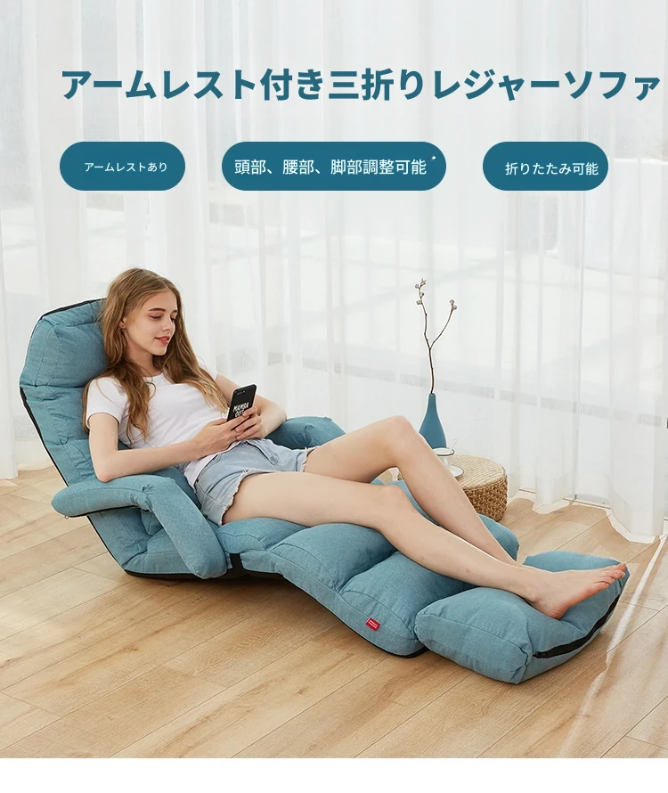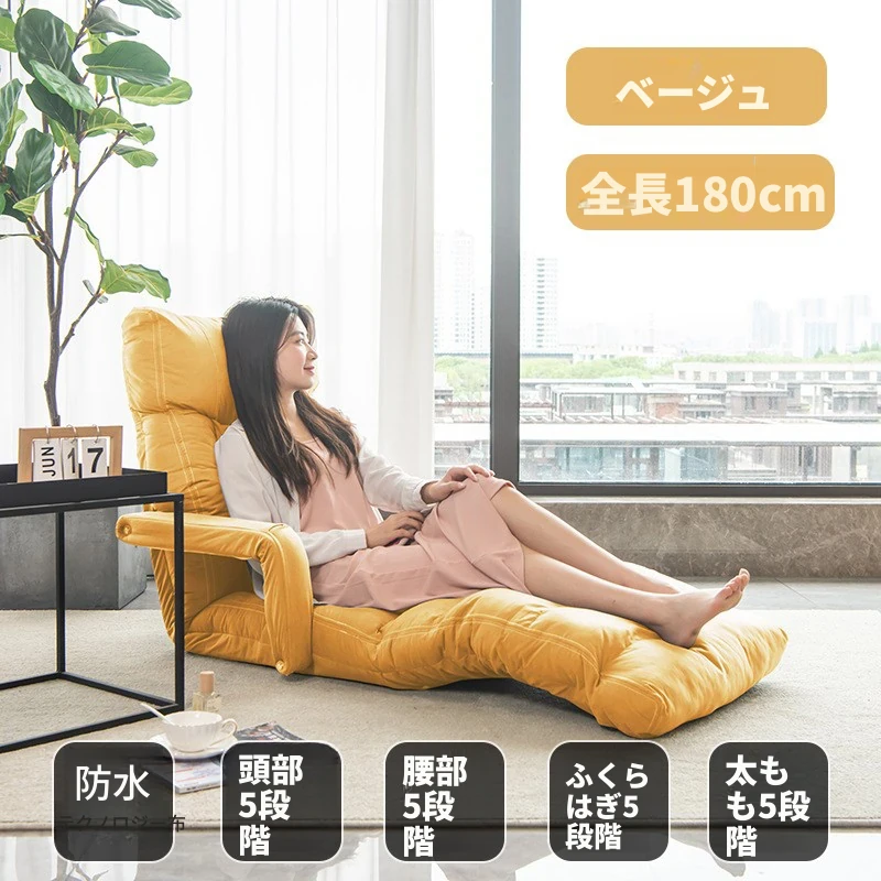 リラックスできる日本式タタミソファ!一人用で寝転がったり、休んだりできる便利なデザイン。バルコニーや窓辺にもぴったりな折りたたみ式アームレスト付きチェア。快適さとスタイルを両立した、あなたの癒しの空間を演出します!