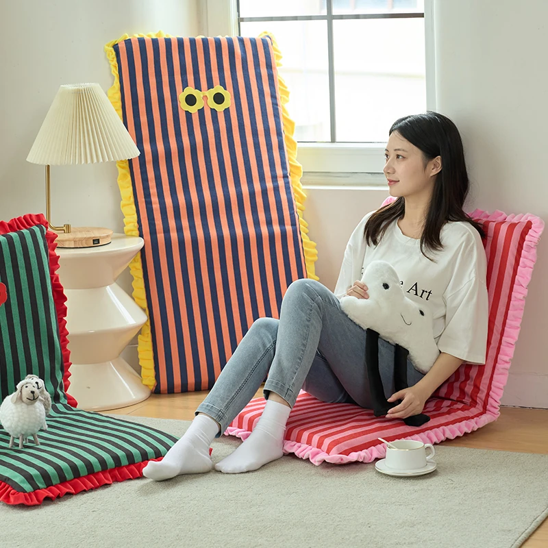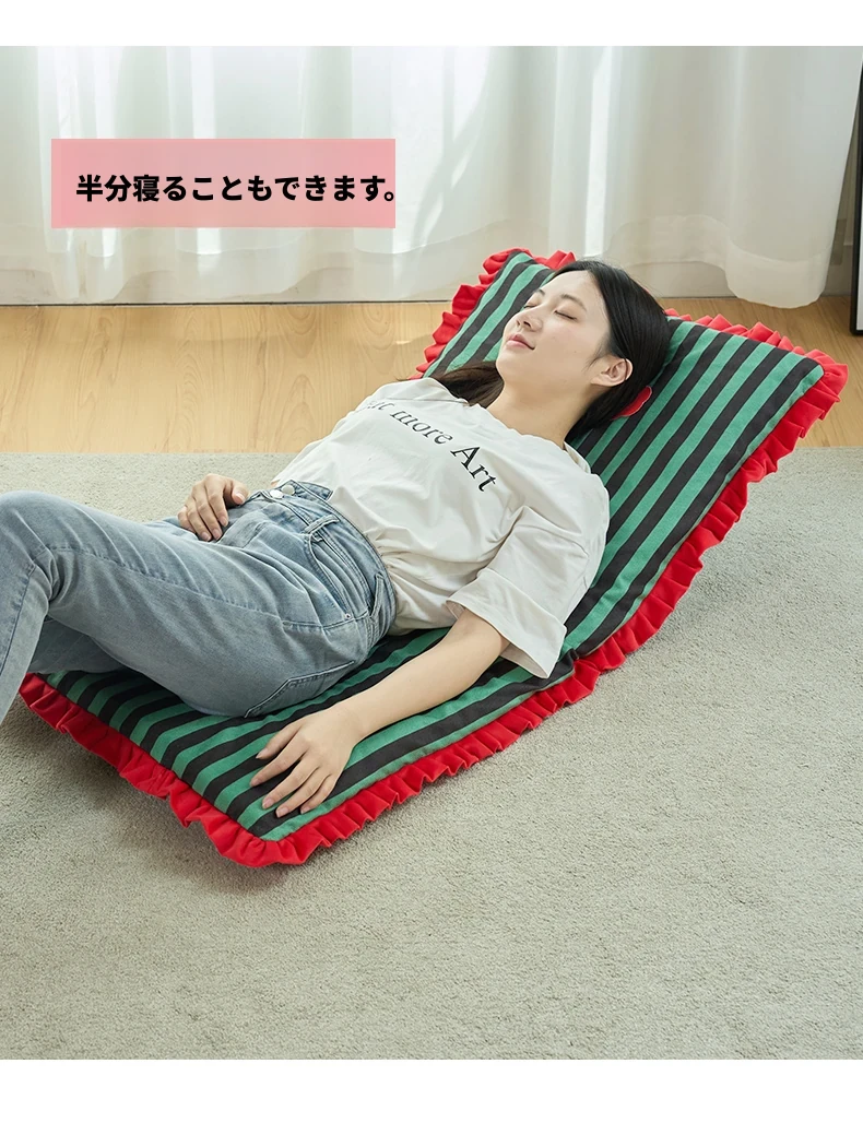 日本式リラックスソファ!脚なしデザインで快適な横たわり、背もたれ付きの休憩チェア。畳やバルコニーにぴったりな座椅子で、窓辺のくつろぎスペースを演出。あなたの癒しの時間をサポートします!