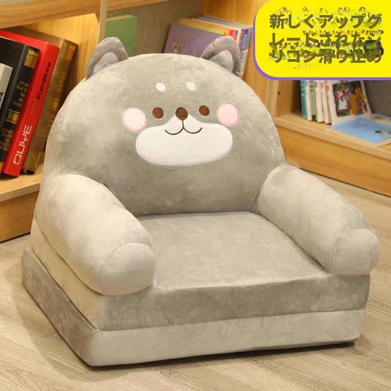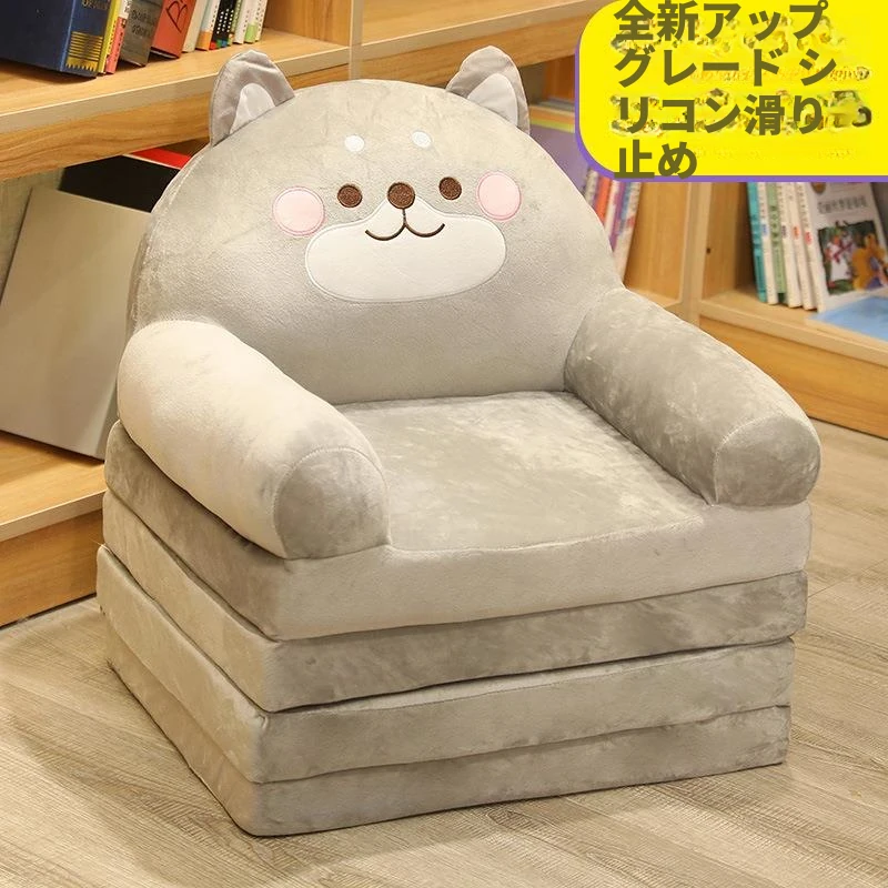 (滑り止めタイプ-グレーの柴犬 3つ折り)、ふっくら詰め物、快適で肌触りが良い