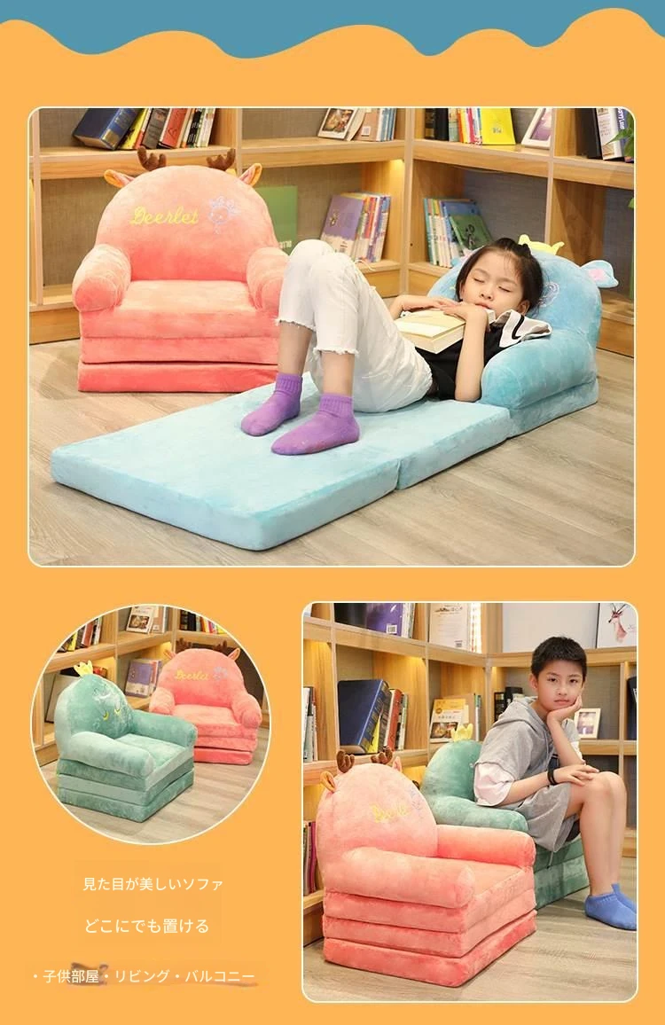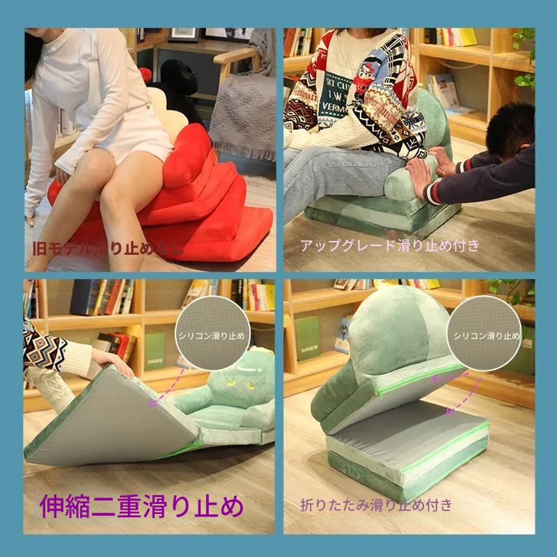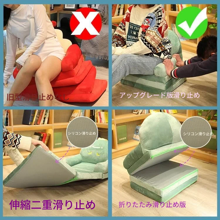 (滑り止めタイプ-緑の恐竜 2つ折り)、ふっくら詰め物、快適で肌触りが良い