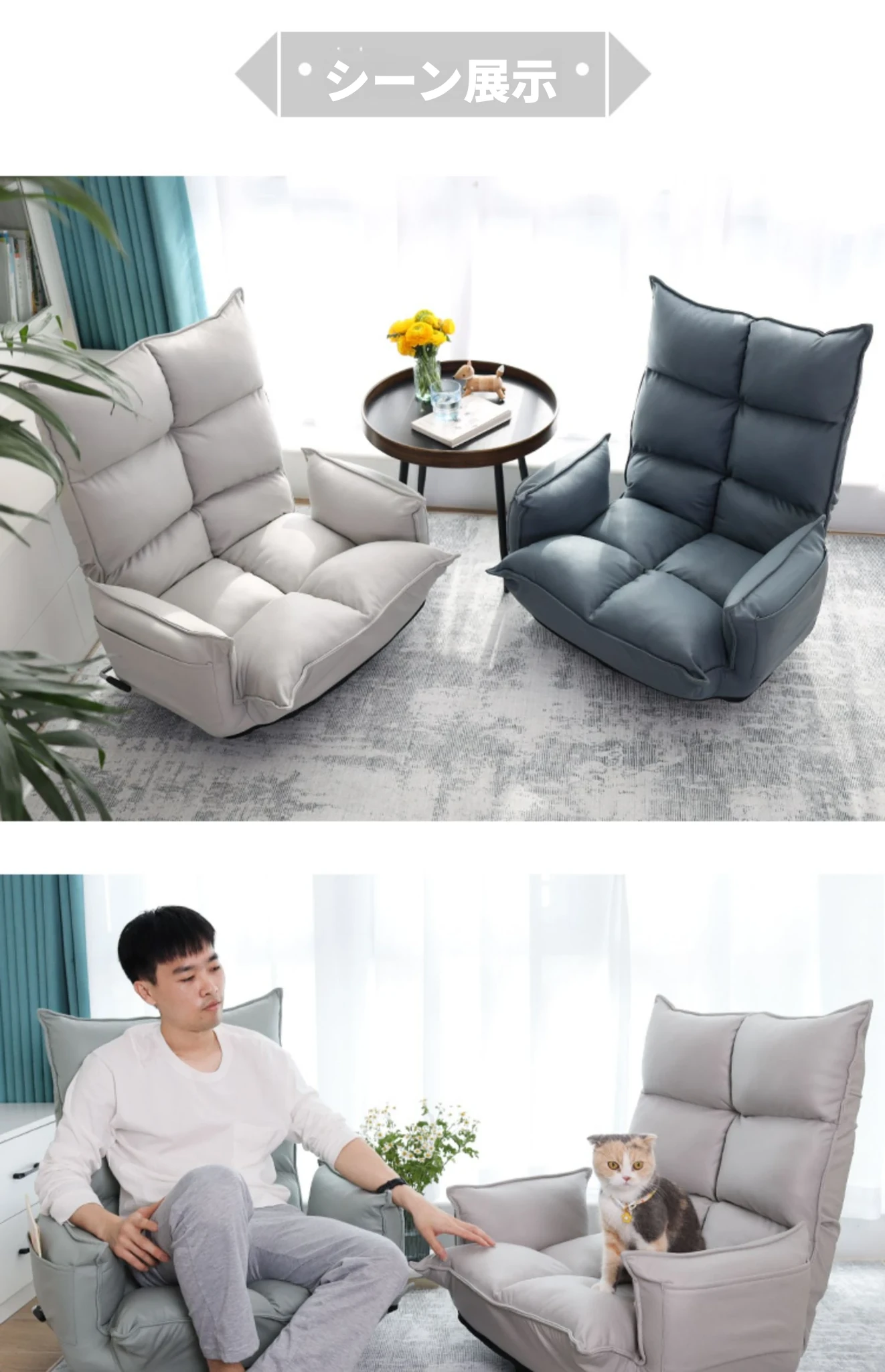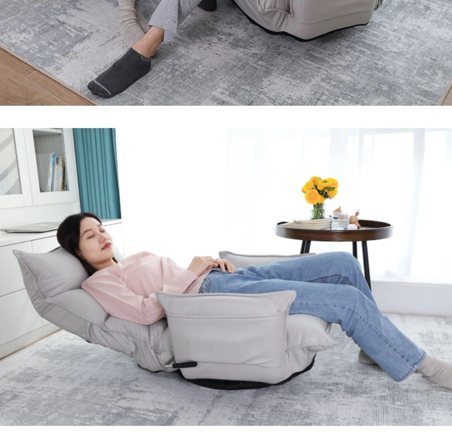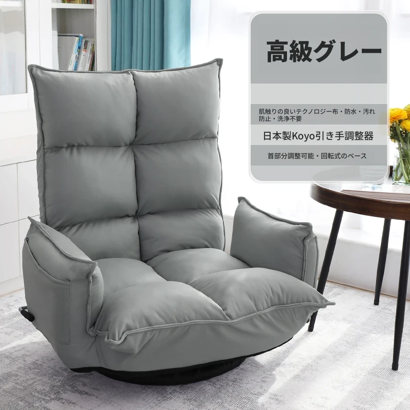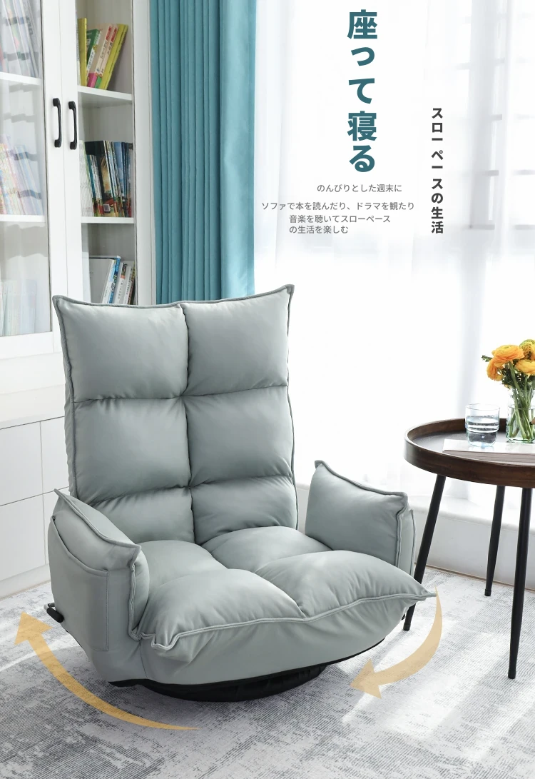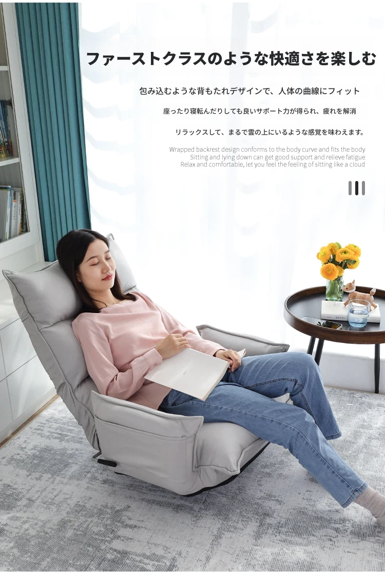 おしゃれなリクライニングソファ・タタミベッド、快適な背もたれ付きシングルチェアー。寝室やバルコニー、出窓に最適!折りたたみ可能で、アームレスト付き、360度回転もできる便利なアイテムです。あなたのリラックスタイムをもっと特別に!