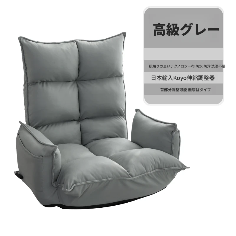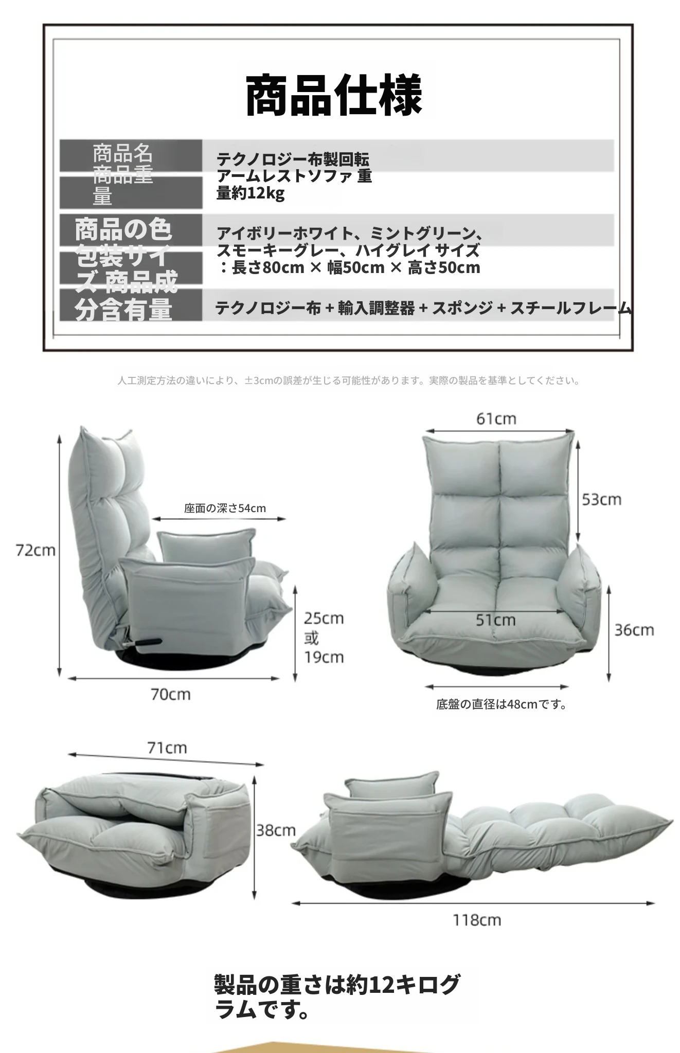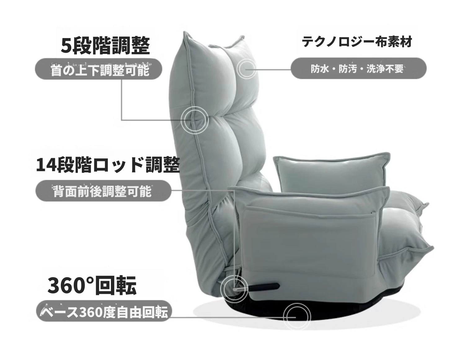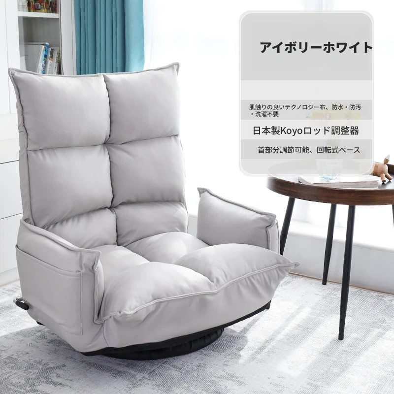 おしゃれなリクライニングソファ・タタミベッド、快適な背もたれ付きシングルチェアー。寝室やバルコニー、出窓に最適!折りたたみ可能で、アームレスト付き、360度回転もできる便利なアイテムです。あなたのリラックスタイムをもっと特別に!