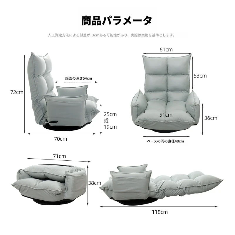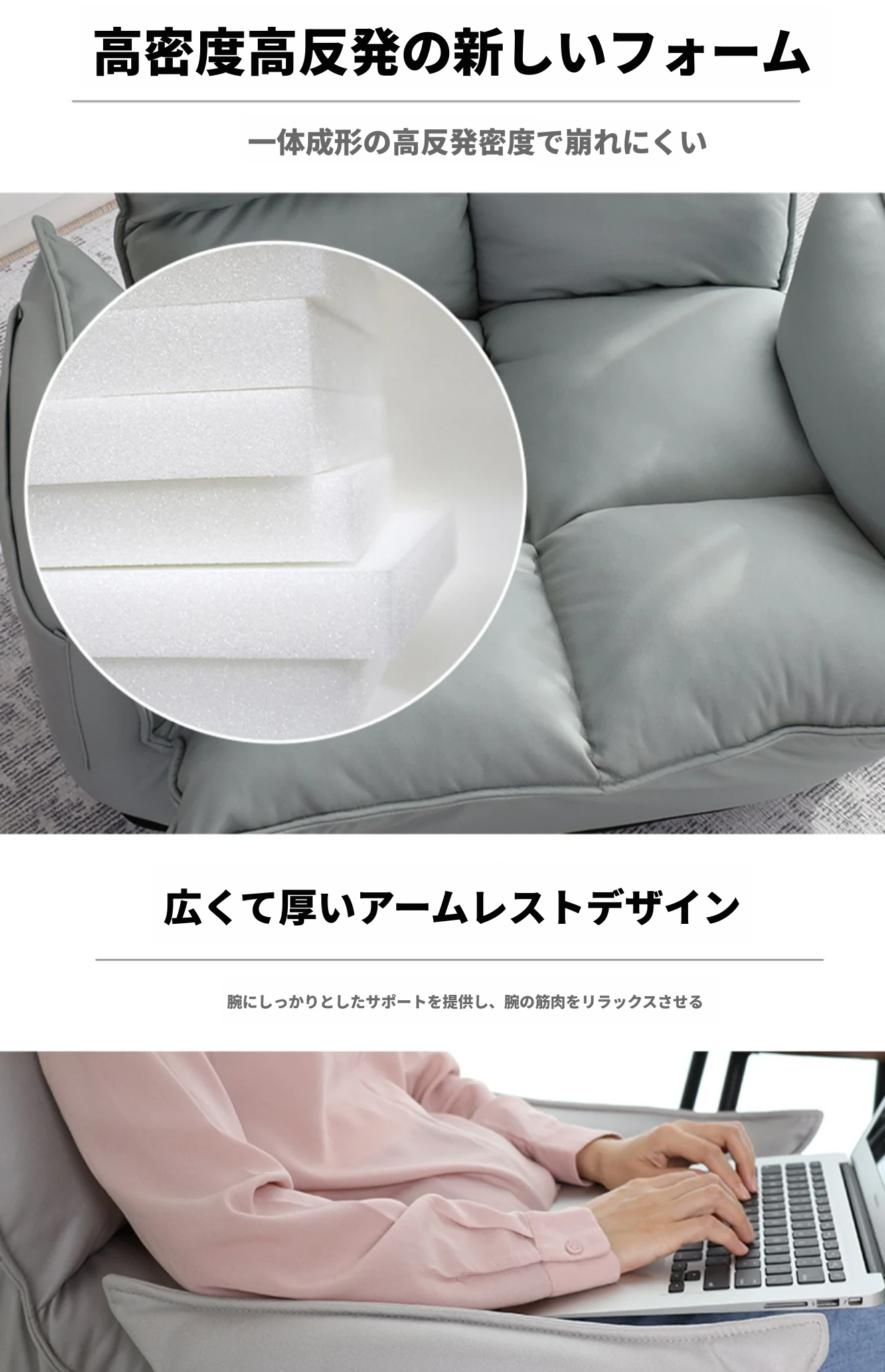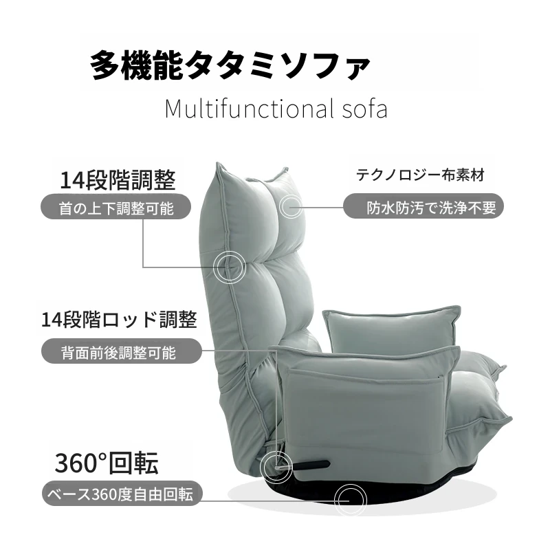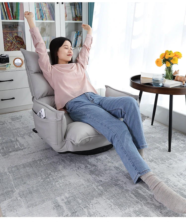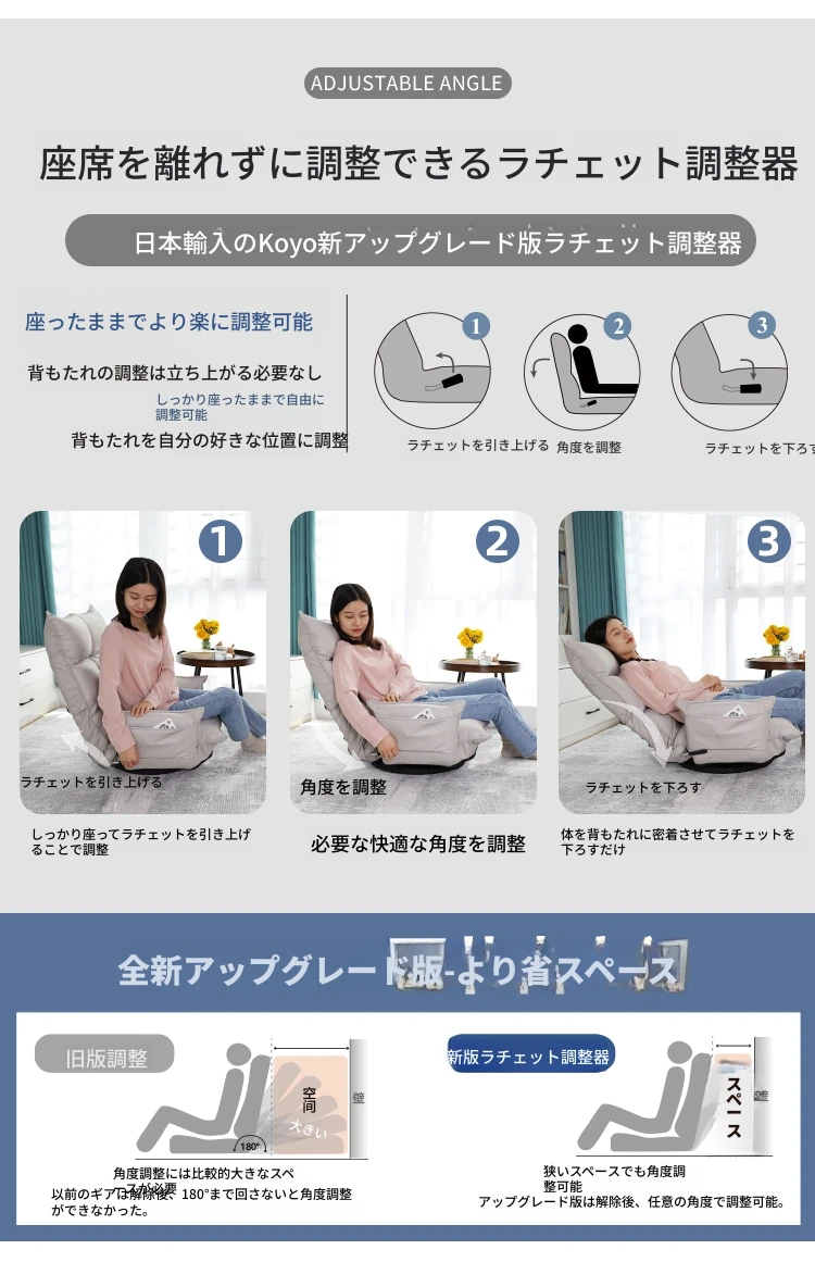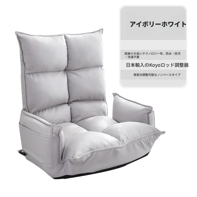 おしゃれなリクライニングソファ・タタミベッド、快適な背もたれ付きシングルチェアー。寝室やバルコニー、出窓に最適!折りたたみ可能で、アームレスト付き、360度回転もできる便利なアイテムです。あなたのリラックスタイムをもっと特別に!