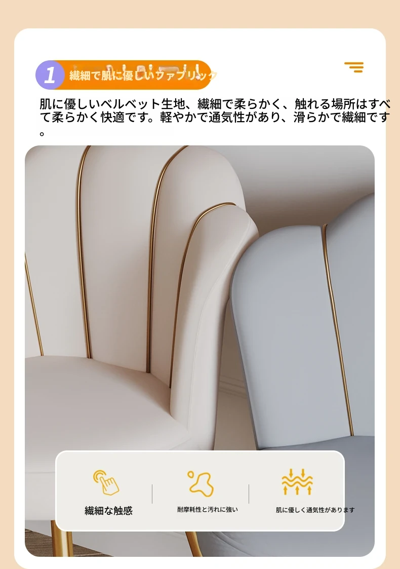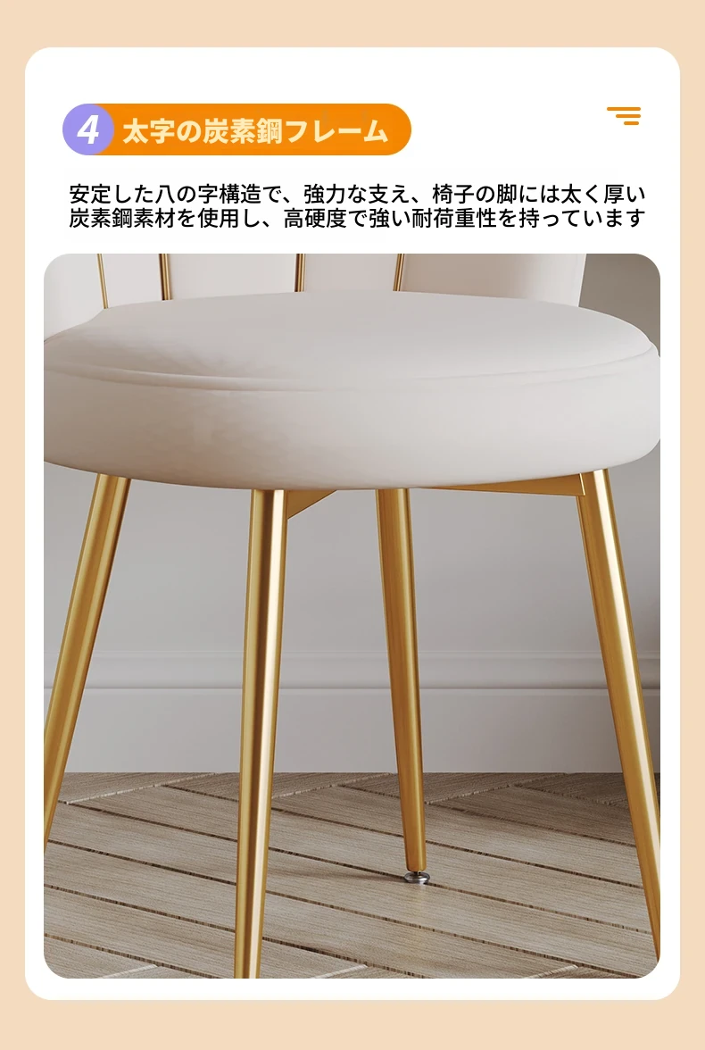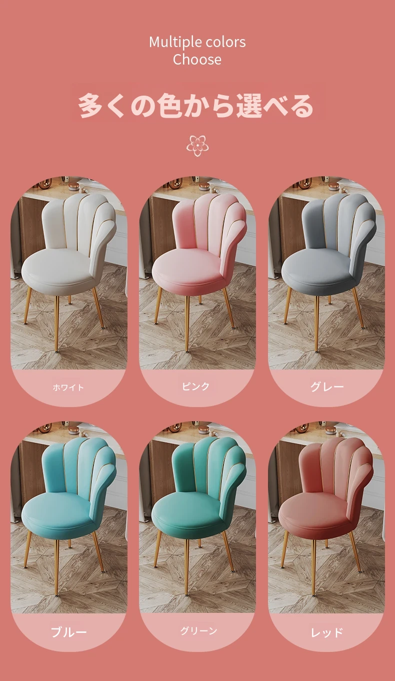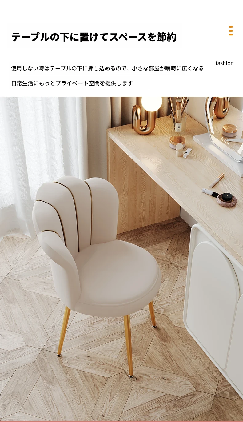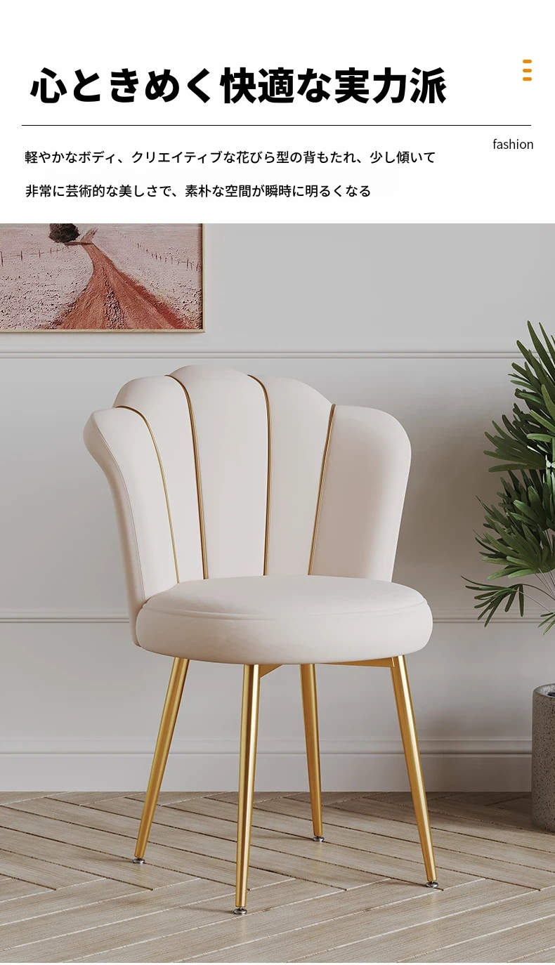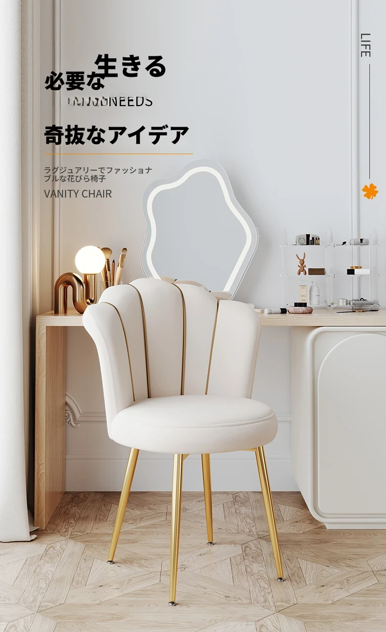 軽やかな高級感を演出する化粧椅子!主寝室用のスタイリッシュなドレッサー椅子、トレンド感満載の背もたれ付き。女の子のための美しい花びらデザイン、メイクやネイルにぴったりなアイテムです!