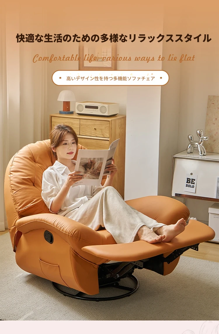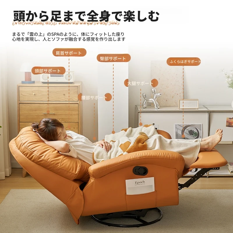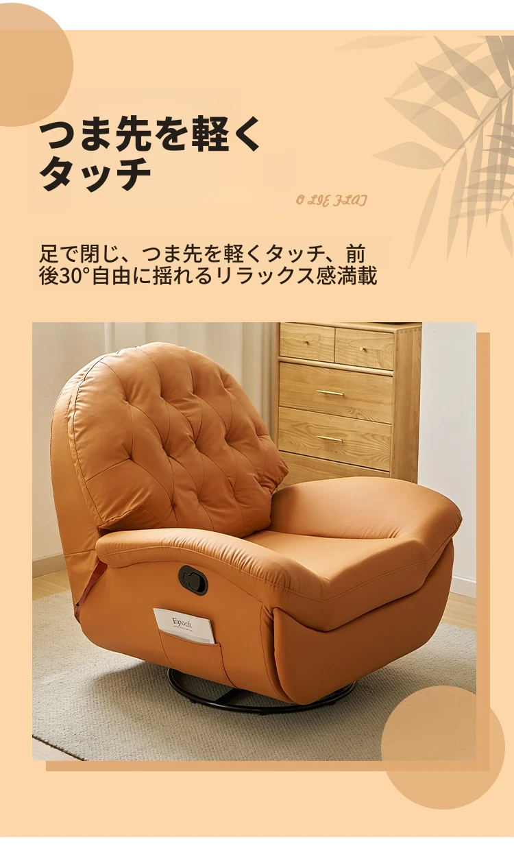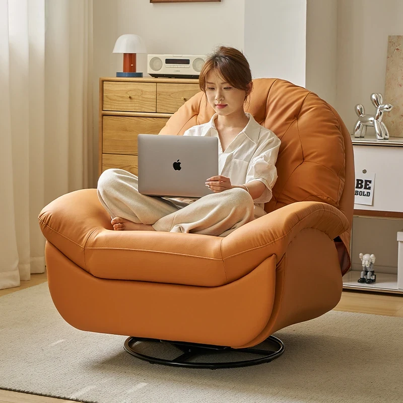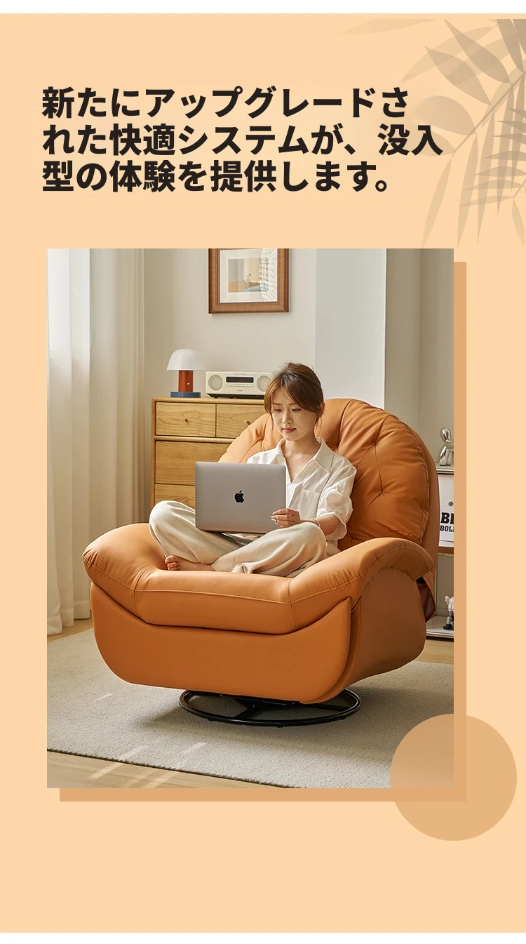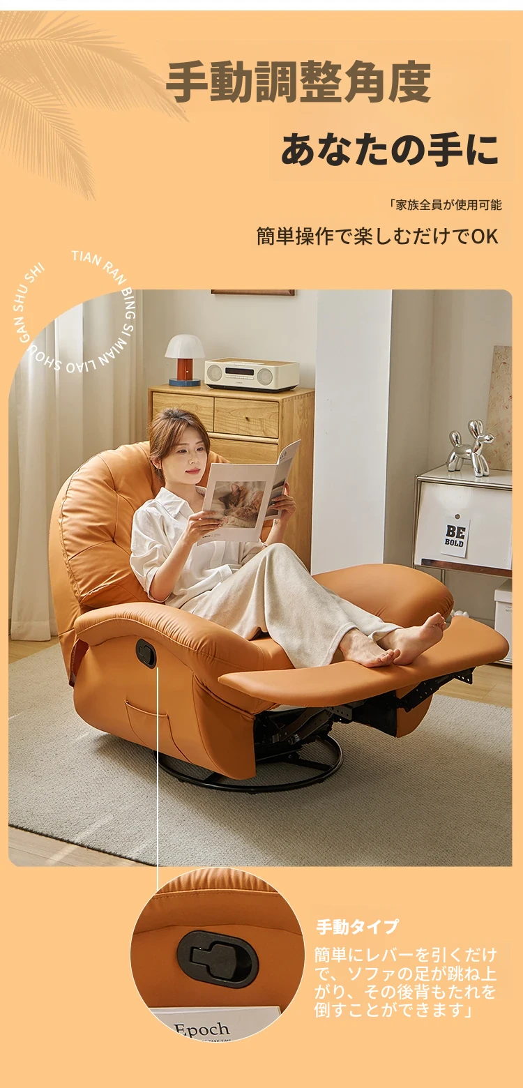 新中古のラクラク回転ソファチェア - オイルワックスレザーの一人用、リビングやバルコニーに最適!読書やリラックスタイムにぴったりの、民宿にも合うスタイリッシュなデザイン。