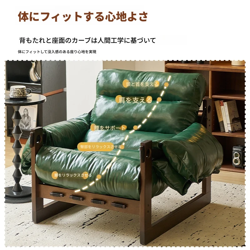 中古グリーン【スキンフレンドリーオイルワックスレザー】無垢フレーム