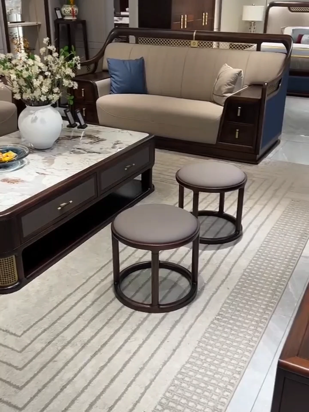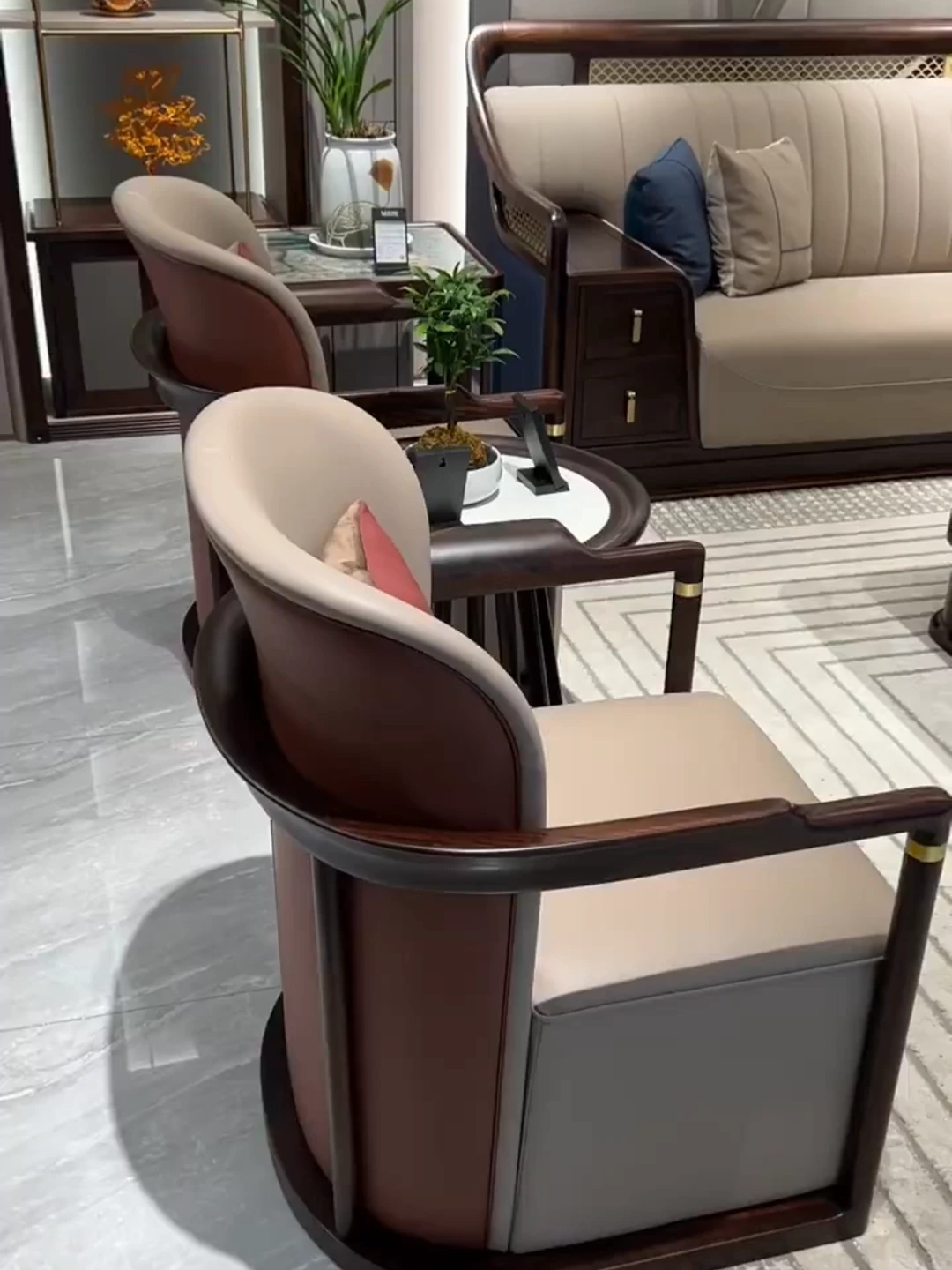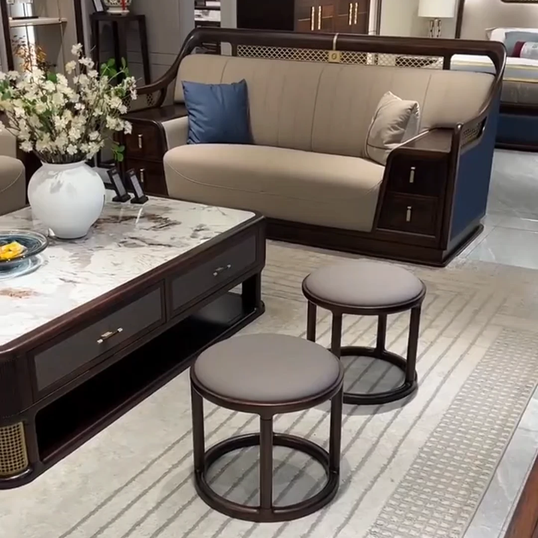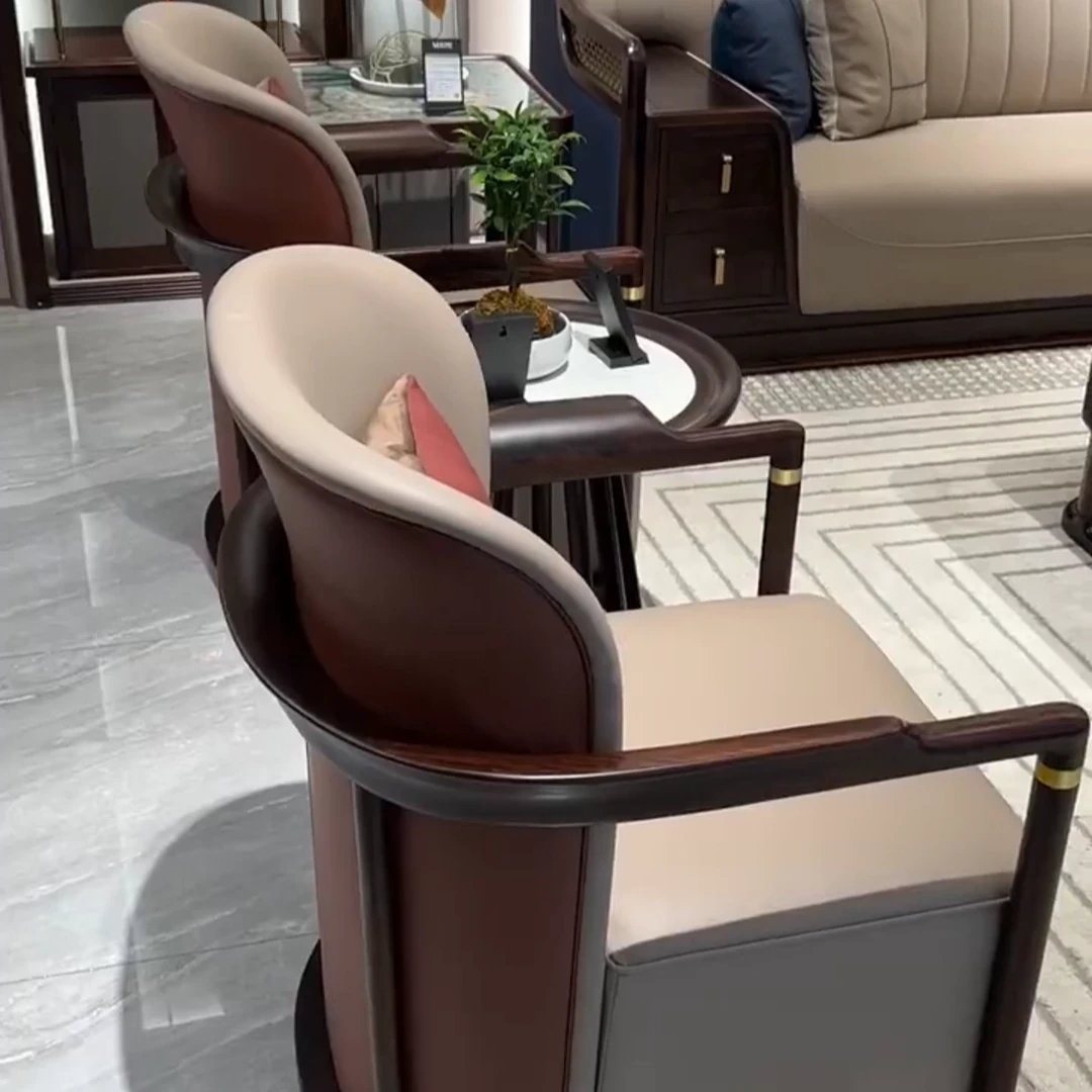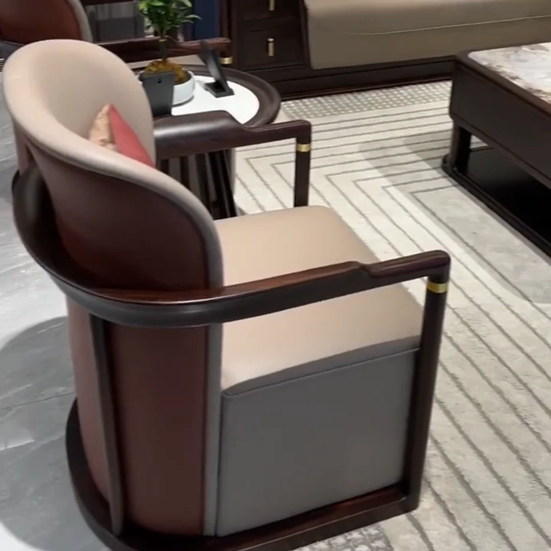 新中式ウッド調ウキン木製ソファセット - ヴィラやリビングに最適なデザイン、コンパクトなサイズで洗練されたホテルの雰囲気を演出する高級感あふれるティーテーブル家具。