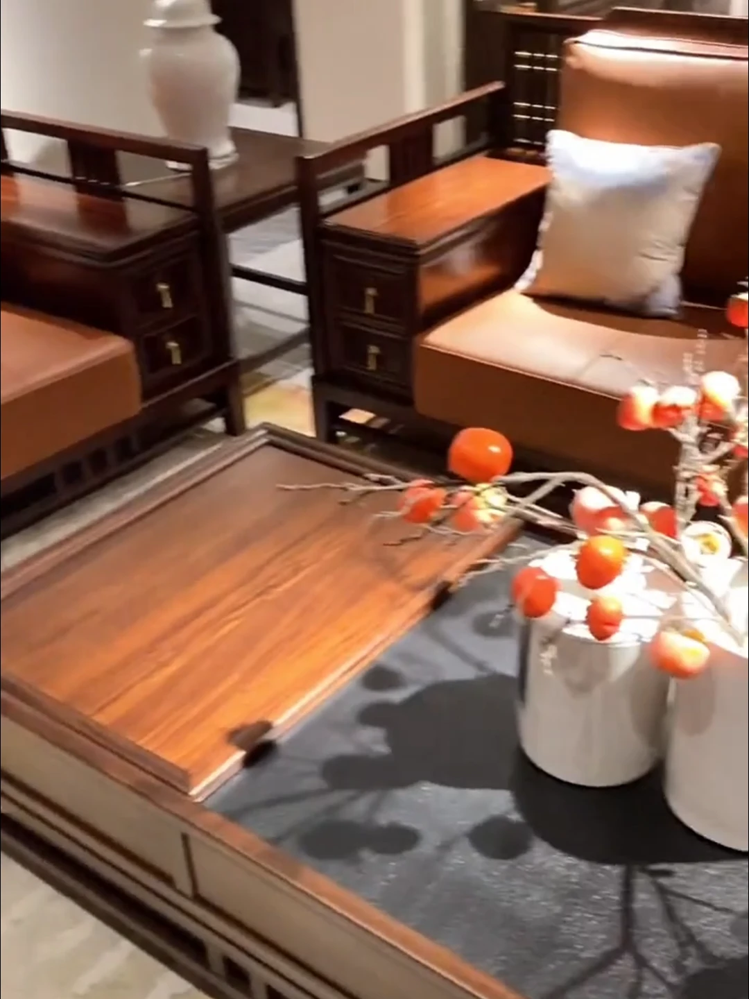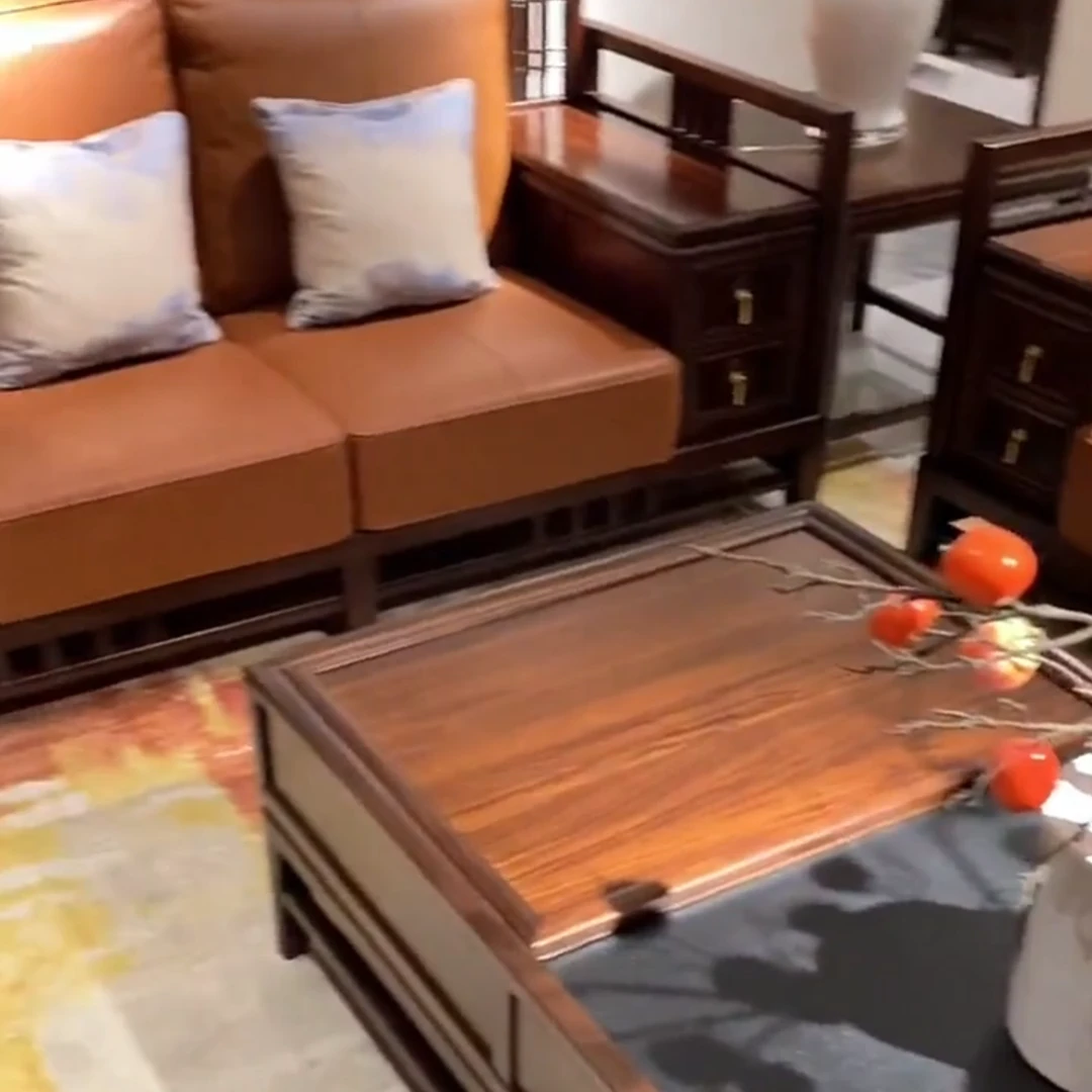 新中式ウッドブラックウッドの無垢材ソファセット - モダンで軽やかなラグジュアリー、シンプルなデザインのリビングルーム向け、モデルハウスや別荘、民宿に最適なソファ!