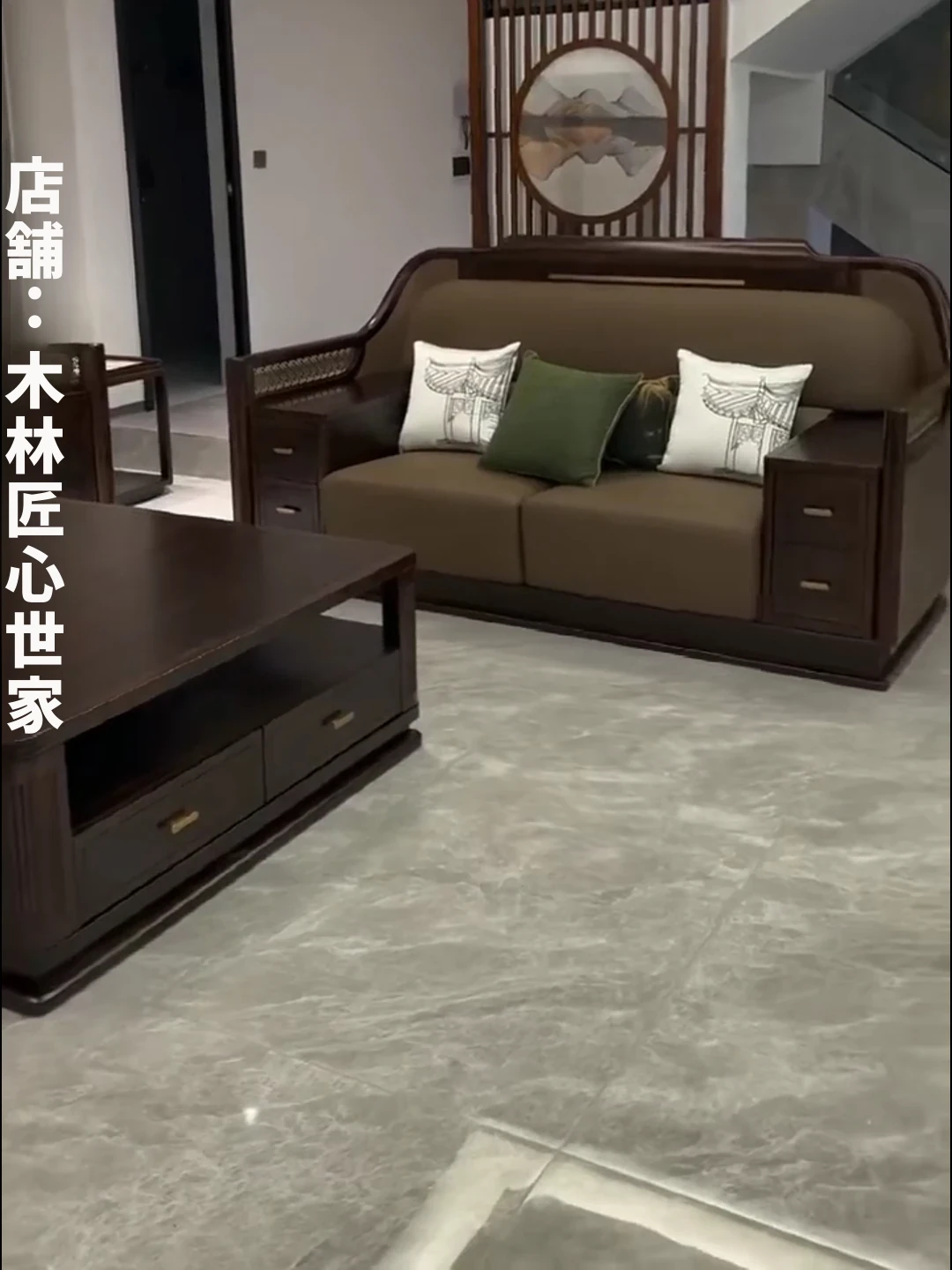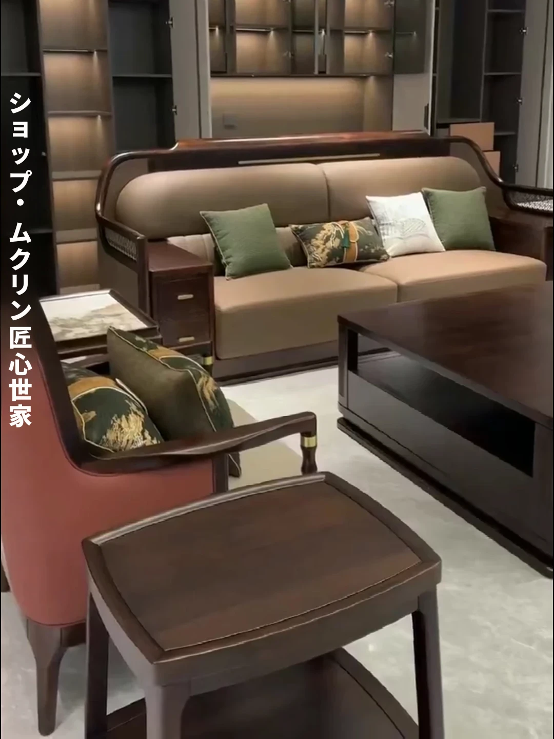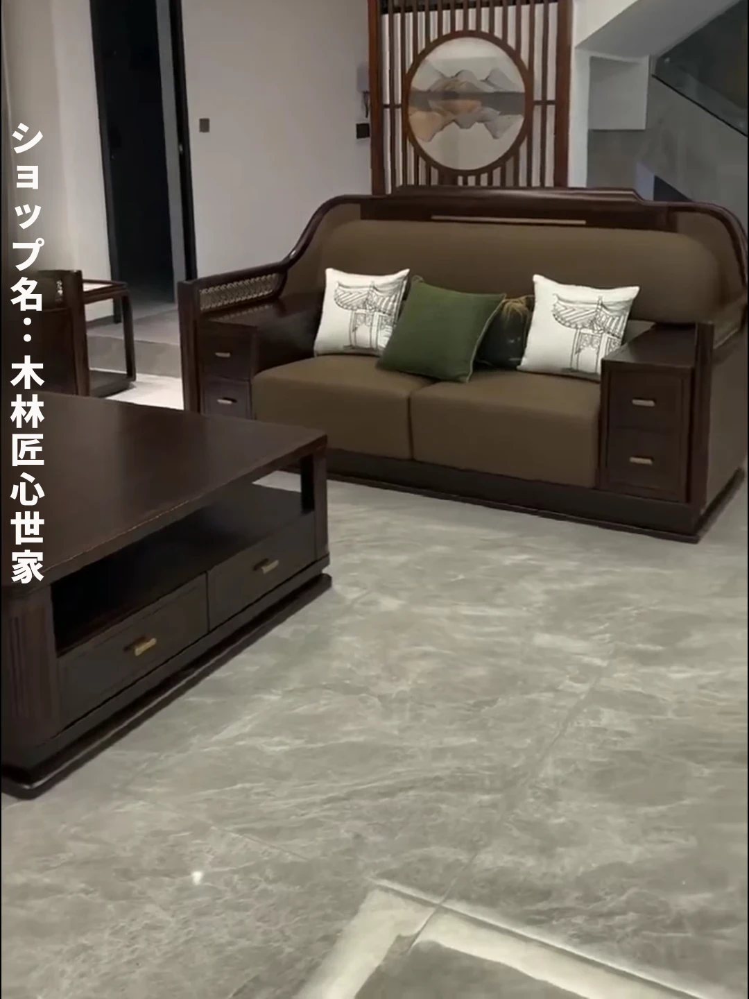 新中式ウッドファニチャーの高級感あふれるウルシ木ソファセット - モダンな別荘や広々としたリビングに最適な実木家具。洗練されたデザインで、心地よい空間を演出します。