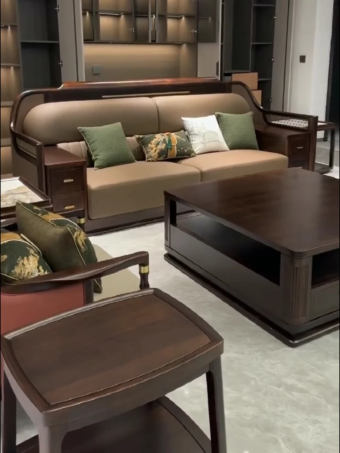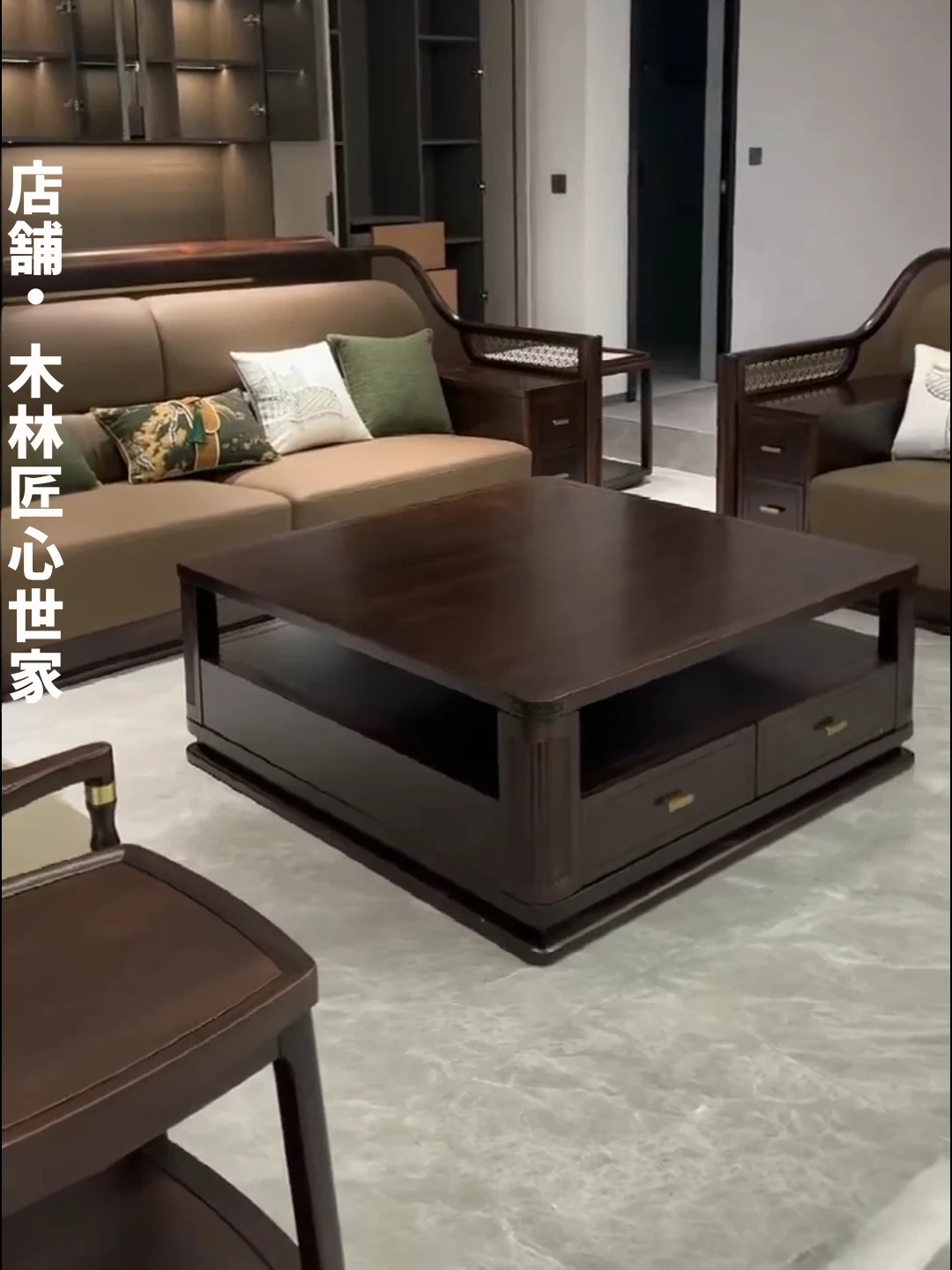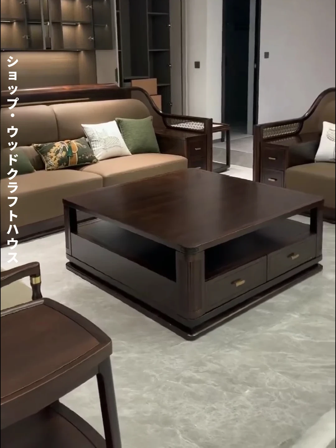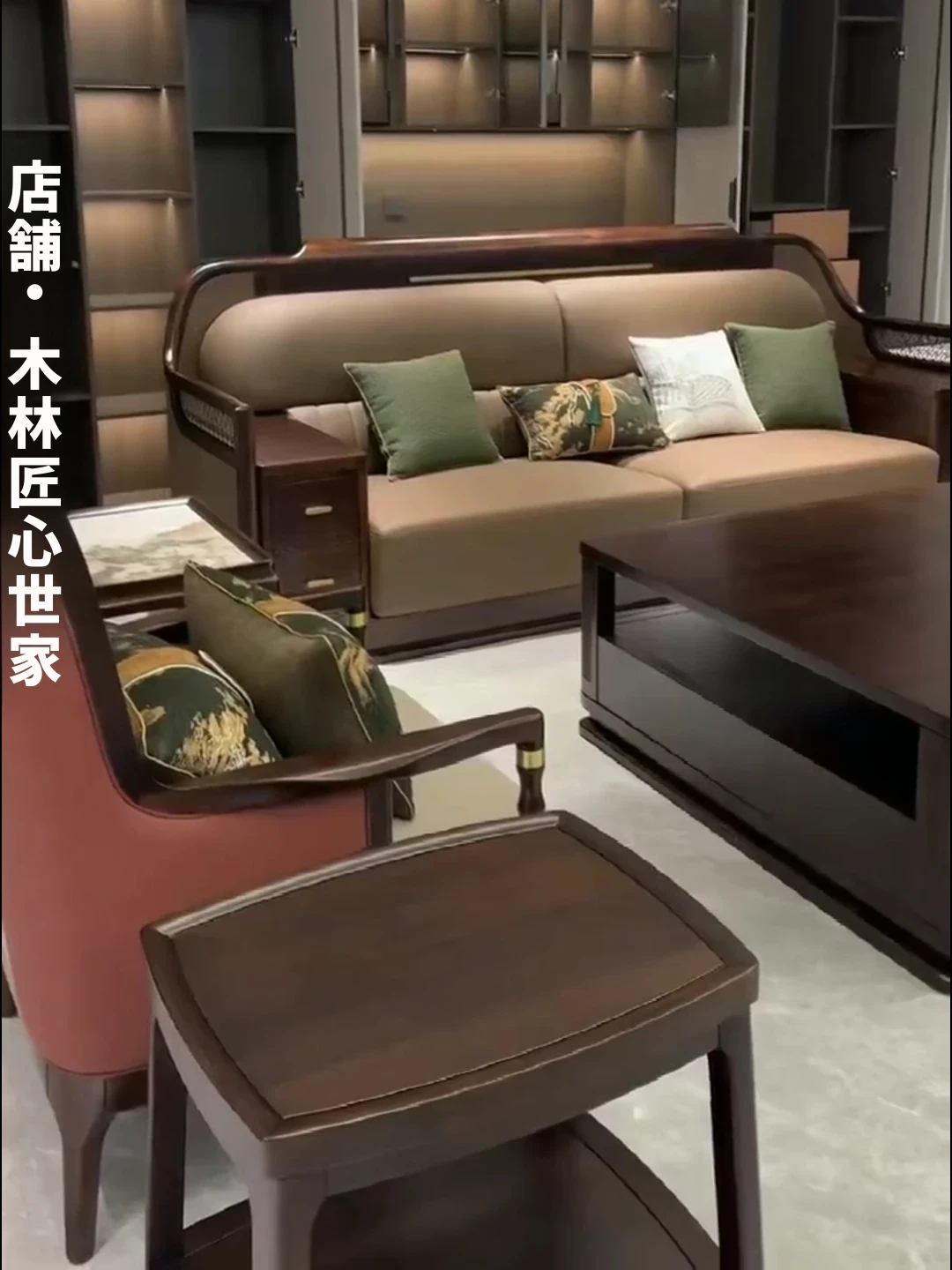 新中式ウッドファニチャーの高級感あふれるウルシ木ソファセット - モダンな別荘や広々としたリビングに最適な実木家具。洗練されたデザインで、心地よい空間を演出します。