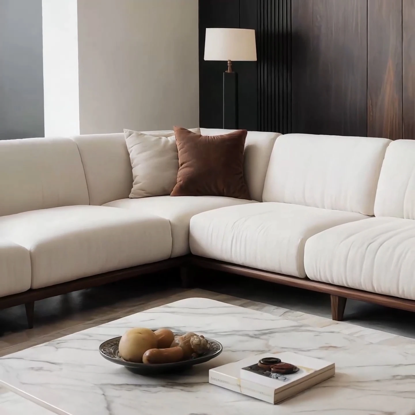 新中式デザインの北米ブラックウォールナット製コーナーソファ!モダンで軽やかな雰囲気の実木ソファ。別荘やモデルルームにもぴったりの上質な家具。リビングをスタイリッシュに演出します!