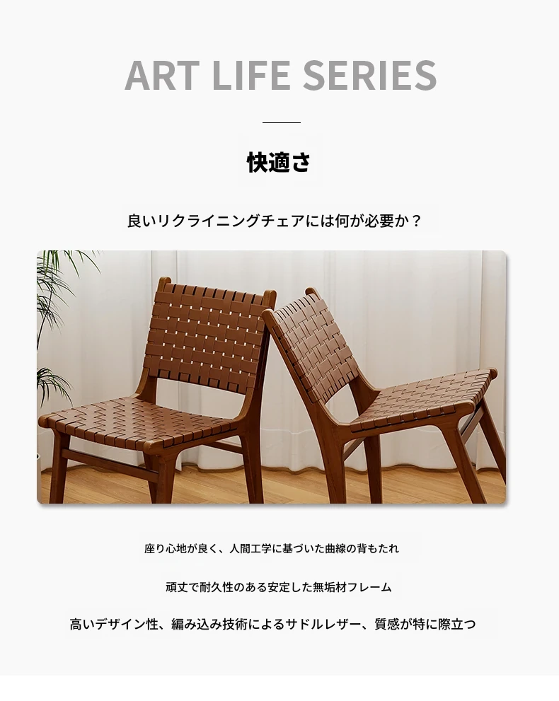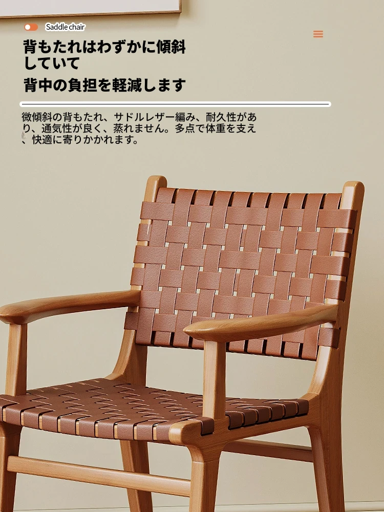 ナチュラルウッド材/浅茶サドルレザー【快適で耐久性、組み立て発送】