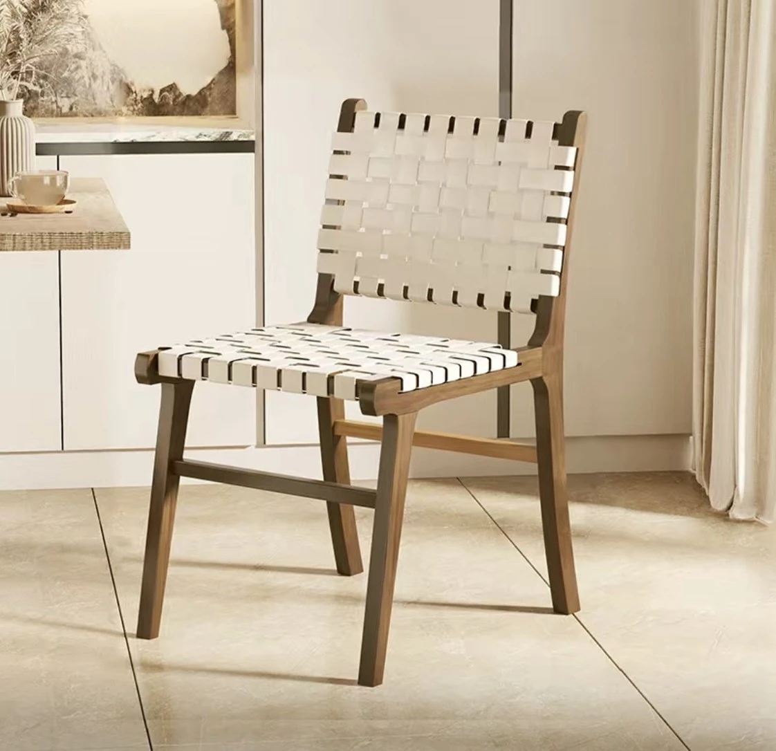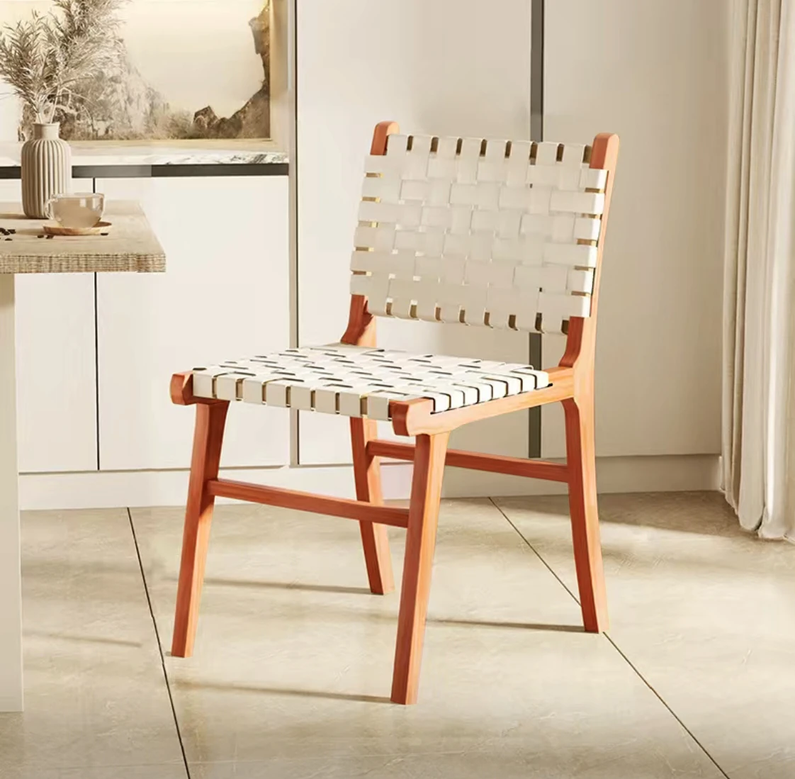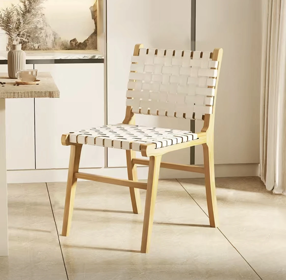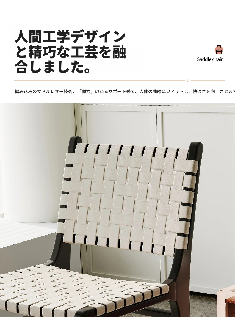 ナチュラルウッド材/白サドルレザー【快適で耐久性、組み立て発送】