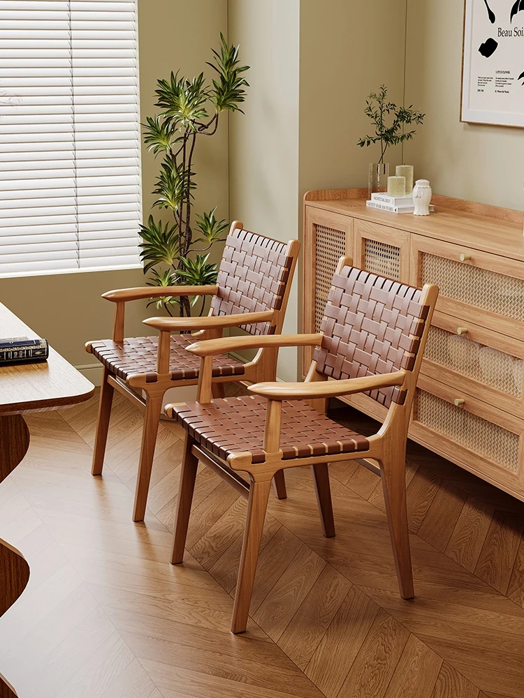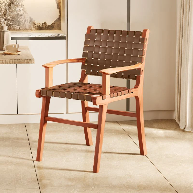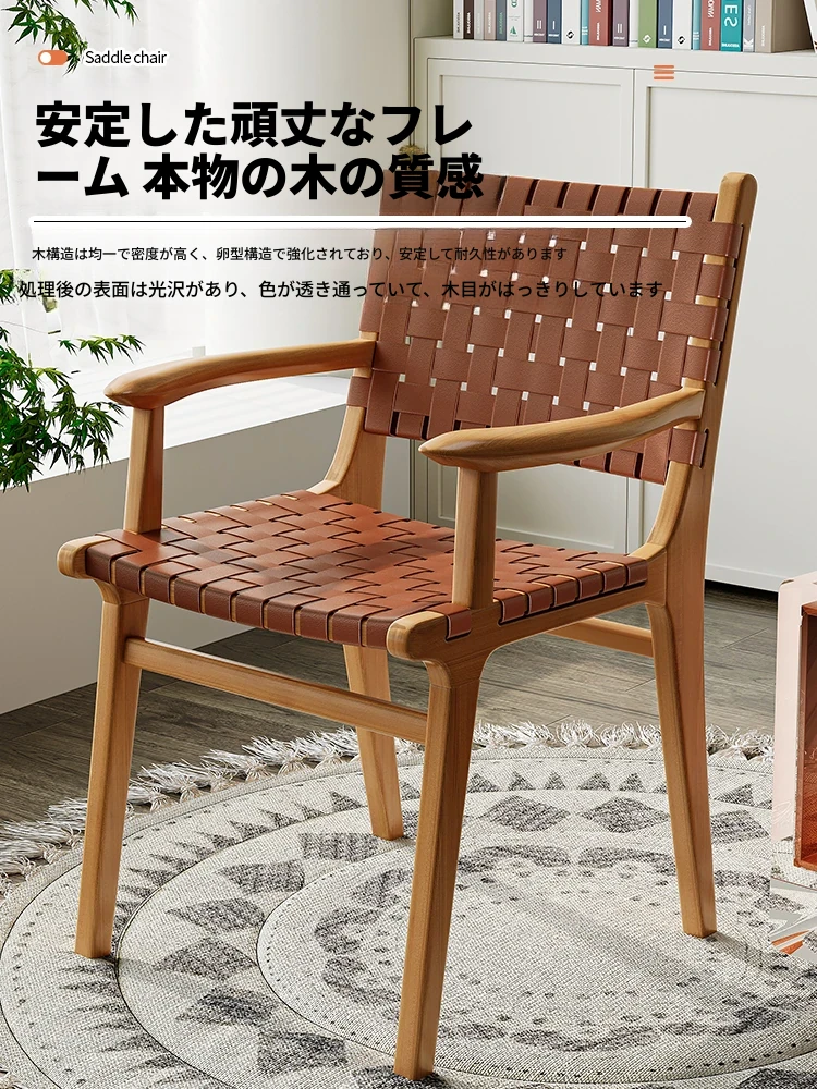 ナチュラルウッド材/深茶サドルレザー【快適で耐久性、組み立て発送】アームレスト付き