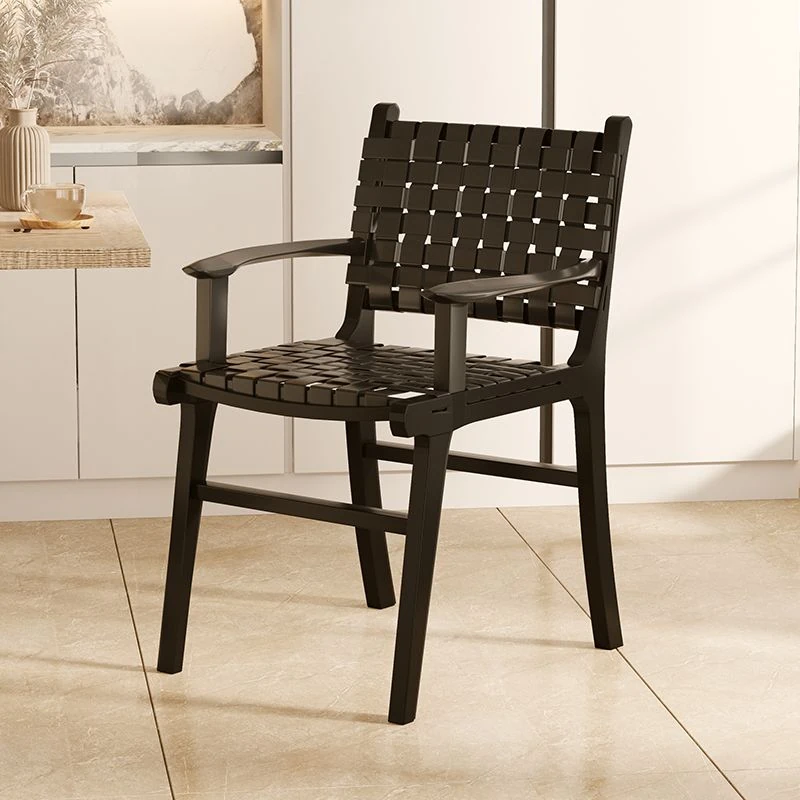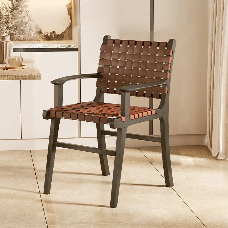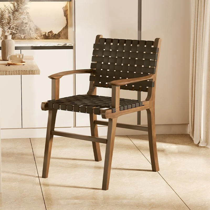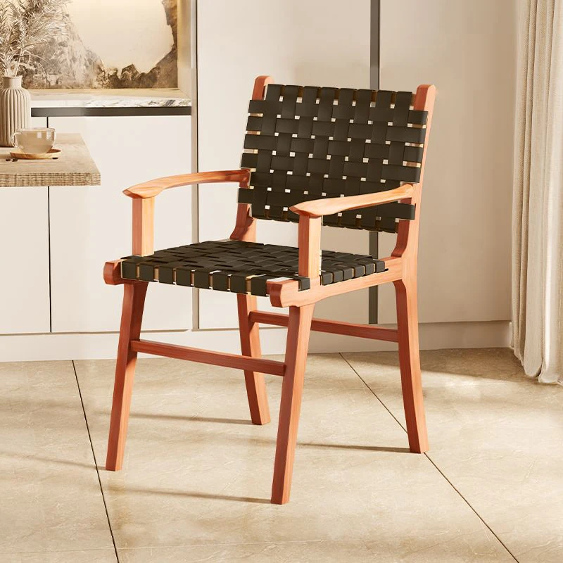 ブラックウッド材/深茶サドルレザー【快適で耐久性、組み立て発送】アームレスト付き