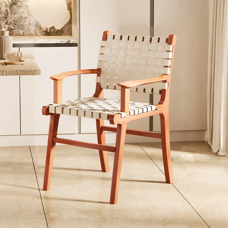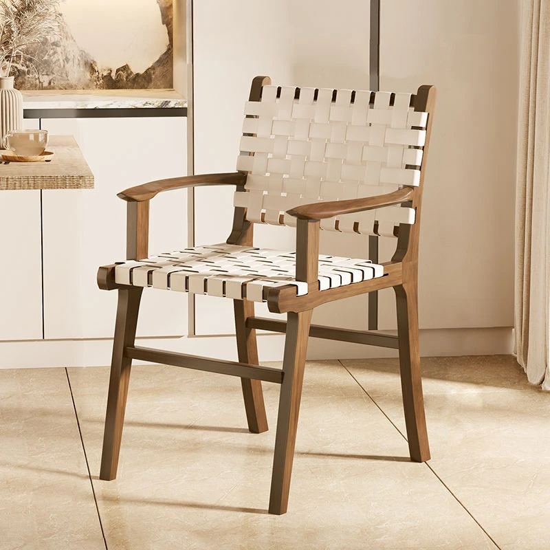 ナチュラルウッド材/白サドルレザー【快適で耐久性、組み立て発送】アームレスト付き