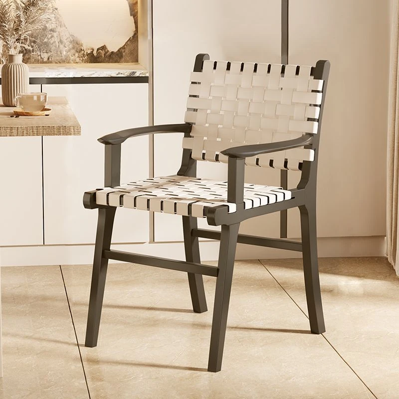 ブラックウッド材/白サドルレザー【快適で耐久性、組み立て発送】アームレスト付き