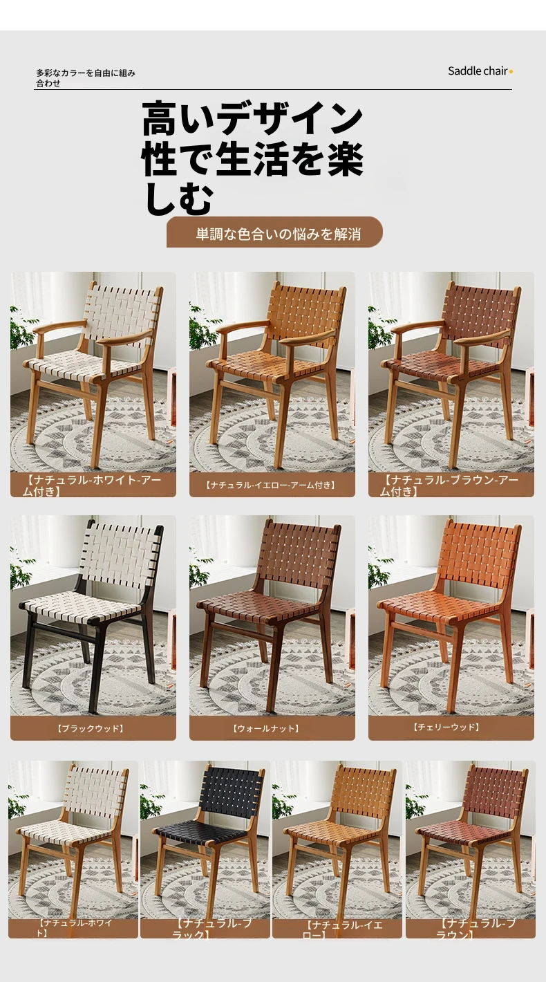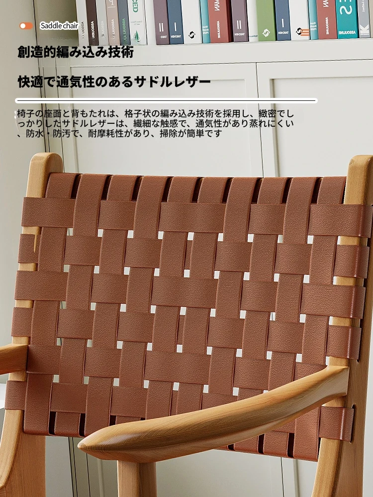 ナチュラルウッド材/深茶サドルレザー【快適で耐久性、組み立て発送】