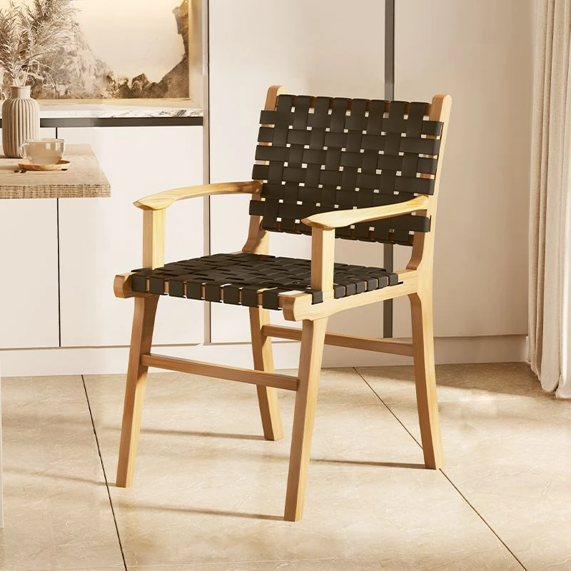 ナチュラルウッド材/黒サドルレザー【快適で耐久性、組み立て発送】アームレスト付き