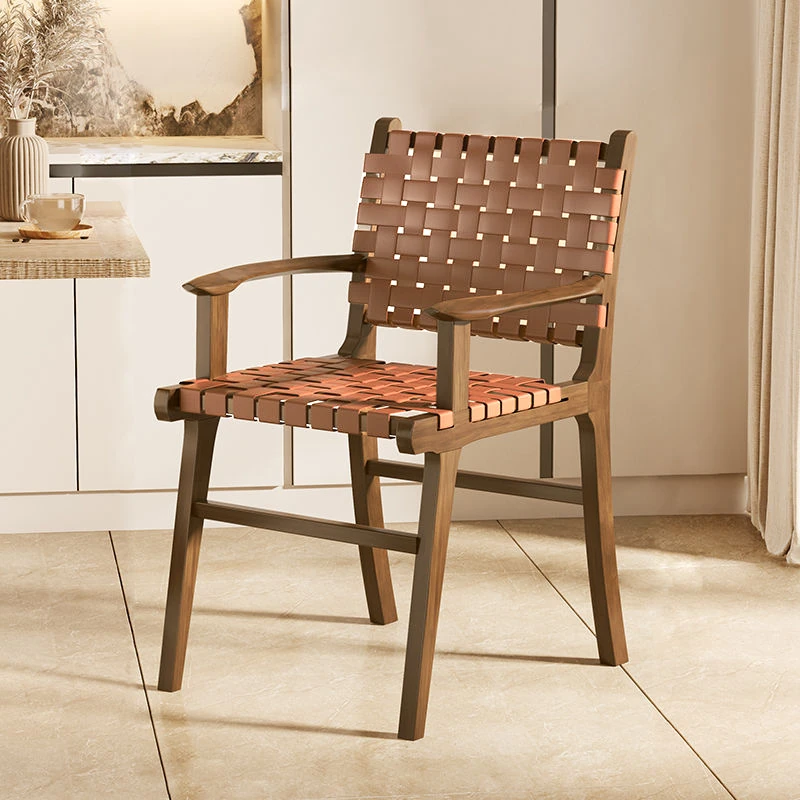 ウォールナット材/浅茶サドルレザー【快適で耐久性、組み立て発送】アームレスト付き