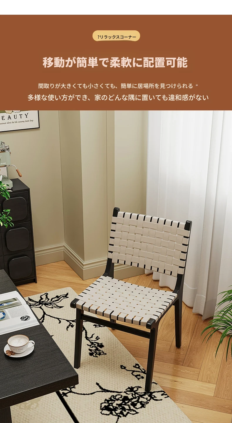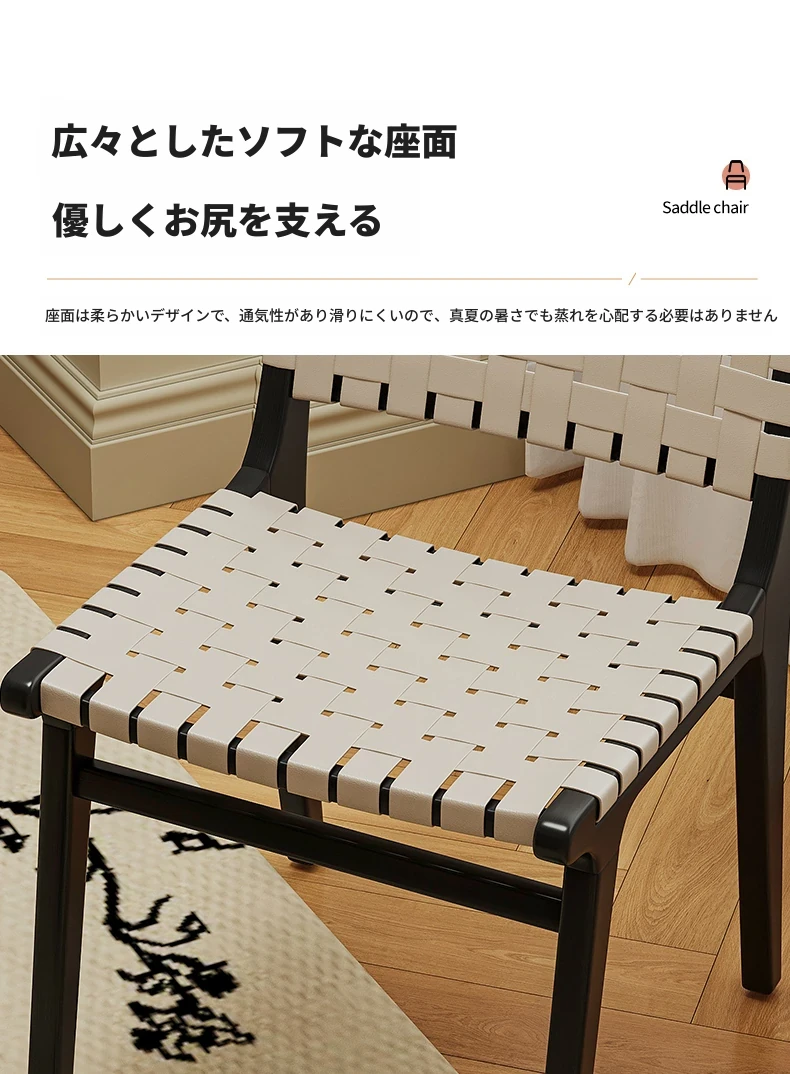 ブラックウッド材/白サドルレザー【快適で耐久性、組み立て発送】