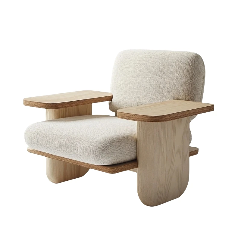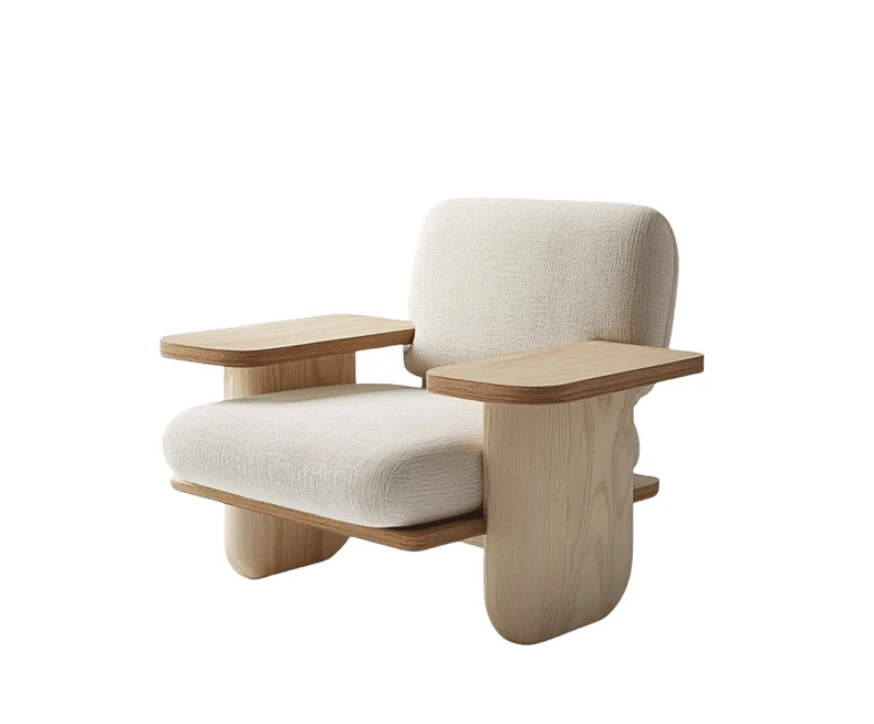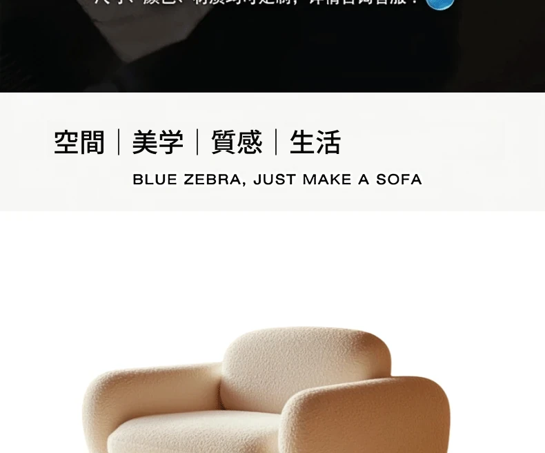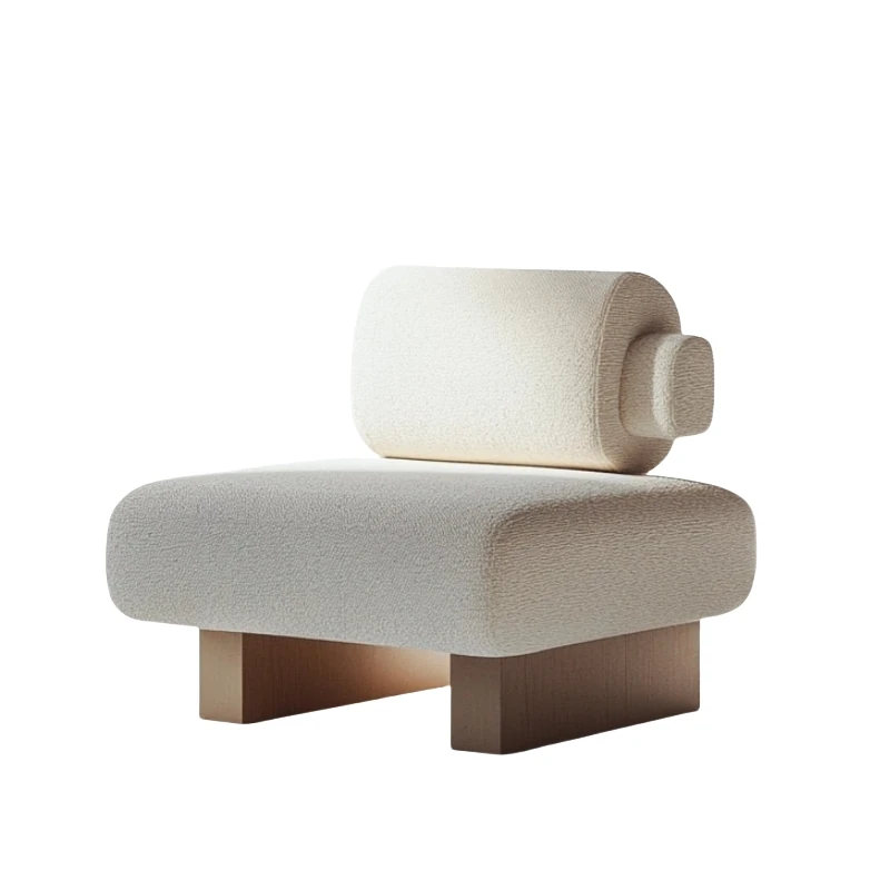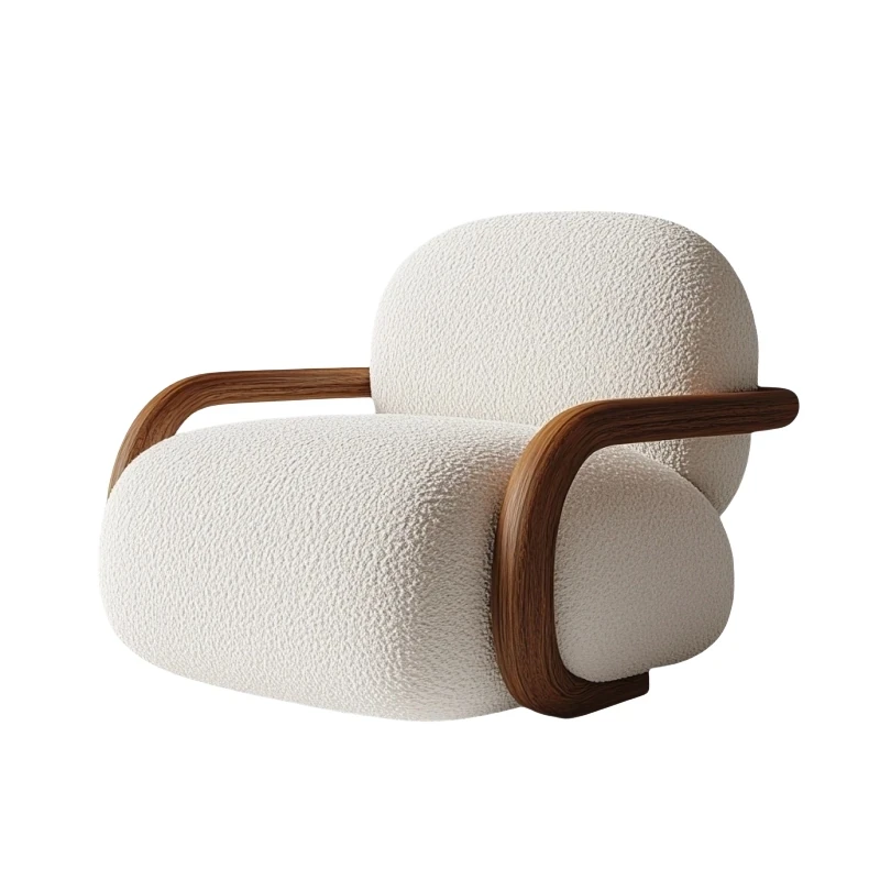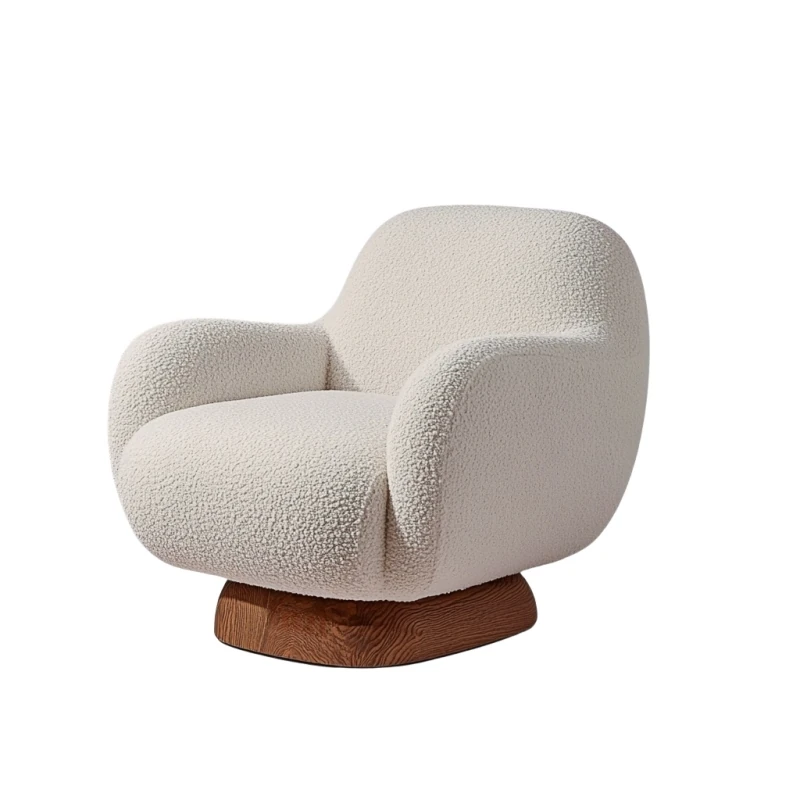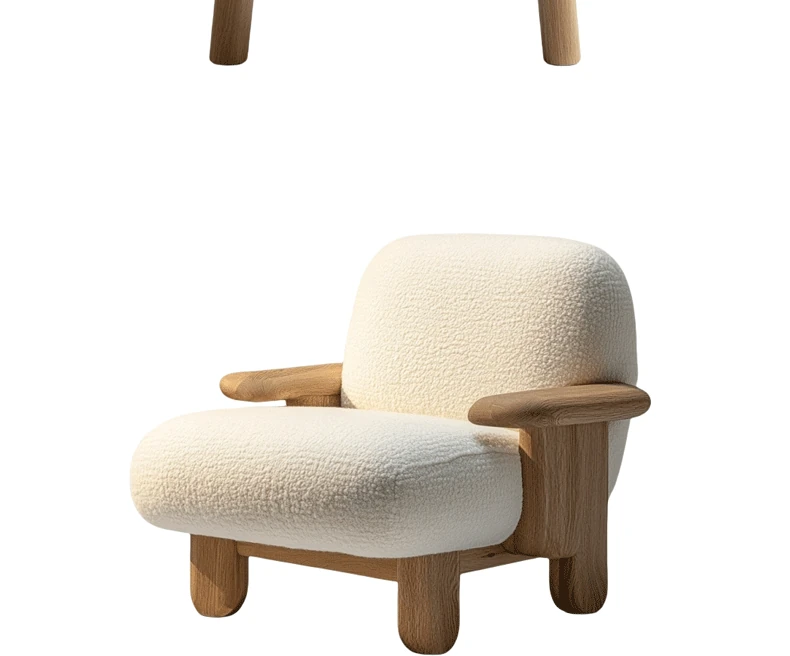 モダンでラグジュアリーな高級感あふれるリビング用1人掛けカジュアルソファ、ラムウール製のヴィンテージクリームカラー、人気デザイナーによる特別デザインです。おしゃれな空間を演出し、くつろぎのひとときを提供します。