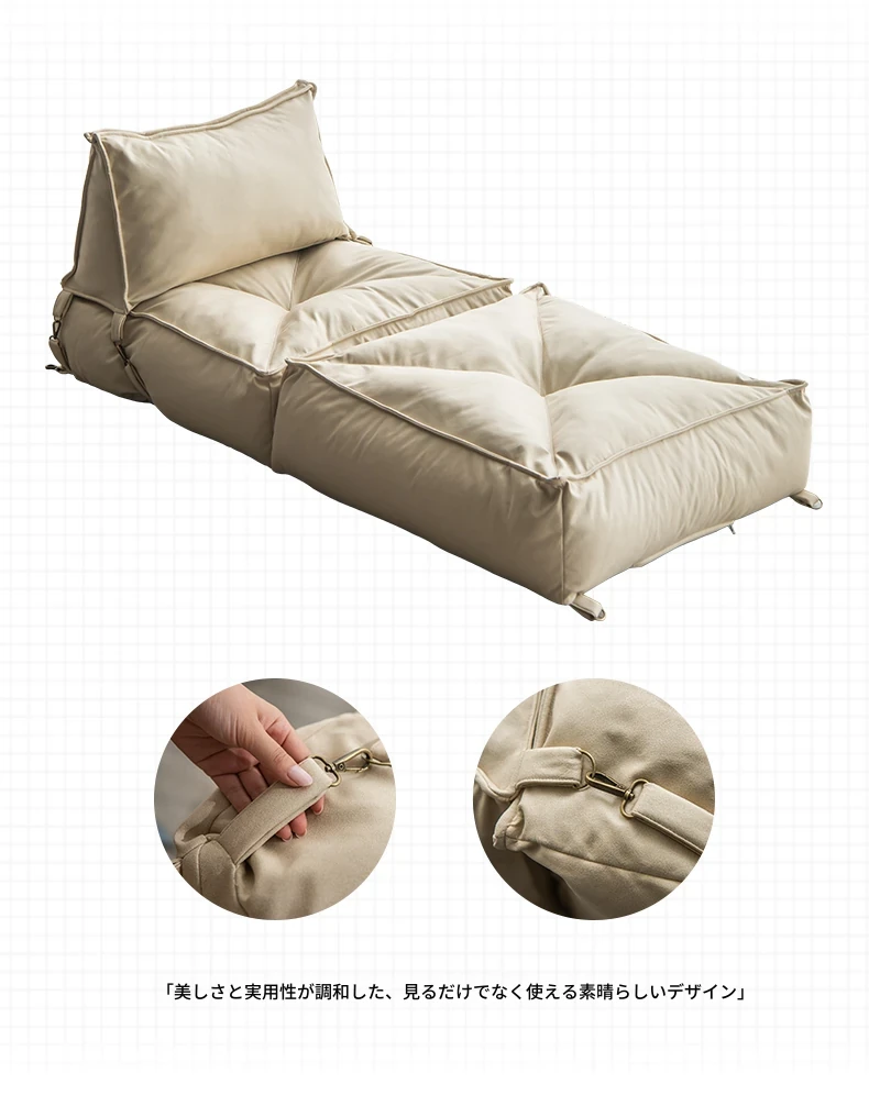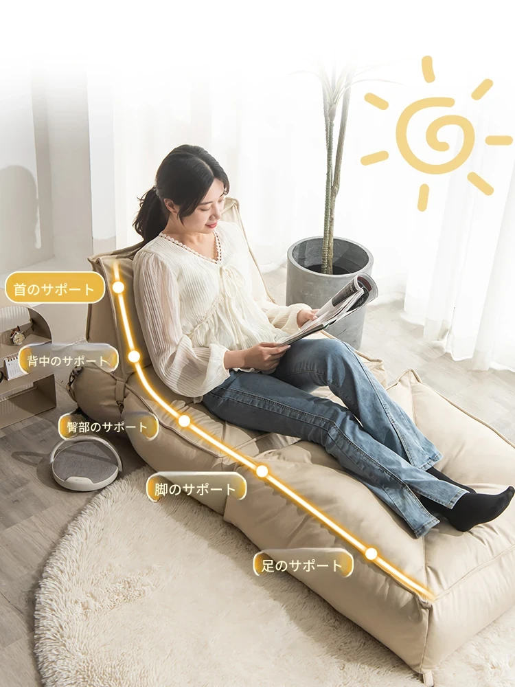 リラックスできる懶人ソファ!寝転んでも寝てもOK!タタミスタイルの小型バルコニー用、休憩に最適なビーズソファ。1人用の窓際ソファで、狭いスペースも有効活用!あなたのくつろぎ時間を演出します。