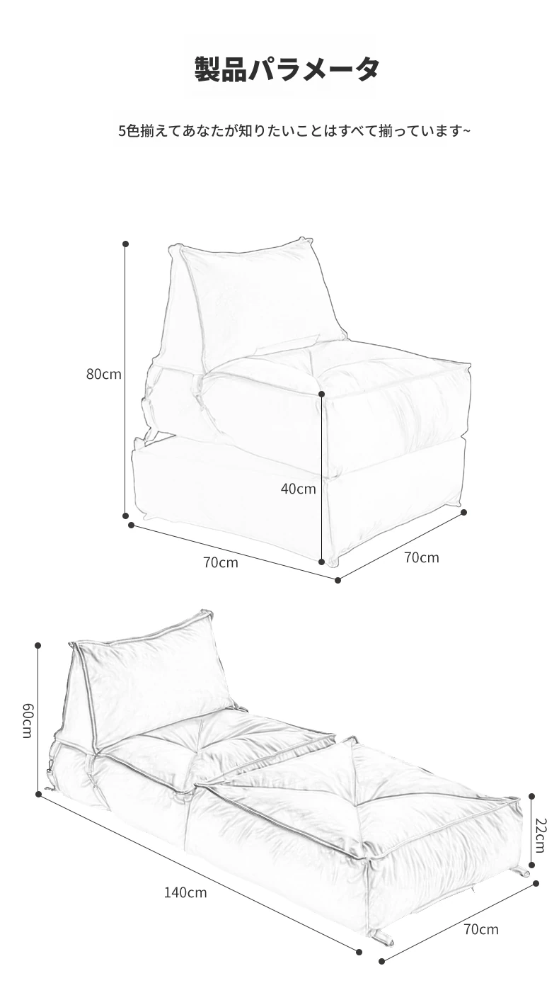 ラウンジソファカバー・ビーズバッグ・プレーンカラー・寝転びOK・簡易外殻・リサイクル衣類収納に最適!快適さとスタイルを兼ね備えた、あなたのリビングにピッタリのアイテム!