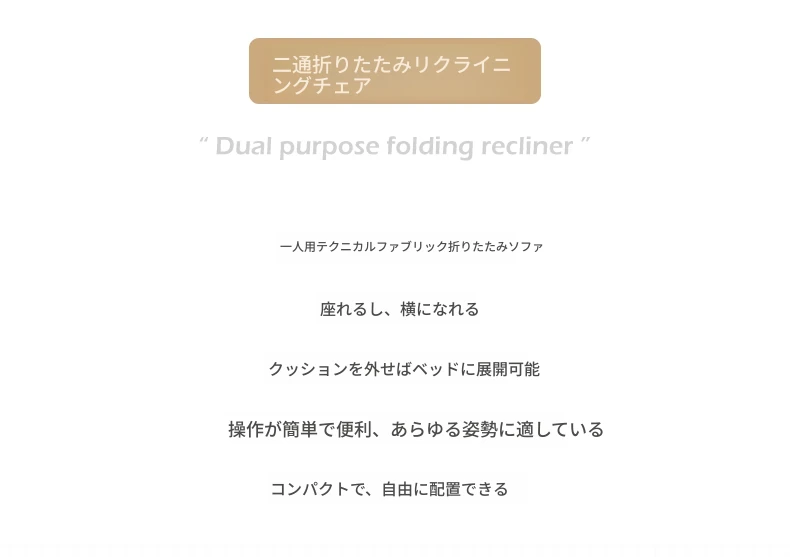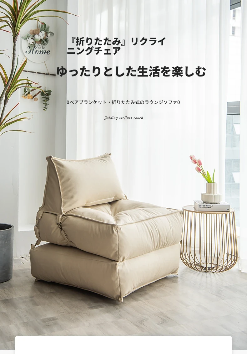 おしゃれな一人用リクライニングソファ、折りたたみ式で楽々収納!モダンなデザインが魅力のタタミスタイル。バルコニーや寝室、リビングにぴったりなネット人気の背もたれ付きソファチェア。快適さとスタイルを両立!