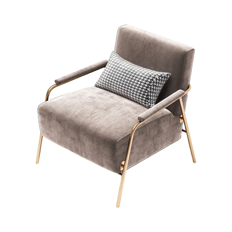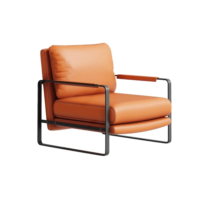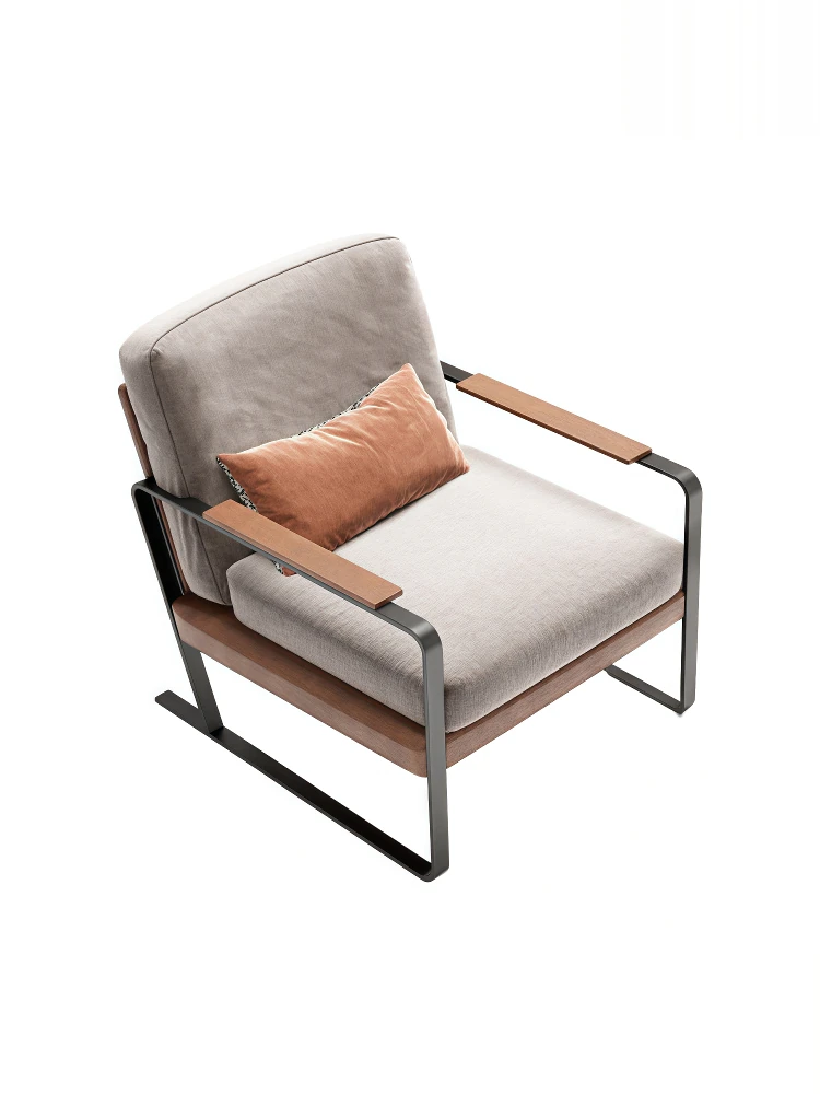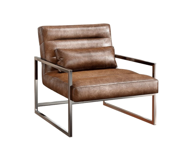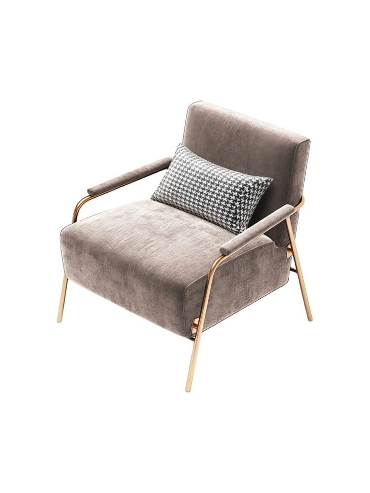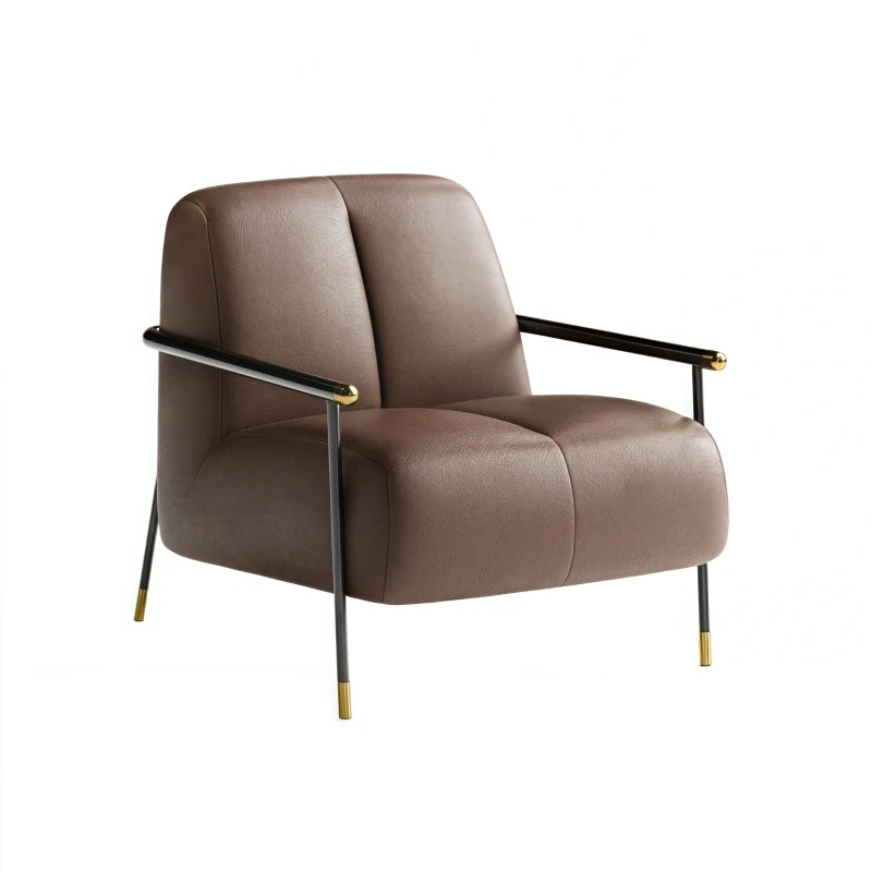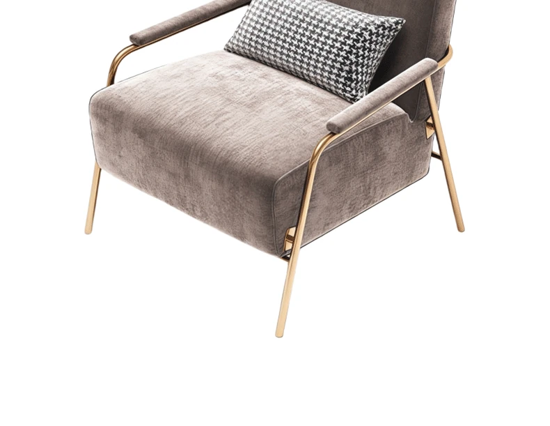 軽やかな高級感!ステンレス製のシングルソファ、家庭用リビングやバルコニーに最適。現代的なデザインのシンプルな休憩エリア用チェア。デザイナーによる洗練された一脚で、心地よいひとときをお楽しみください。