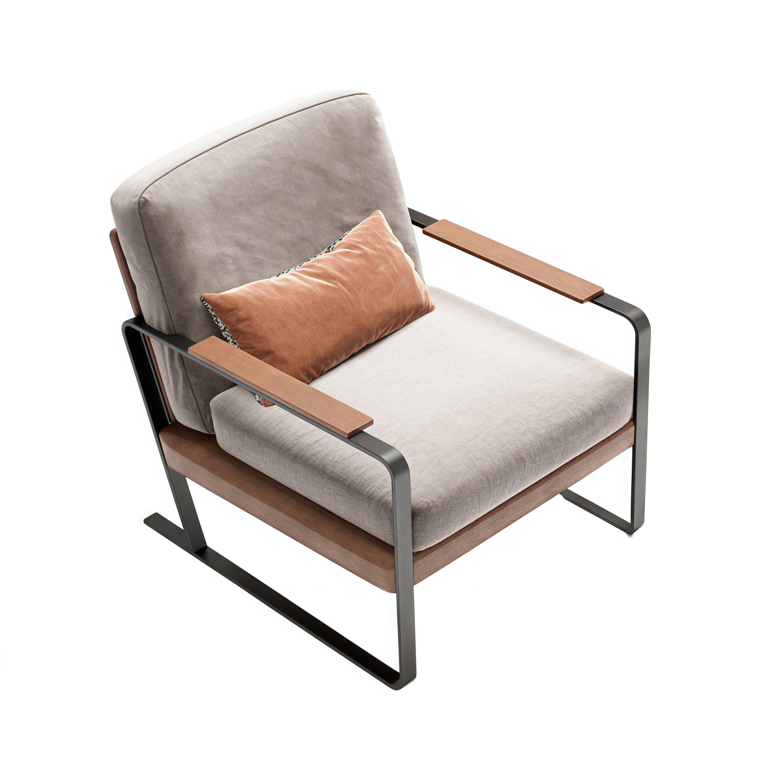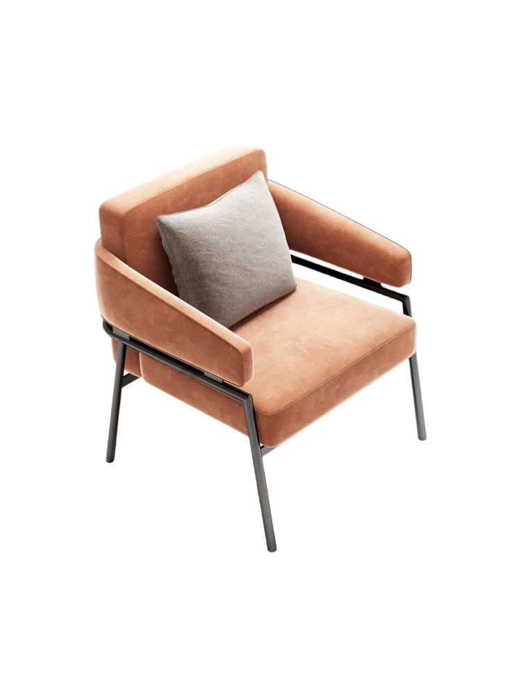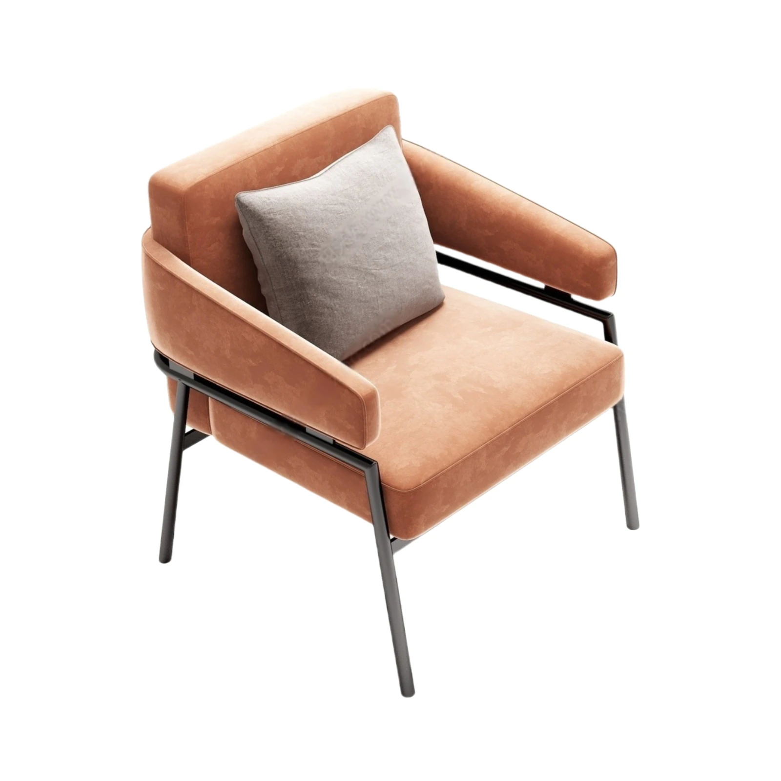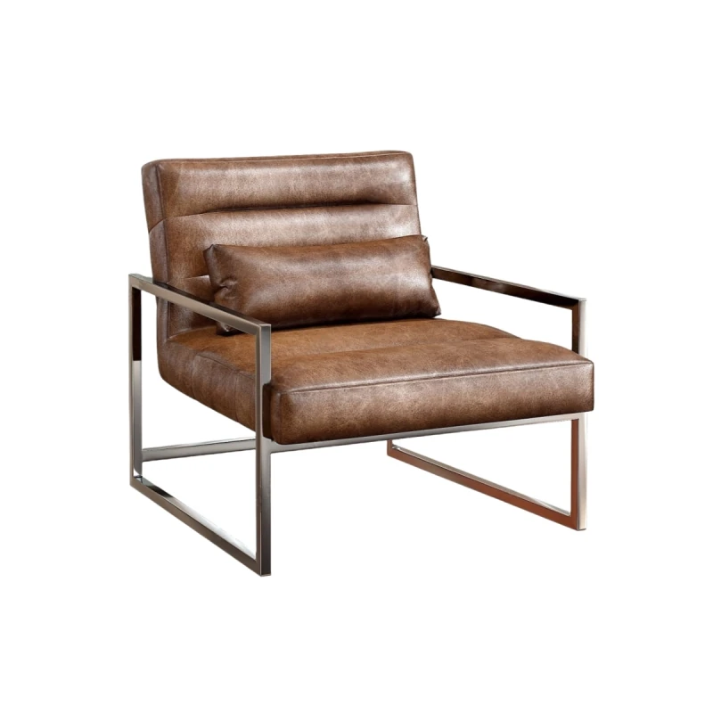 軽やかな高級感!ステンレス製のシングルソファ、家庭用リビングやバルコニーに最適。現代的なデザインのシンプルな休憩エリア用チェア。デザイナーによる洗練された一脚で、心地よいひとときをお楽しみください。