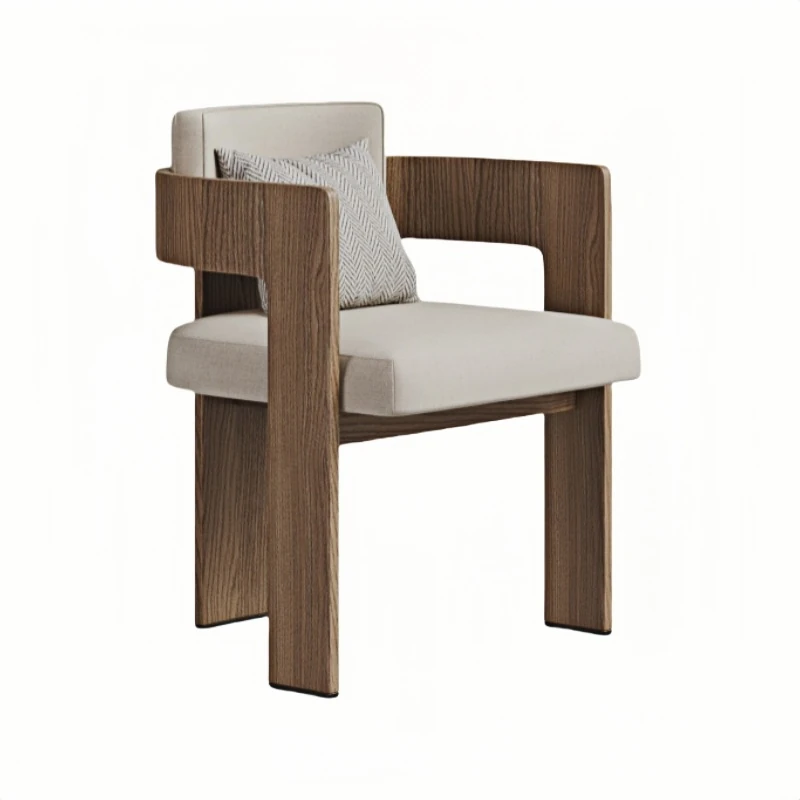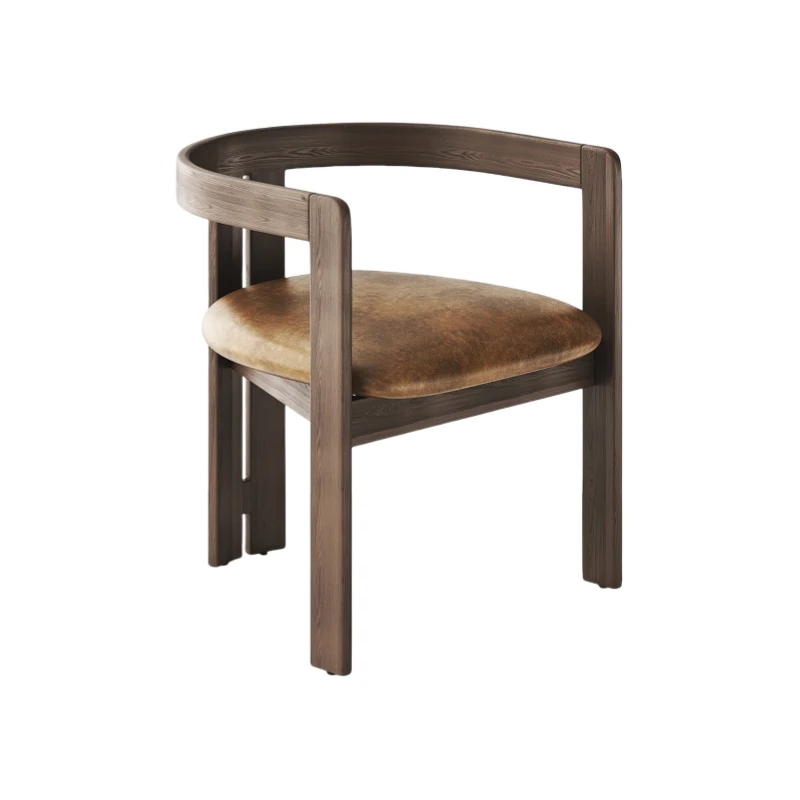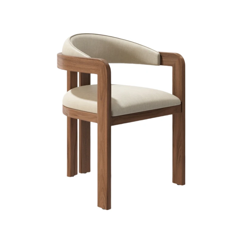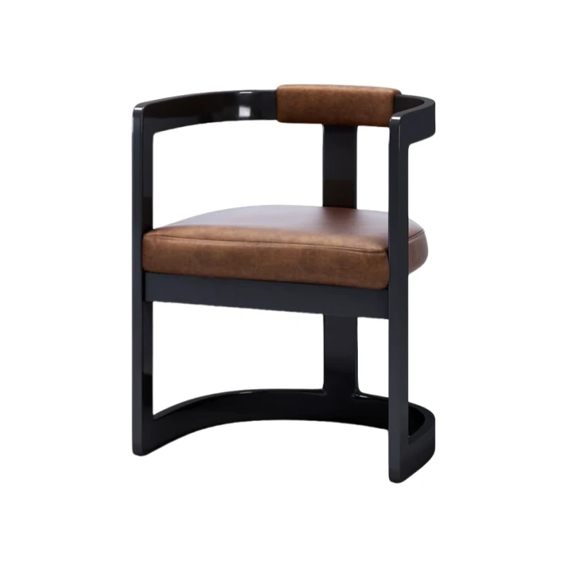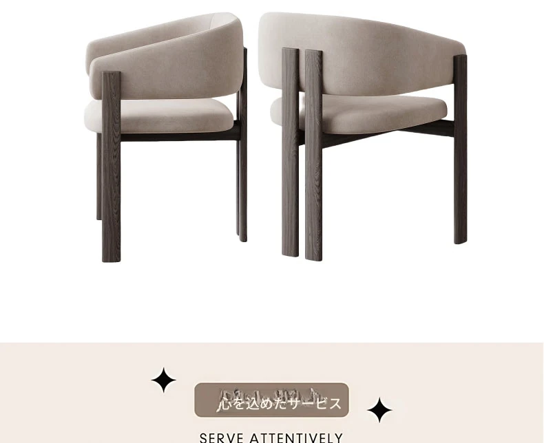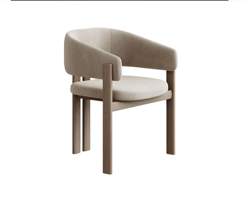モダンミニマルデザインの無垢材ラウンドバックチェア - ホテル・クラブ・ショールームに最適なロビー休憩エリア用、商談や接客にぴったりのリラックスソファチェア。高級感溢れるスタイルで、特別な空間を演出します。