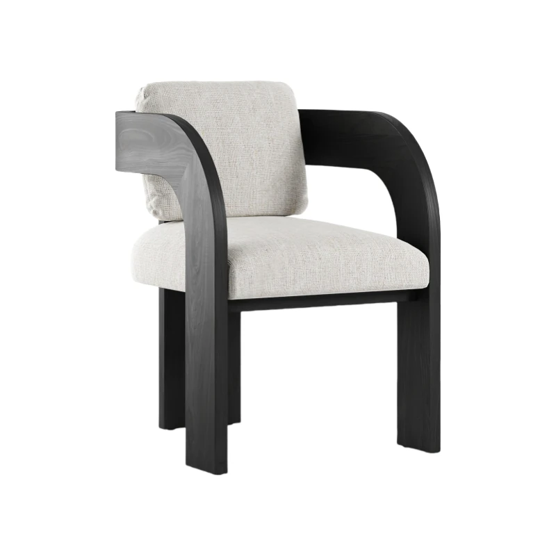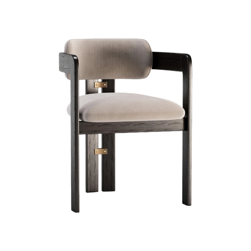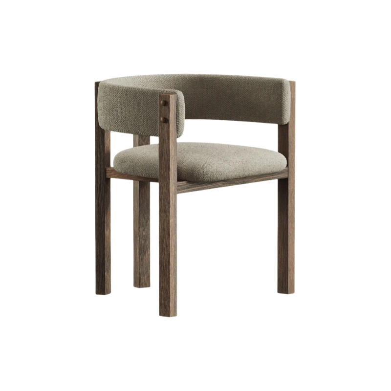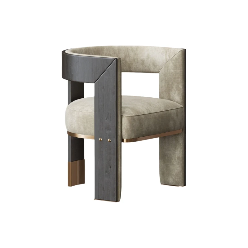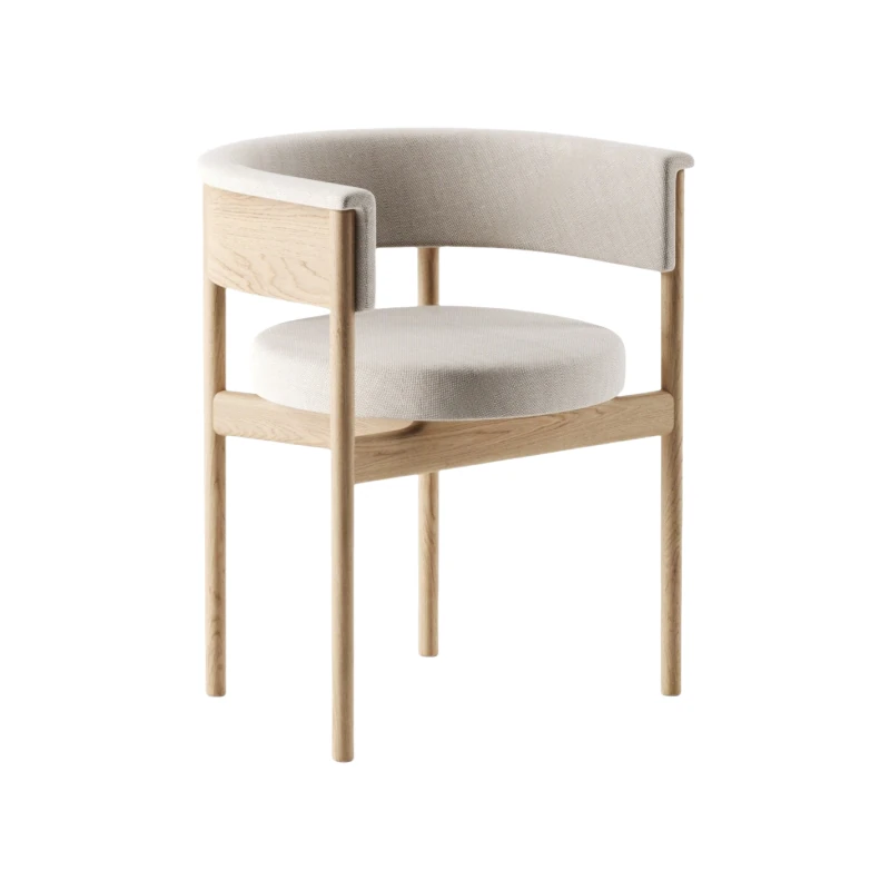 モダンミニマルデザインの無垢材ラウンドバックチェア - ホテル・クラブ・ショールームに最適なロビー休憩エリア用、商談や接客にぴったりのリラックスソファチェア。高級感溢れるスタイルで、特別な空間を演出します。