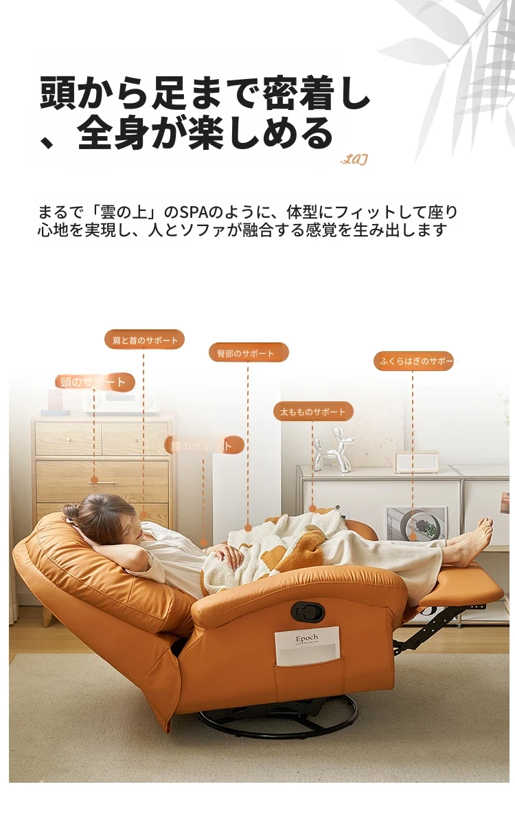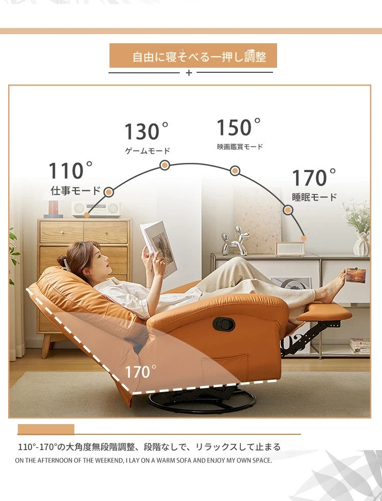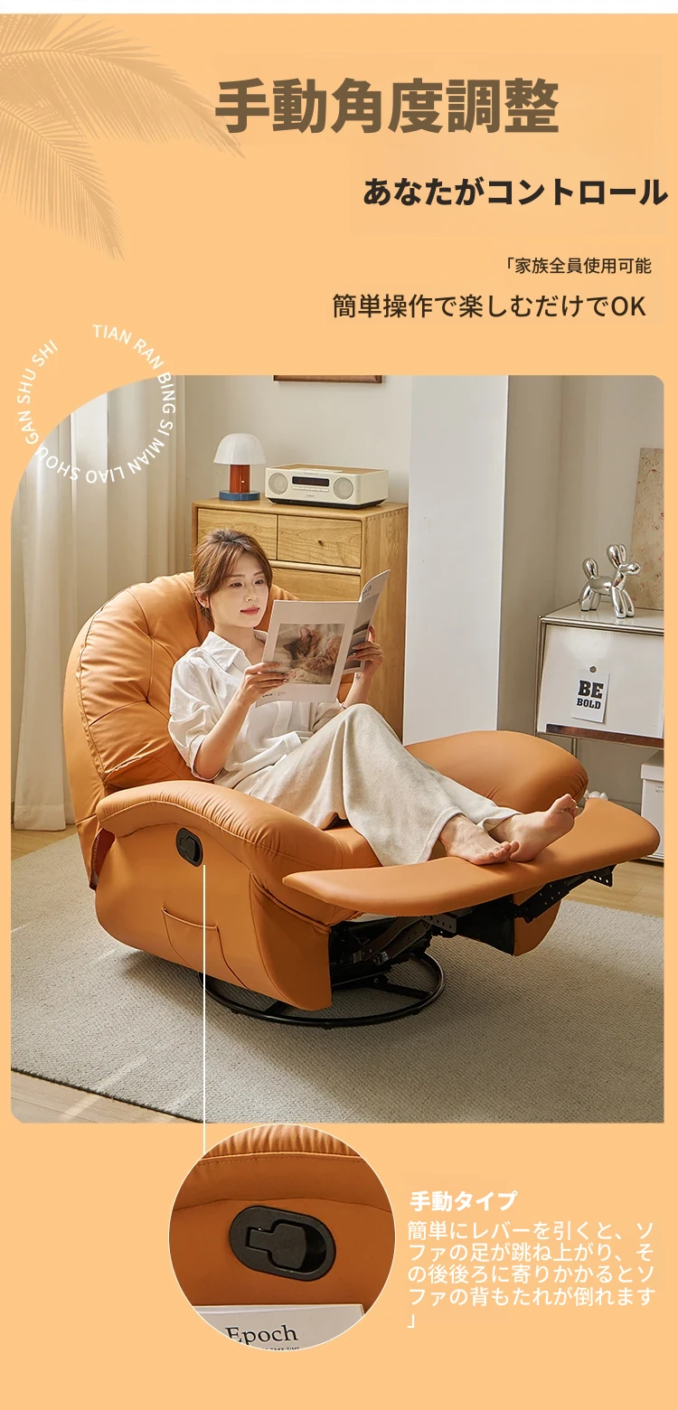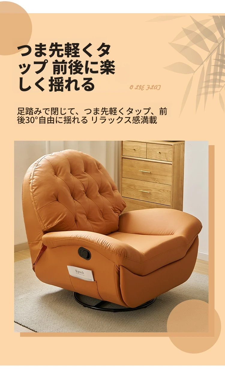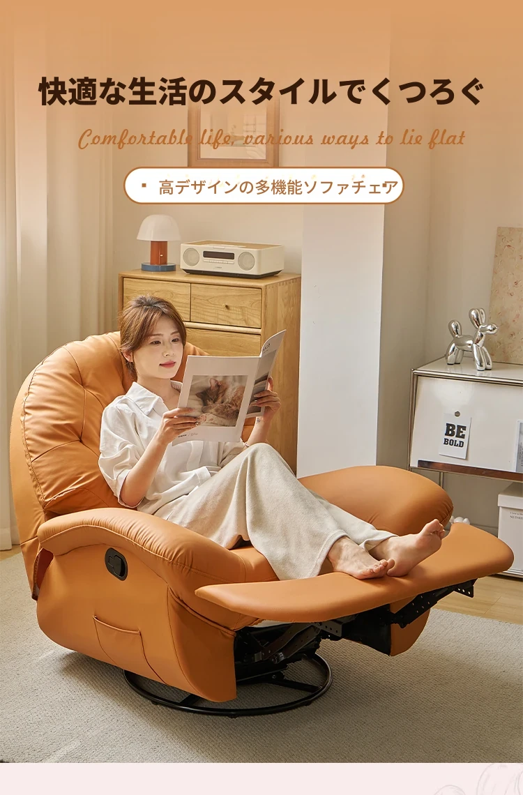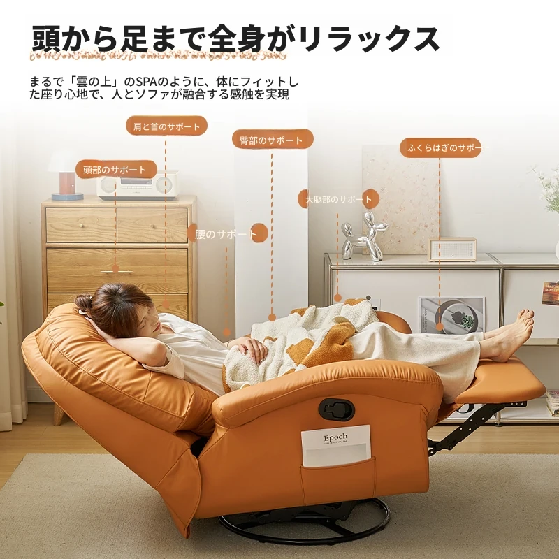 現代多機能スペースソファキャビン、リクライニング可能!自宅でくつろぐための快適な単独用ソファ。リラックスしたい時に最適な、寝転んでも使える贅沢な一人掛けロッキングチェア!