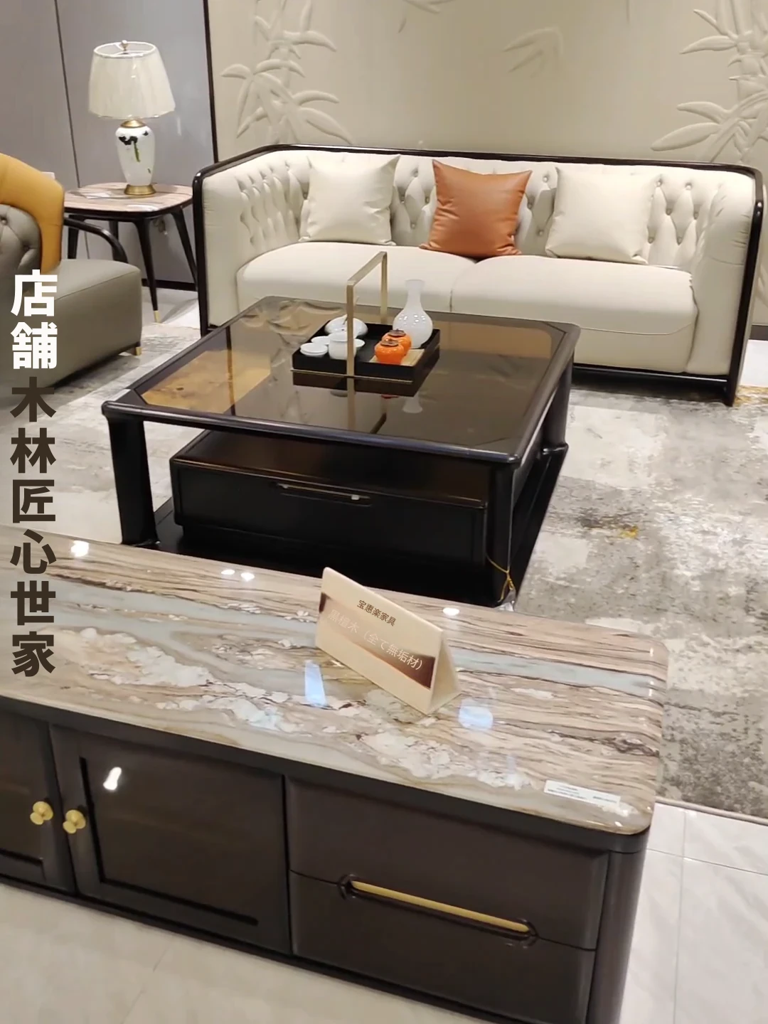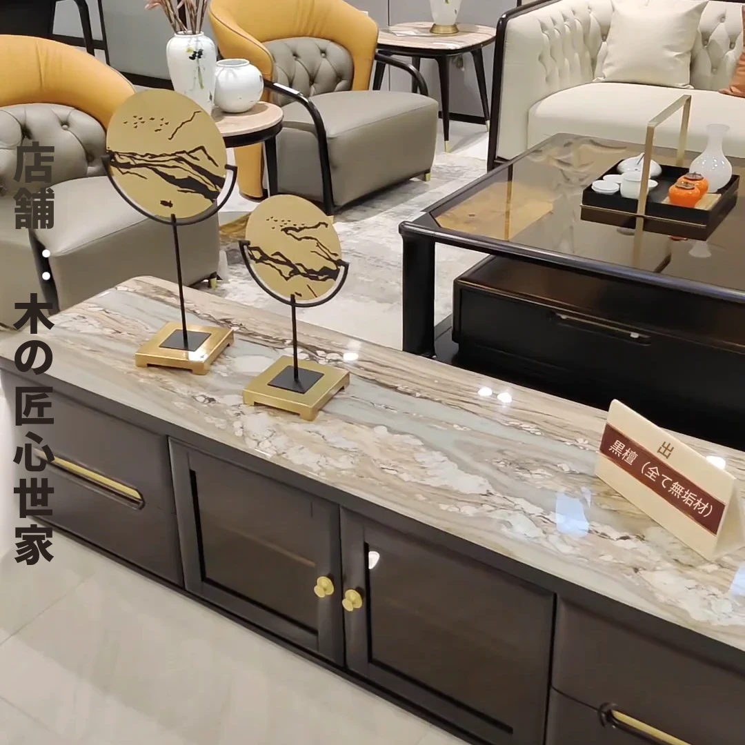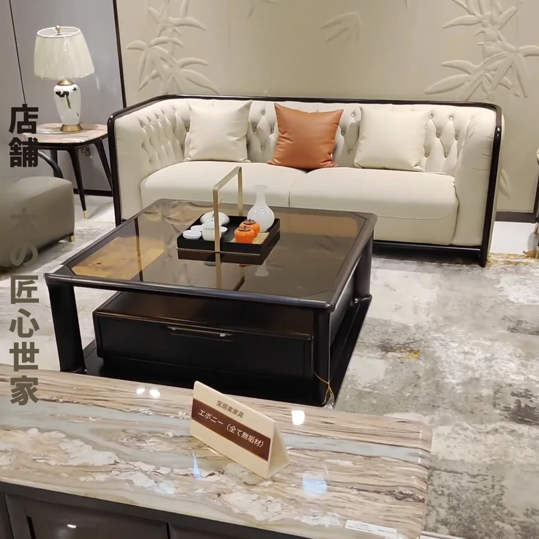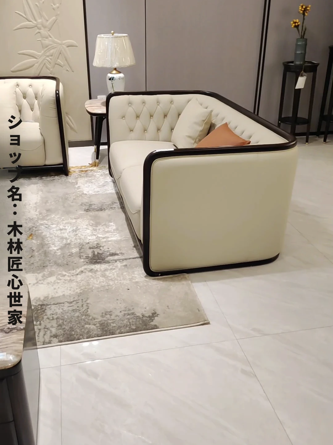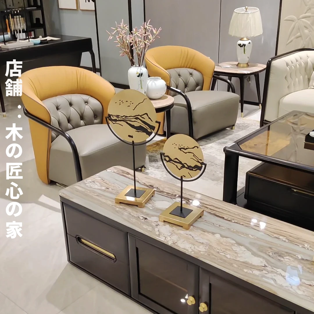 現代新中式ウルキン木製ソファセット - 高級感あふれる実木と皮革のコンビネーション!リビング、別荘、ホテルに最適な全屋家具。洗練されたデザインで、居心地の良い空間を演出します。