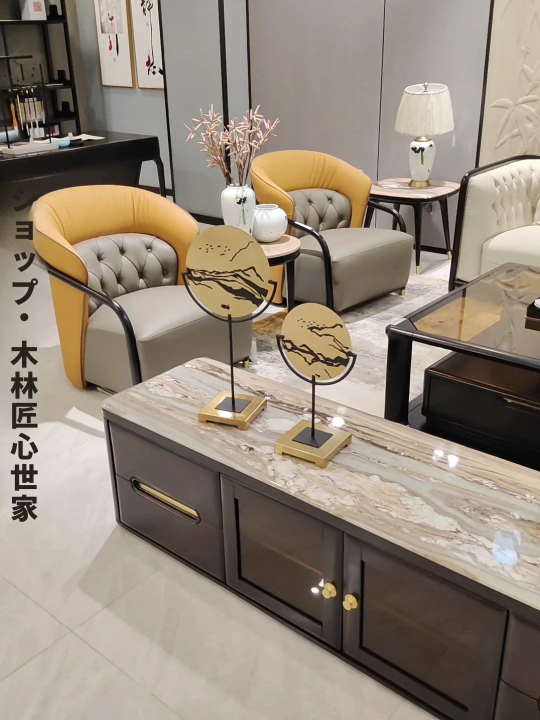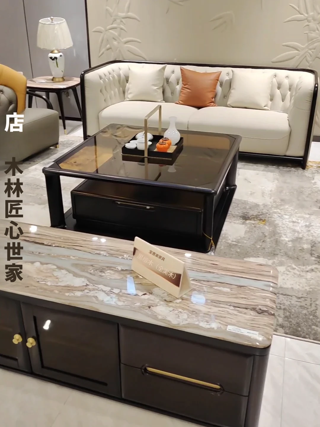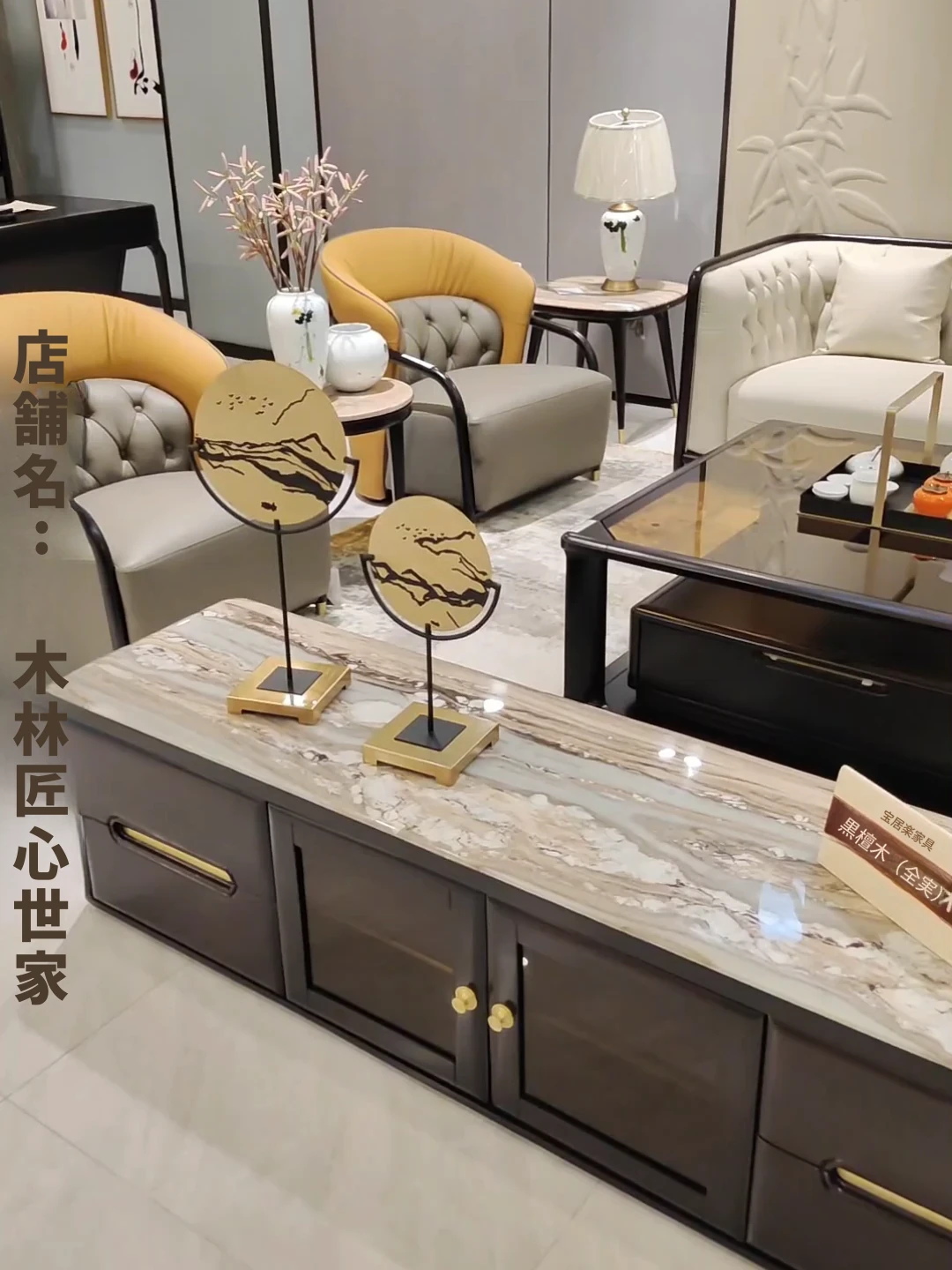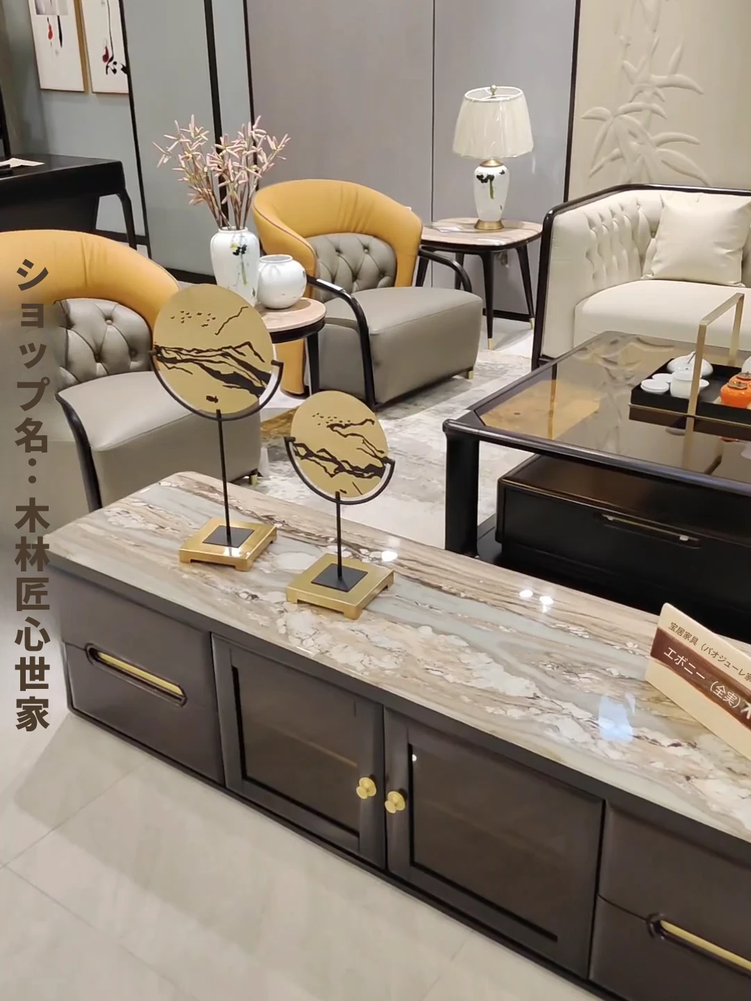 現代新中式ウルキン木製ソファセット - 高級感あふれる実木と皮革のコンビネーション!リビング、別荘、ホテルに最適な全屋家具。洗練されたデザインで、居心地の良い空間を演出します。
