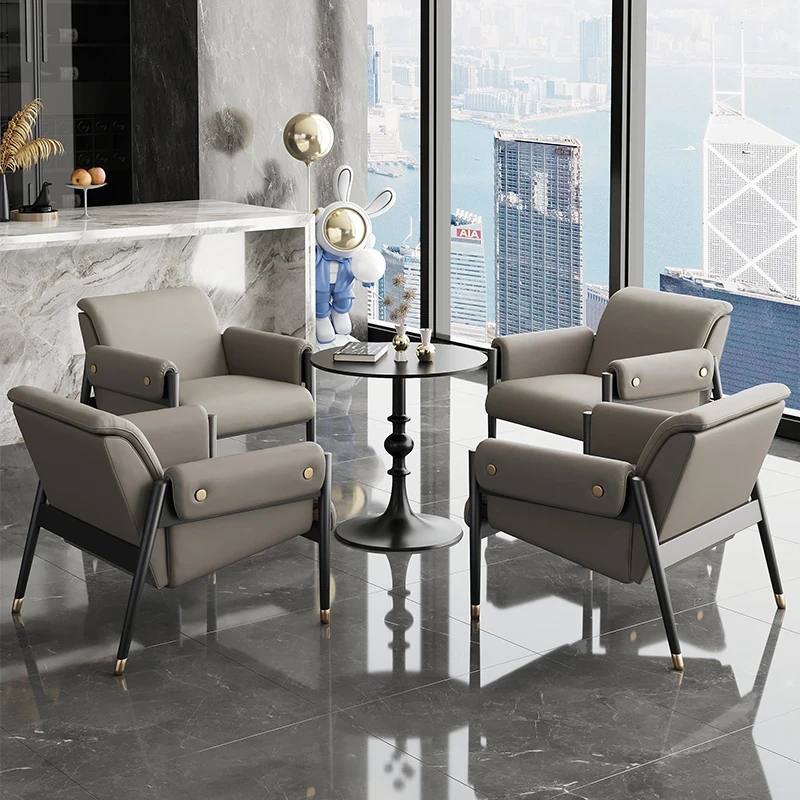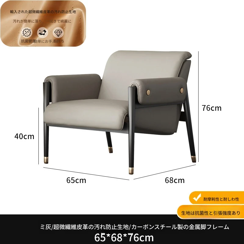 ソファチェア【ミディアムグレー/超微細合成皮革/カーボンスチール脚】